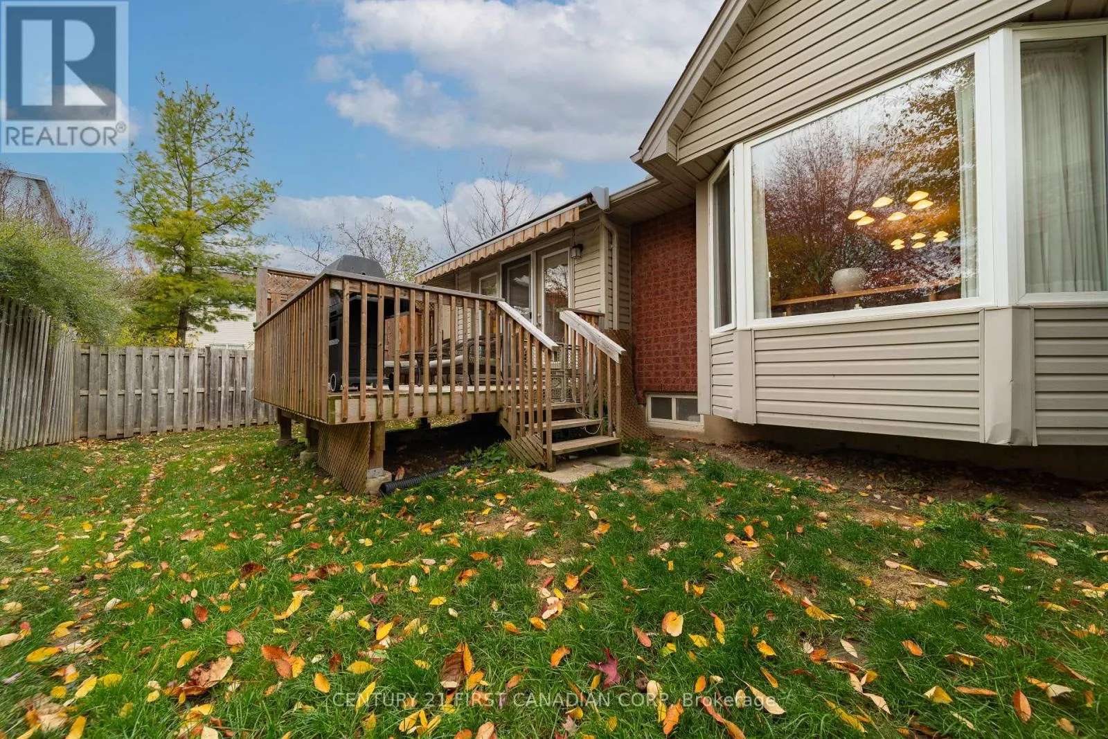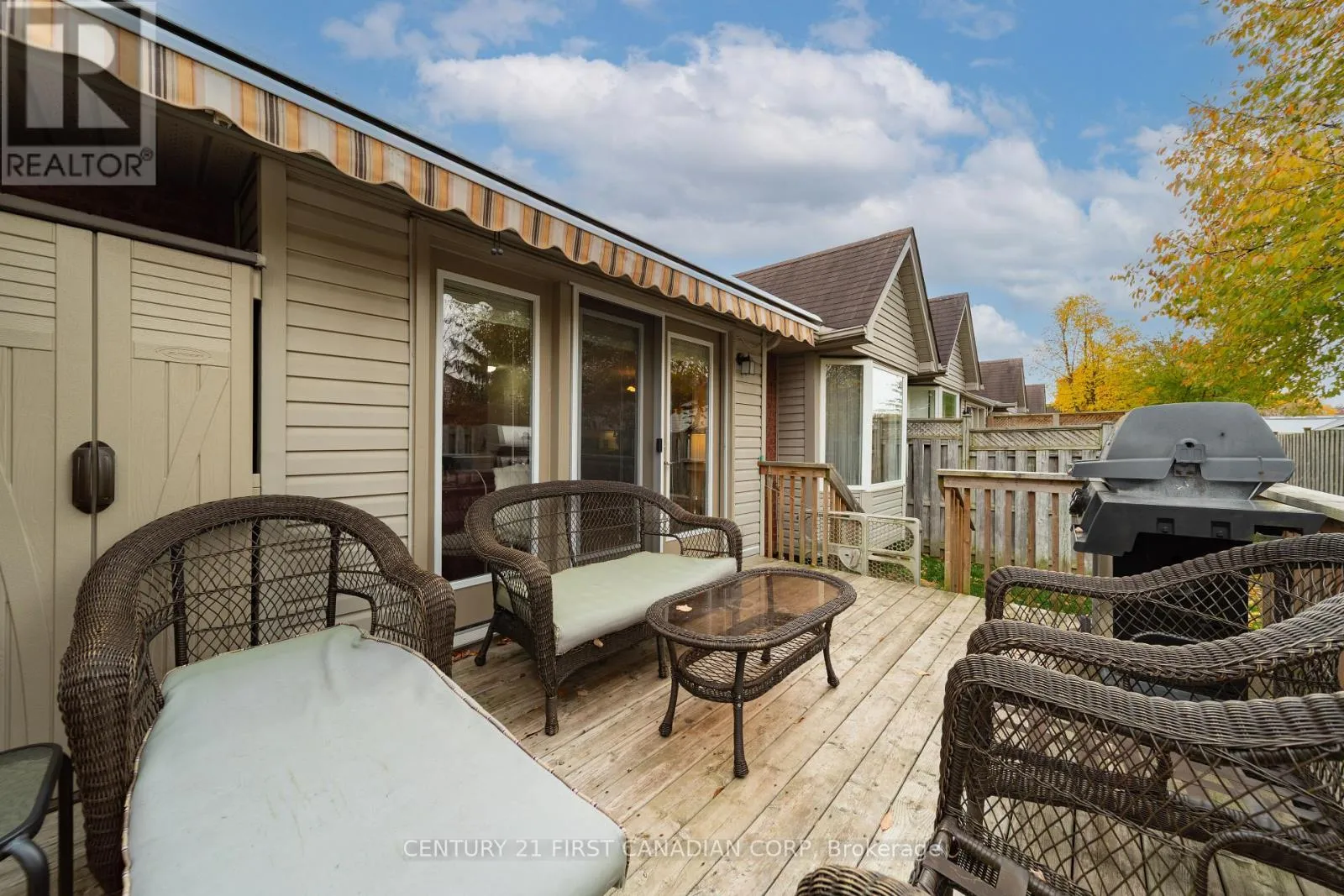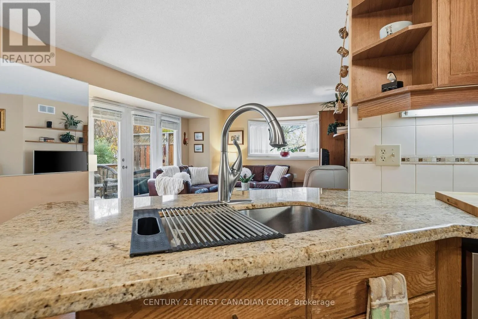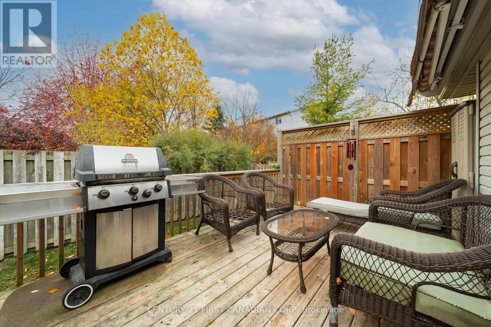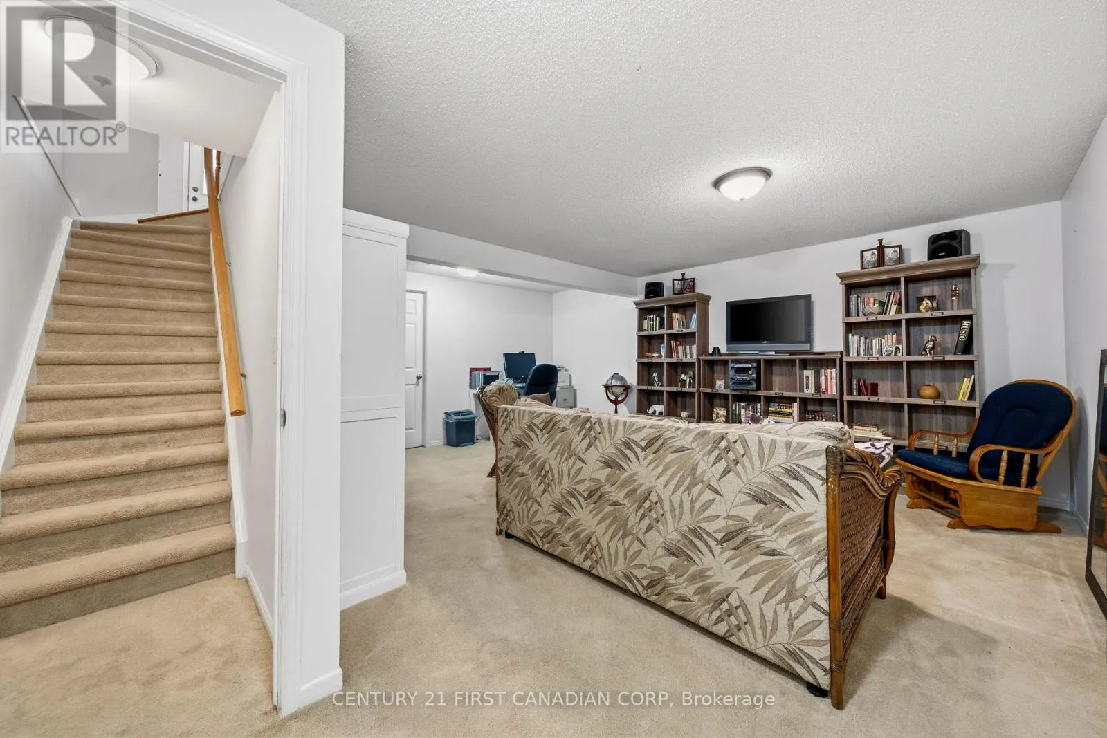 Cross Streets: Sarnia Rd. ** Directions: TURN ONTO THISTLEDOWN FROM SARNIA ROAD ONTO THISTLEDOWN WAY. Welcome to 875 Thistledown Way, Unit 16, in the desirable Rembrandt Heights community! Nestled in a quiet enclave of Northwest London, this beautifully maintained one-floor end-unit townhouse combines comfort, privacy, and convenience. With a double-car garage and thoughtful layout, it's the perfect choice for those seeking low-maintenance, single-level living without compromise.The main floor boasts an open-concept kitchen with a spacious dining area and a living room complete with a large bay window- perfect for entertaining. The bright living room opens to a private deck with a brand new awning, surrounded by mature trees for added tranquility. The primary suite includes a walk-in closet and a 4-piece ensuite, while the second bedroom (or home office) and a convenient 2-piece powder room complete the main level.The fully finished lower level adds incredible versatility with a large rec room, full 4-piece bath, and two additional rooms - ideal for guests, hobbies, or storage.Located close to shopping, restaurants, parks, and all amenities, this northwest gem offers the best of easy, maintenance-free condo living in a sought-after community. (id:27476)