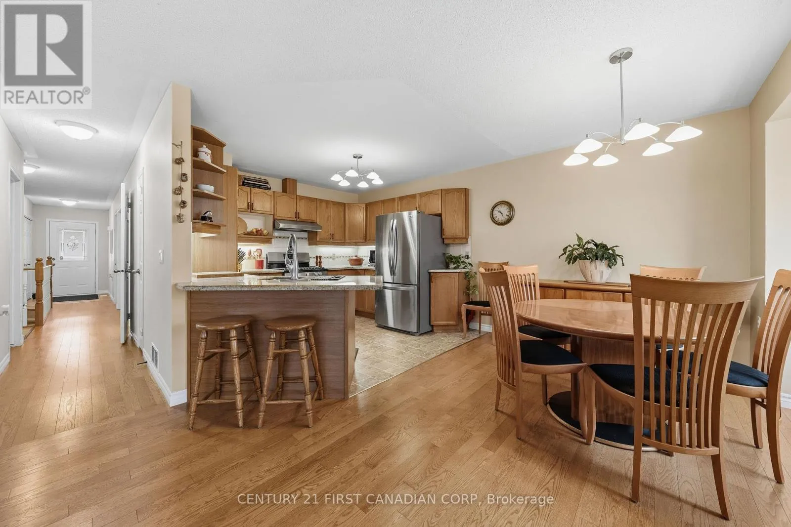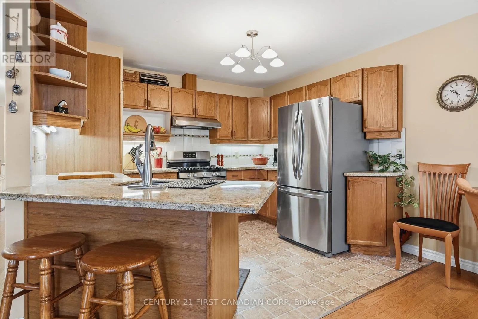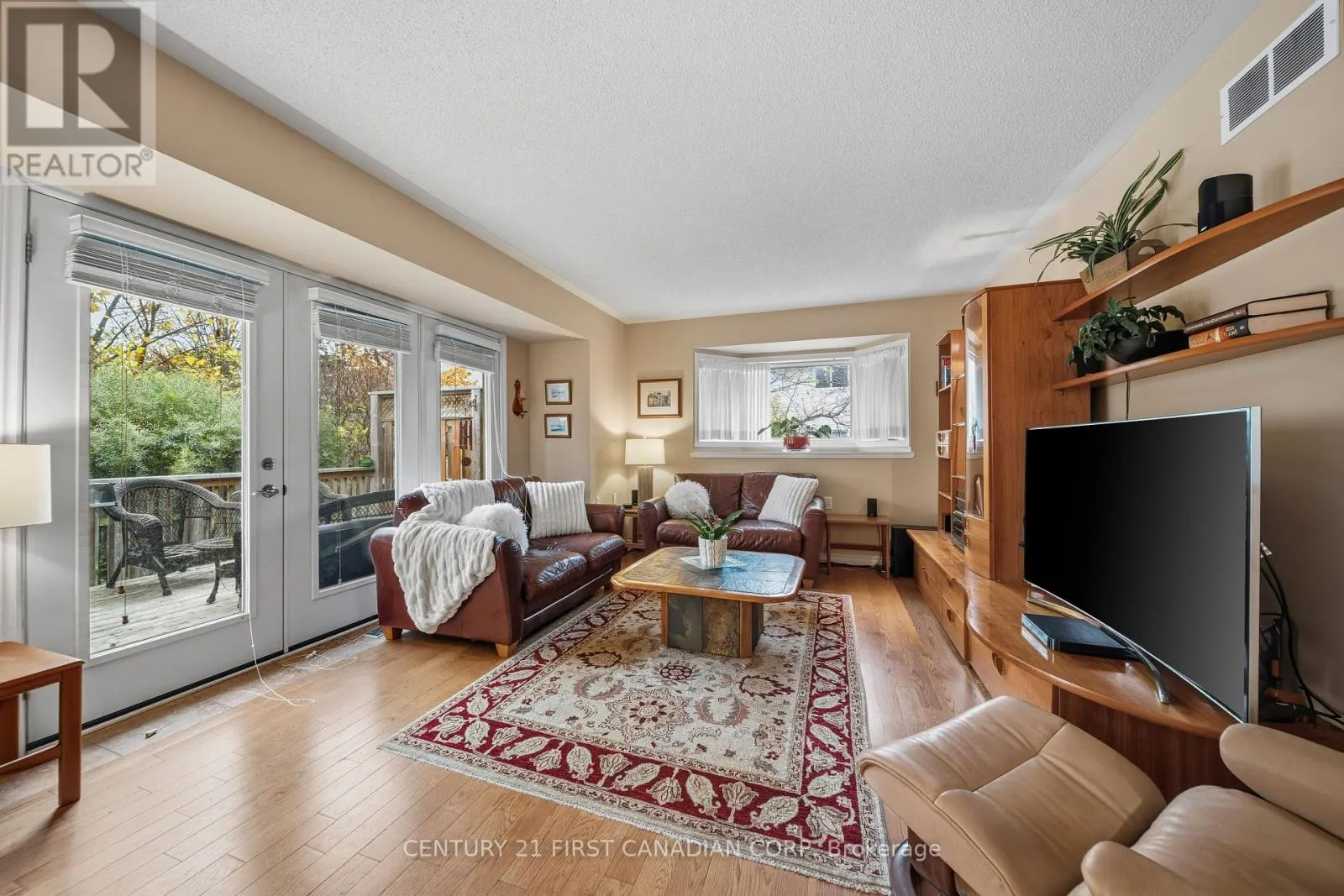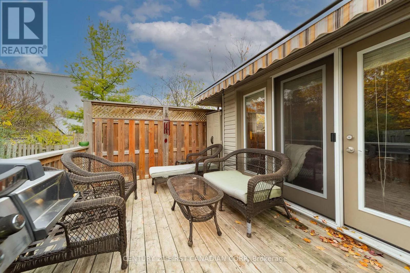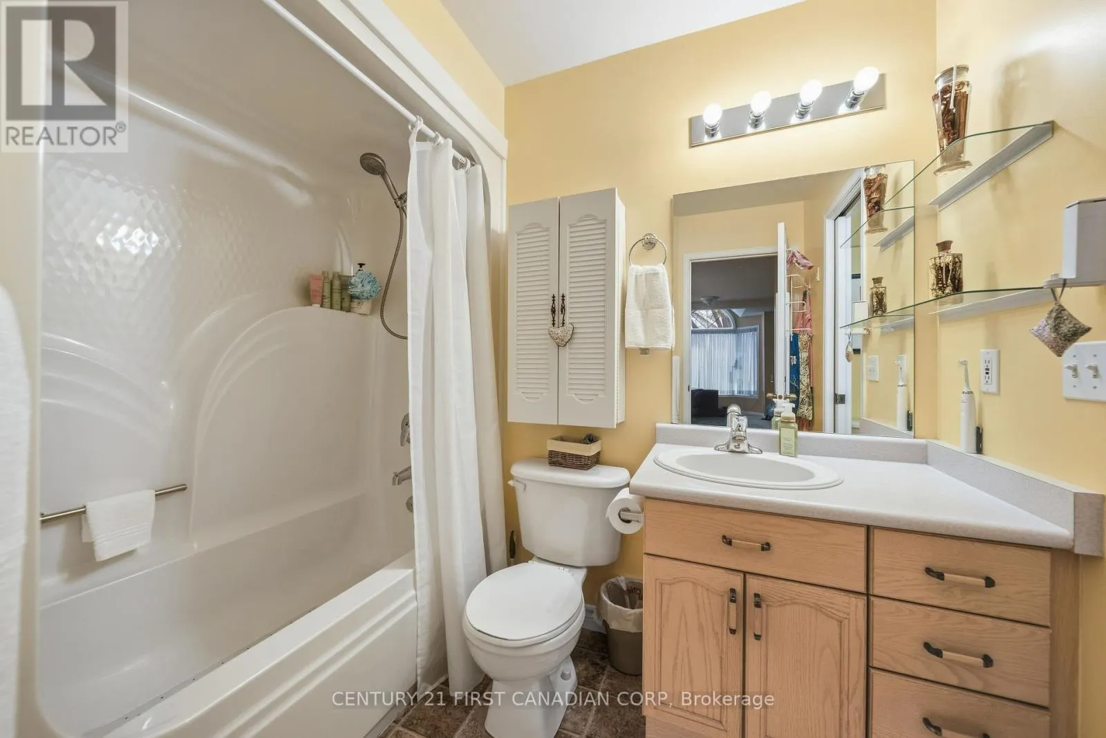 Cross Streets: Sarnia Rd. ** Directions: TURN ONTO THISTLEDOWN FROM SARNIA ROAD ONTO THISTLEDOWN WAY. Welcome to 875 Thistledown Way, Unit 16, in the desirable Rembrandt Heights community! Nestled in a quiet enclave of Northwest London, this beautifully maintained one-floor end-unit townhouse combines comfort, privacy, and convenience. With a double-car garage and thoughtful layout, it's the perfect choice for those seeking low-maintenance, single-level living without compromise.The main floor boasts an open-concept kitchen with a spacious dining area and a living room complete with a large bay window- perfect for entertaining. The bright living room opens to a private deck with a brand new awning, surrounded by mature trees for added tranquility. The primary suite includes a walk-in closet and a 4-piece ensuite, while the second bedroom (or home office) and a convenient 2-piece powder room complete the main level.The fully finished lower level adds incredible versatility with a large rec room, full 4-piece bath, and two additional rooms - ideal for guests, hobbies, or storage.Located close to shopping, restaurants, parks, and all amenities, this northwest gem offers the best of easy, maintenance-free condo living in a sought-after community. (id:27476)