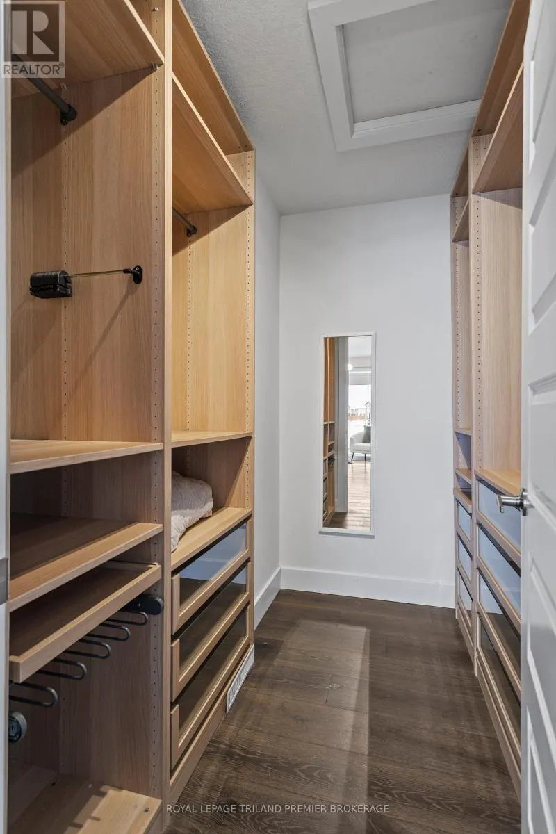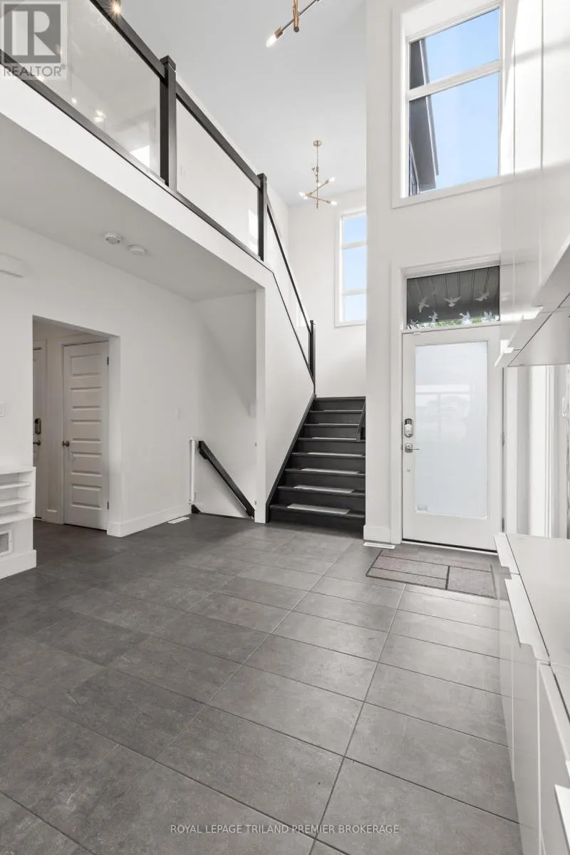 FROM FANSHAWE PARK ROAD, HEAD NORTH ON WATEROAK DRIVE Welcome to this stunning two-storey home located in the desirable Foxfield subdivision of Northwest London. This beautifully built residence offers 4 spacious bedrooms, 3.5 bathrooms, and a fully finished walk-out basement, perfect for extended family living or entertaining. Backing onto a peaceful ravine, the backyard offers a private, nature-filled retreat with scenic views year-round. Inside, you'll find contemporary finishes throughout, a thoughtfully designed layout, and plenty of natural light. The open- concept main floor features a bright double height foyer with built-in storage; kitchen with breakfast bar, custom cabinetry and stainless steel appliances; 2-piece powder room; great room with custom accent wall; dinette with direct access to a deck perfect for BBQ, and convenient main floor laundry with additional access to the backyard. The upper level boasts 3 generous bedrooms (privacy film/UV film installed on bedroom windows), including a primary suite featuring a walk-in closet with custom organizing system and 4-piece spa-like ensuite with double sinks, linen closet, and large tiled shower with glass enclosure. Sip your morning coffee overlooking the ravine on the main levels deck with glass railing or on the lower patio/deck with pergola. Enjoy the convenience of a double-car garage and the quality craftsmanship that sets this home apart. Custom blinds on most windows, and hardwood flooring/stairs throughout. A rare opportunity to own a ravine lot in one of Londons most sought-after neighbourhoods don't miss it! (id:27476)
