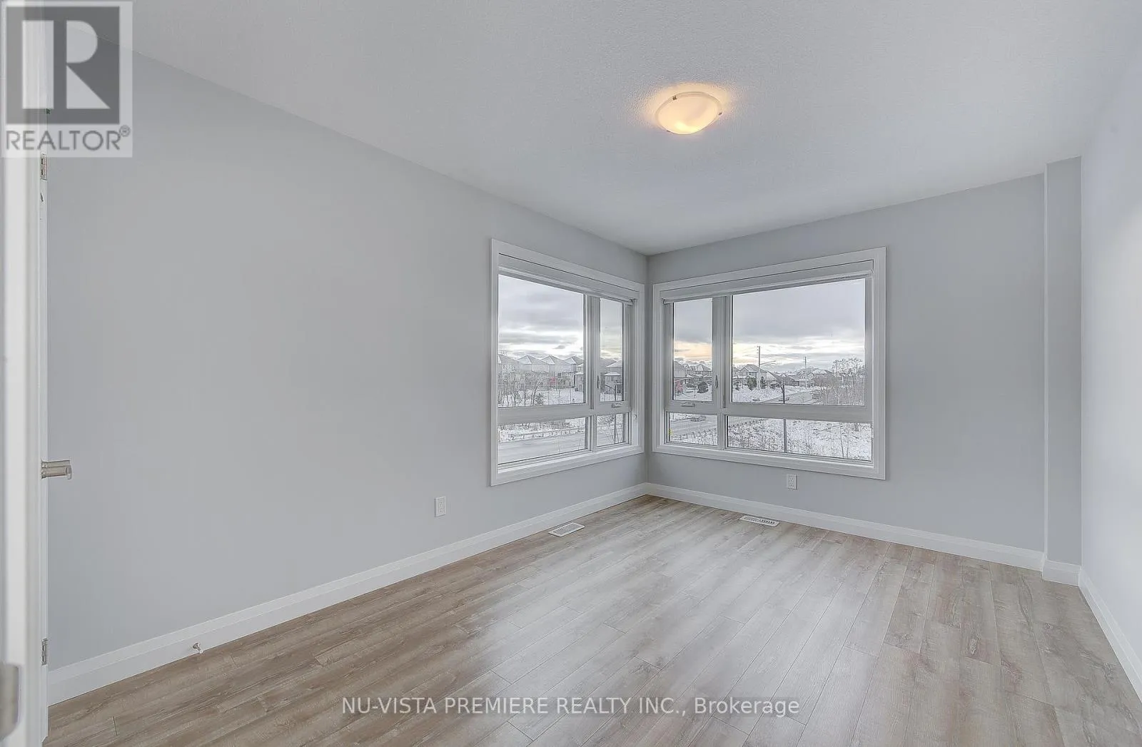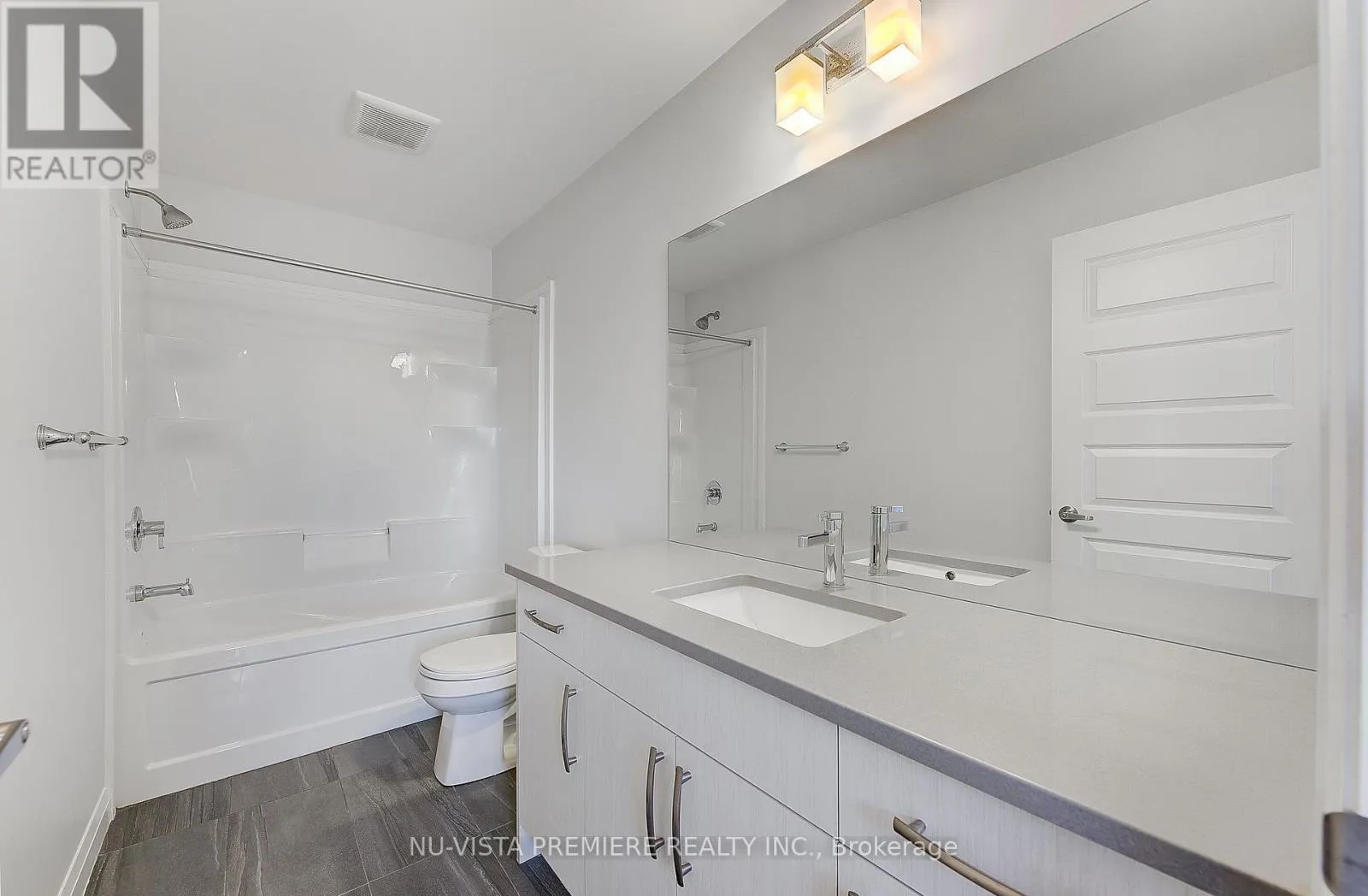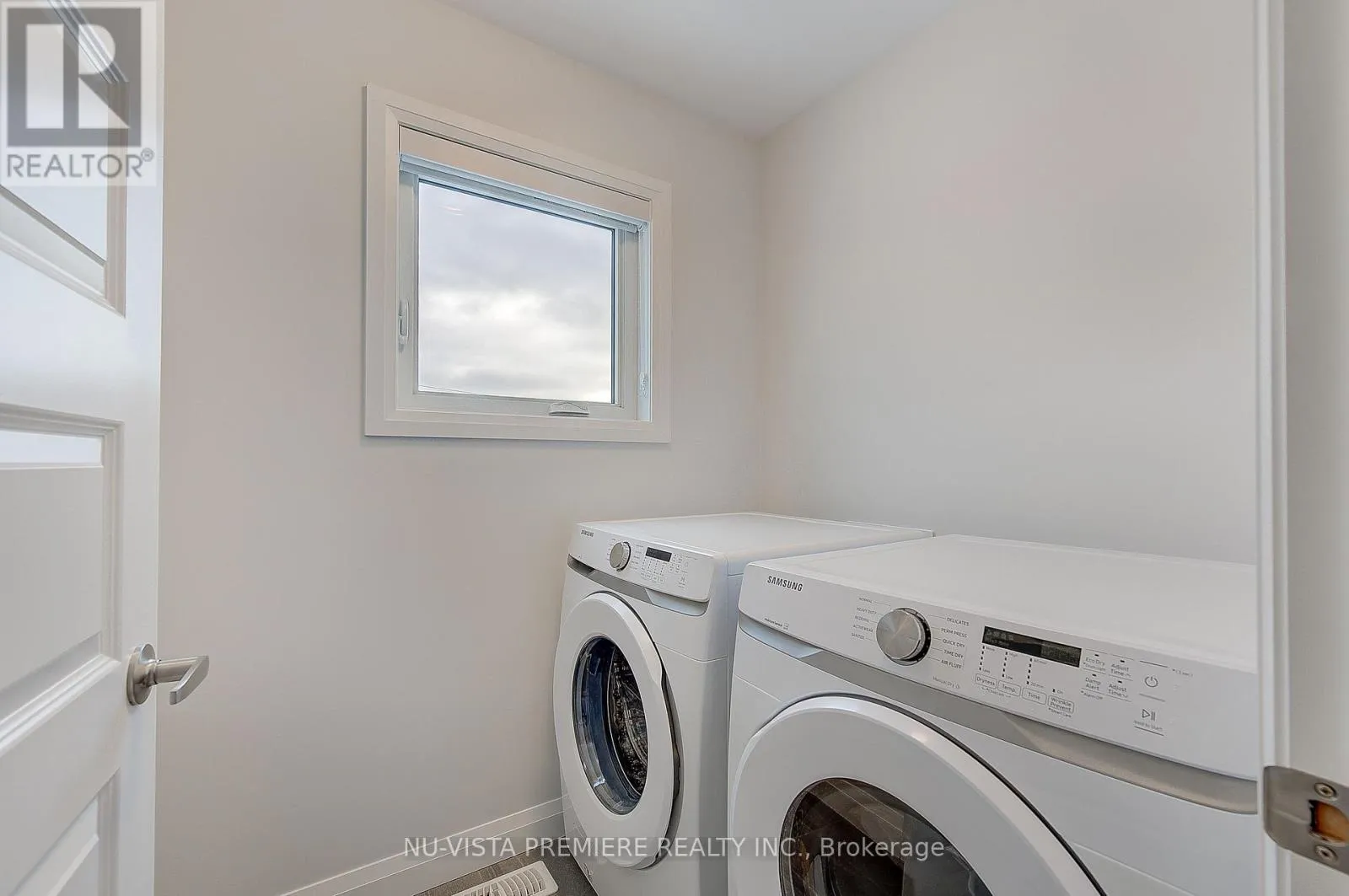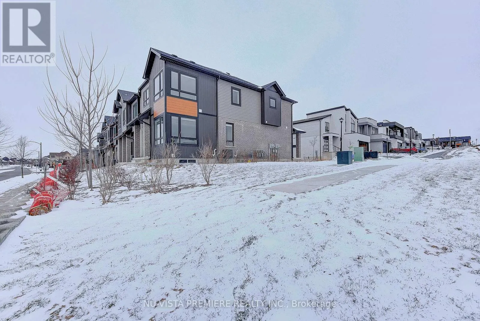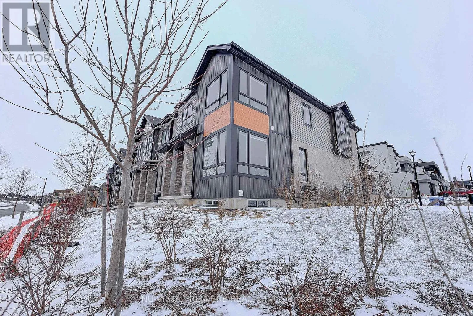 Cross Streets: Canvas Way and Sunningdale. ** Directions: Sunningdale to Canvas way. Welcome to this charming 3-bedroom, 2.5-bathroom End Unit freehold vacant Land townhome, offering a perfect blend of modern living and convenience. The open-concept main floor features bright, airy living and dining spaces, ideal for both entertaining and daily life. The well-designed kitchen is equipped with Staines steel appliances, sleek quartz countertops and ample cabinetry, creating a stylish and functional cooking space. Upstairs, the spacious primary bedroom is a true retreat, complete with a walk-in closet and a luxurious ensuite bathroom featuring a glass-tiled shower and double sinks. Two additional well-sized bedrooms share a full bathroom complete with elegant quartz countertops. The laundry room with washer and Dryer adds an extra layer of convenience to your daily routine making chores a breeze. A main floor powder room is perfect for guests. The property also includes a spacious unfinished basement, offering incredible potential to create additional living space. This home offers added privacy and extra natural light. Ideally located in a desirable neighborhood, this townhome offers a great combination of modern features, potential for future expansion, and a comfortable living space with a stunning view of the storm water pond from your back yard. Owner is offering to Pre pay one year of VLC fees. (id:27476)