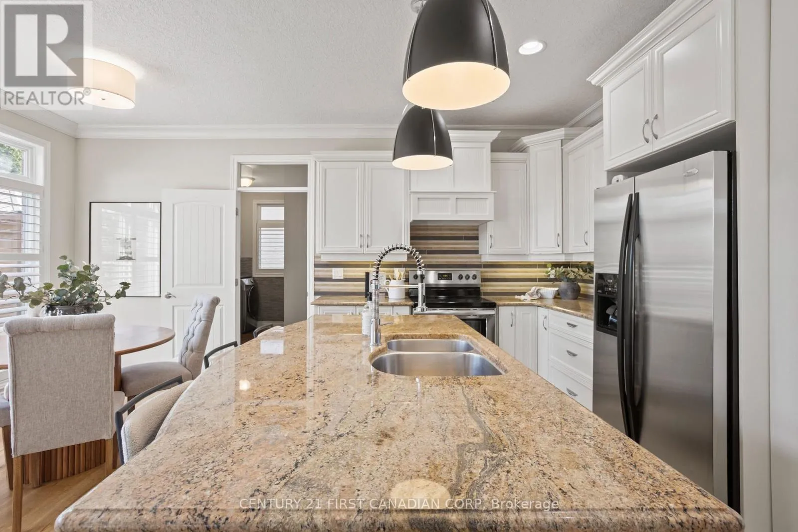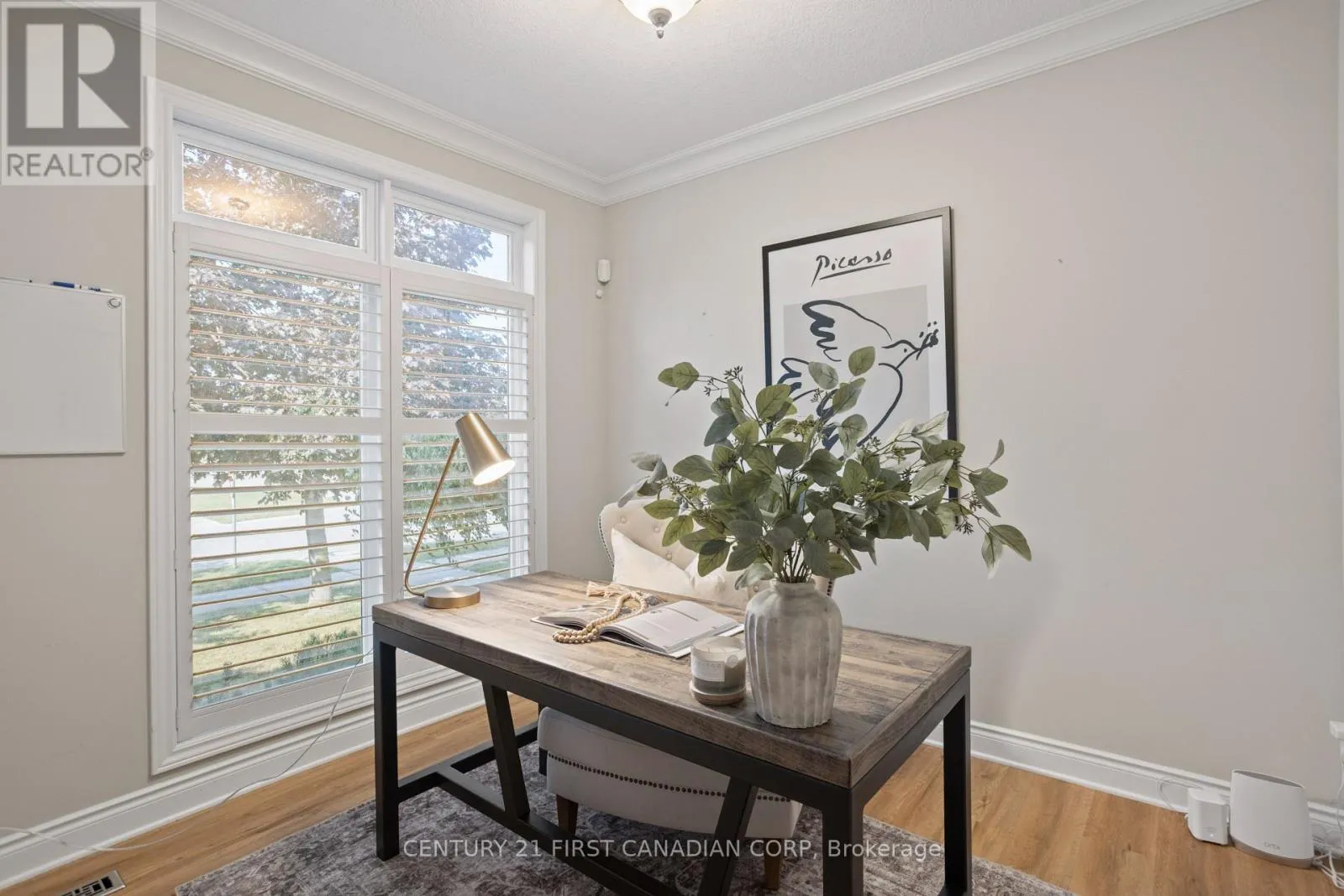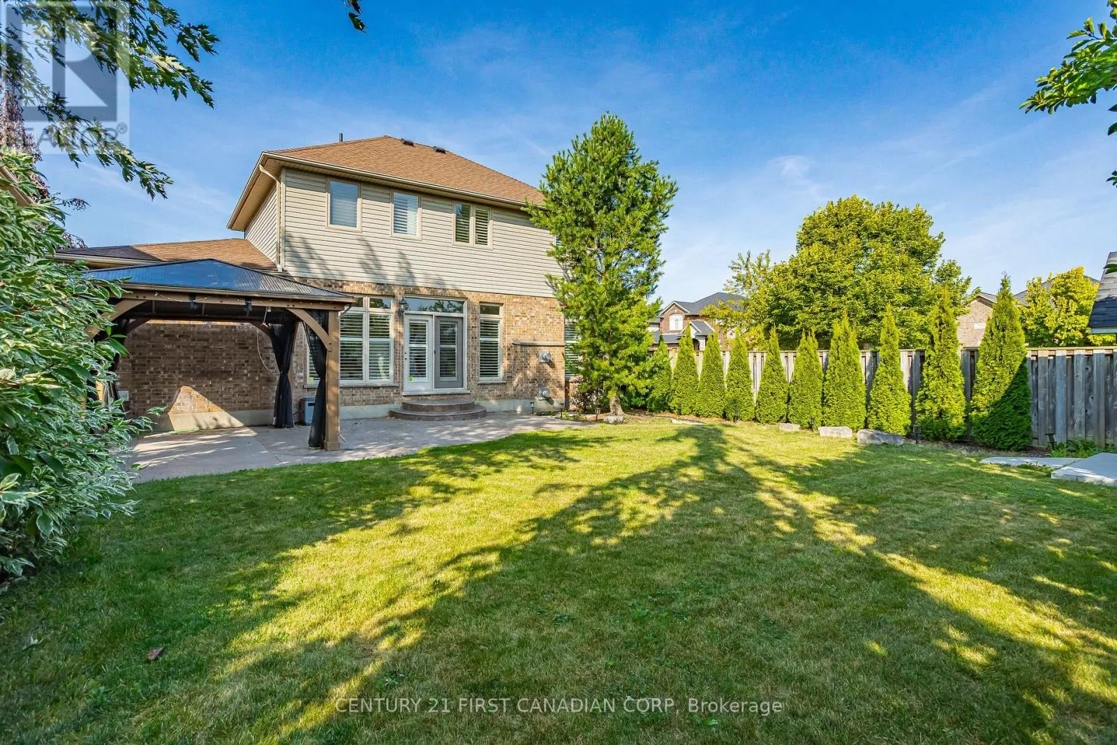 Cross Streets: Bluegrass Drive. ** Directions: Turn onto Redtail Trail from Bluegrass Drive. Perfectly tucked between Oakridge and Hyde Park, 792 Redtail Trail is located in the highly desirable Deer Ridge community of North London. This quiet street is a true hidden gem with no through traffic - only neighbours passing by - making it safe and welcoming for kids to ride bikes, play basketball, and enjoy the outdoors. Known for its amazing schools, easy access to shopping, parks and the neighbourhood's beloved annual pumpkin roll tradition, Deer Ridge offers one of the most family-friendly settings in the city. Set on a beautifully landscaped corner lot surrounded by mature trees, this home offers over 3,000 sq. ft. of finished living space designed for comfort and style. The main floor features crown moulding throughout, paired with custom California shutters that bring elegance to every room. Two gas fireplaces - in the living room and lower-level family room - create warm, inviting spaces for family gatherings. Outdoors, enjoy your own private retreat with a fully fenced yard, stamped concrete patio, gazebo for summer entertaining, and a custom-built shed for convenience and storage. Dare to compare - you won't find another home in North London that offers this combination of space, features, and community at this value. (id:27476)
