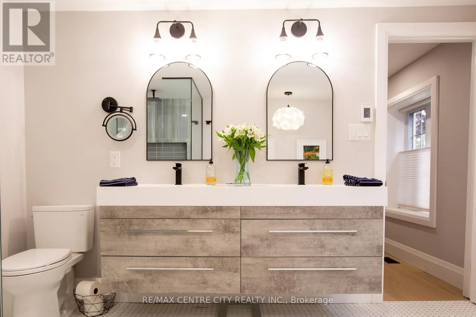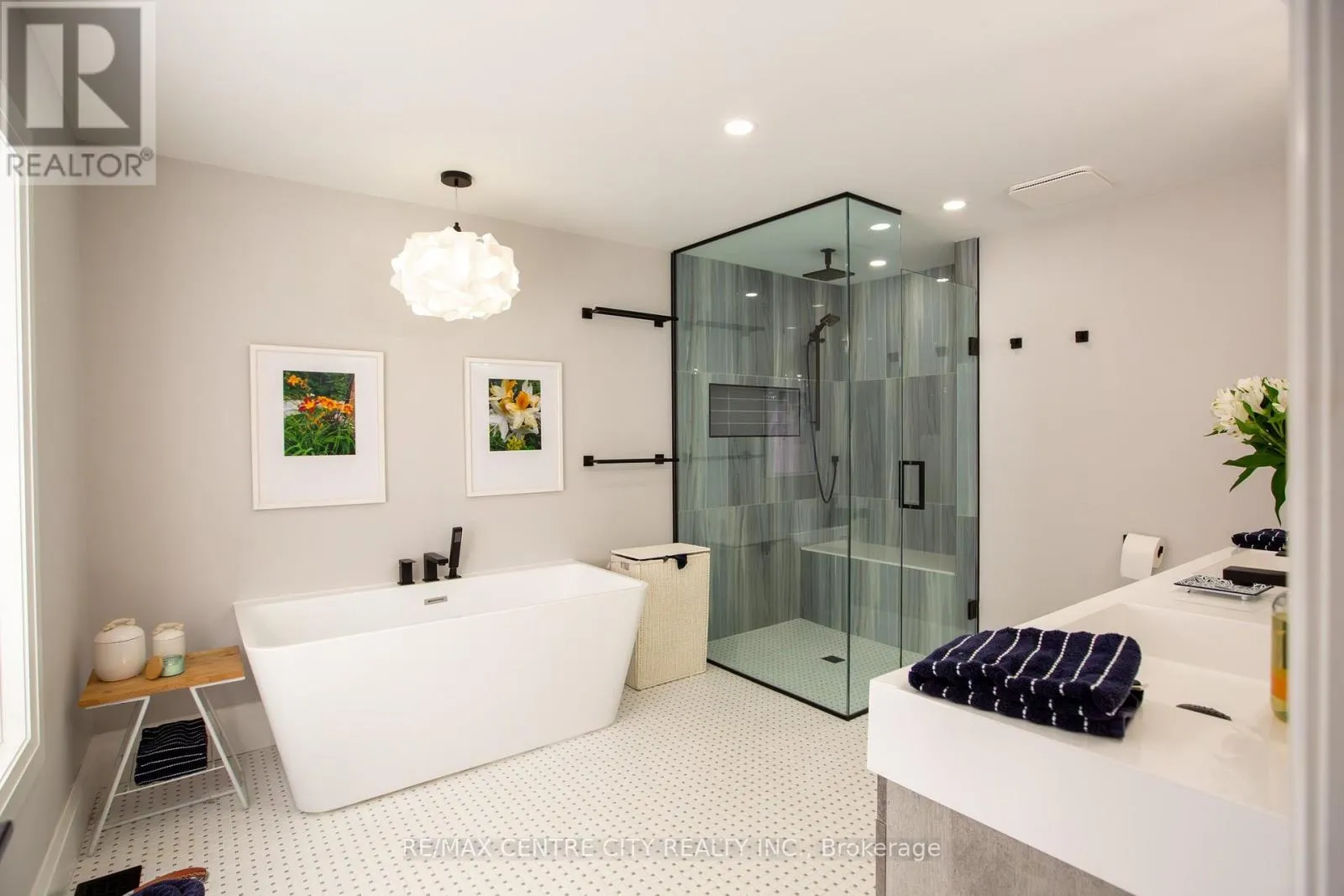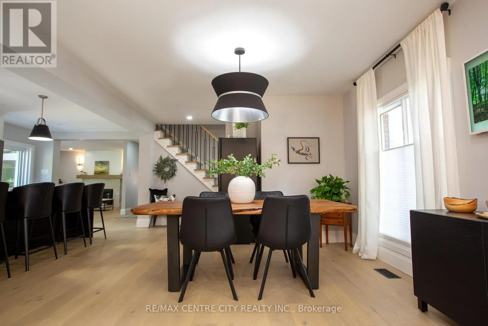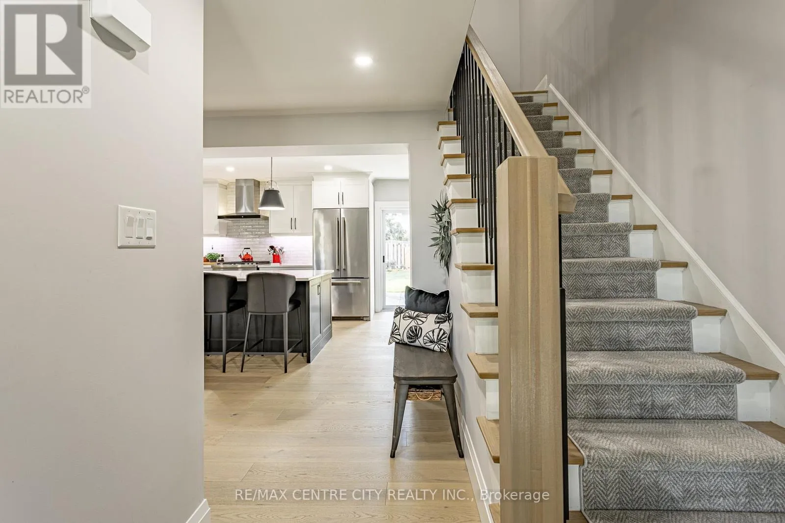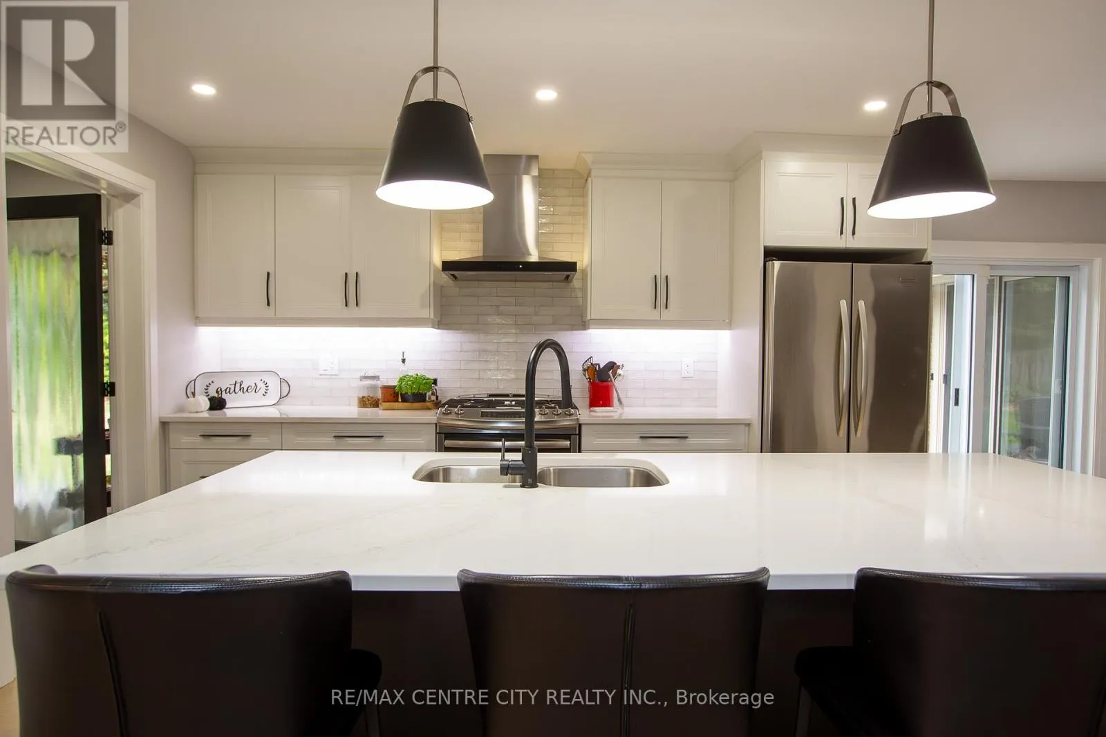 Cross Streets: Hastings Dr. ** Directions: Heading south on Hastings Dr., turn right onto Milford. Nestled in one of London's most desirable neighbourhoods, this completely reimagined 3-bedroom, 2.5-bathroom Stoneybrook residence is truly one of a kind. Taken right back to the studs and brought to current building codes with upgraded 6-inch exterior walls with new insulation and vapour barrier. This home offers peace of mind with every detail thoughtfully updated. The extensive renovations include all-new electrical wiring and 200-AMP service, upgraded insulation for year-round comfort, and a show-stopping kitchen featuring a spacious butler's pantry with main-floor laundry and a functional yet elegant design. The primary suite has been transformed into a private retreat, showcasing a luxurious 5-piece ensuite with heated floors and a walk-in closet. Throughout the home, new engineered hardwood flooring adds a fresh, modern flow, while the cozy family room has been enhanced with a striking new gas fireplace, and a brand new furnace has just been installed (Dec. 2025). Step outside to a beautifully landscaped pie-shaped lot, thoughtfully designed with exterior lighting to create a warm evening ambiance. A brand-new garden shed with electrical adds both charm and practicality to the backyard. Lastly, don't forget to pamper your pooch in the custom-built dog wash station. This home is more than just move-in ready, it is a rare opportunity to enjoy modern construction and timeless design in one of London's most established communities. (id:27476)