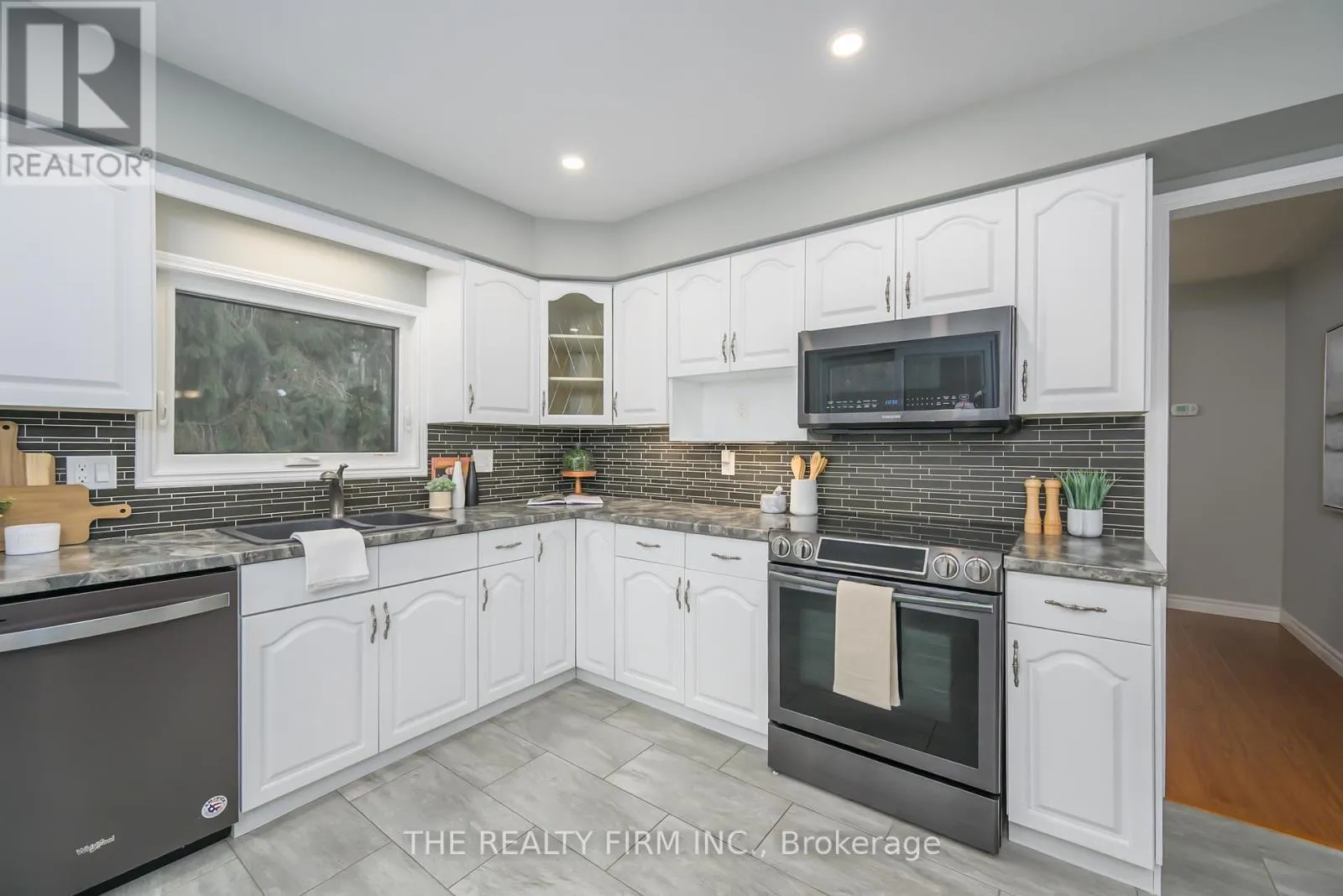 Cross Streets: Glenora Dr. ** Directions: Heading North on Adelaide St. N, Turn Right onto Glenora Dr., TurnRight onto Glenview Cres. 82 Glenview Cres is on the left corner. This spacious four level back-split is deceiving - it is much larger than it appears from the outside. Firstly, there is an oversized attached double car garage that allows a handyman/woman extra space for storage and/or workshop. The front porch is welcoming and offers enough room to sit comfortably and watch the world go by. Inside you are greeted by a spacious foyer that allows guest to flow seamlessly through the living/dining and kitchen area. The country sized kitchen is perfect for family meals or entertaining guests.The kitchen has been refreshed and has a newer stainless steel appliance package. There is easy access to a multi-tiered deck for outdoor entertaining. The upper level has three spacious bedrooms plus two refurbished bathrooms including a 3-piece ensuite. The third level is accented with a brick fireplace mantle with a gas fireplace insert and another set of patio doors to the deck area. The fourth level has a huge open recreation room area perfect for a game's room/gym or extra living space plus a laundry, storage and utility room. FYI - The furnace was recently updated. The extra bonus is an auxiliary suite accessed by a separate side entrance - completely independent from the main house. This unit has a bedroom, 3-piece bath, and an eat-in kitchen area plus its own laundry. A great opportunity for extra income and/or multi-generational living. The suite can easily be opened back up to the third level family room area, if desired. The property exhibits pride of ownership both inside and outside. (id:27476)