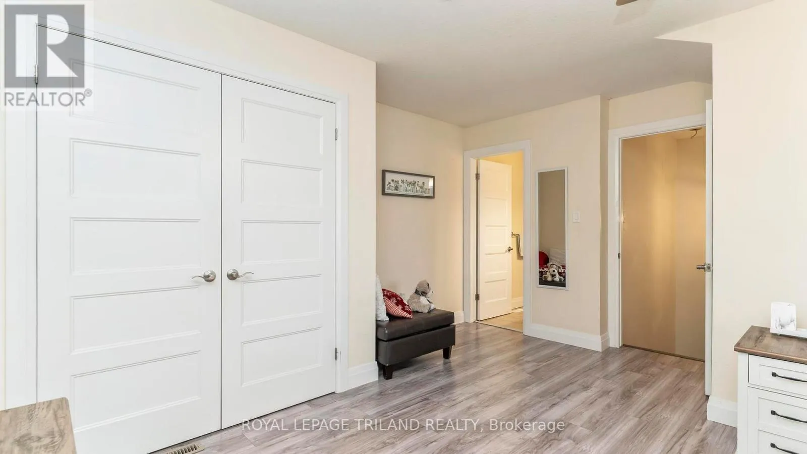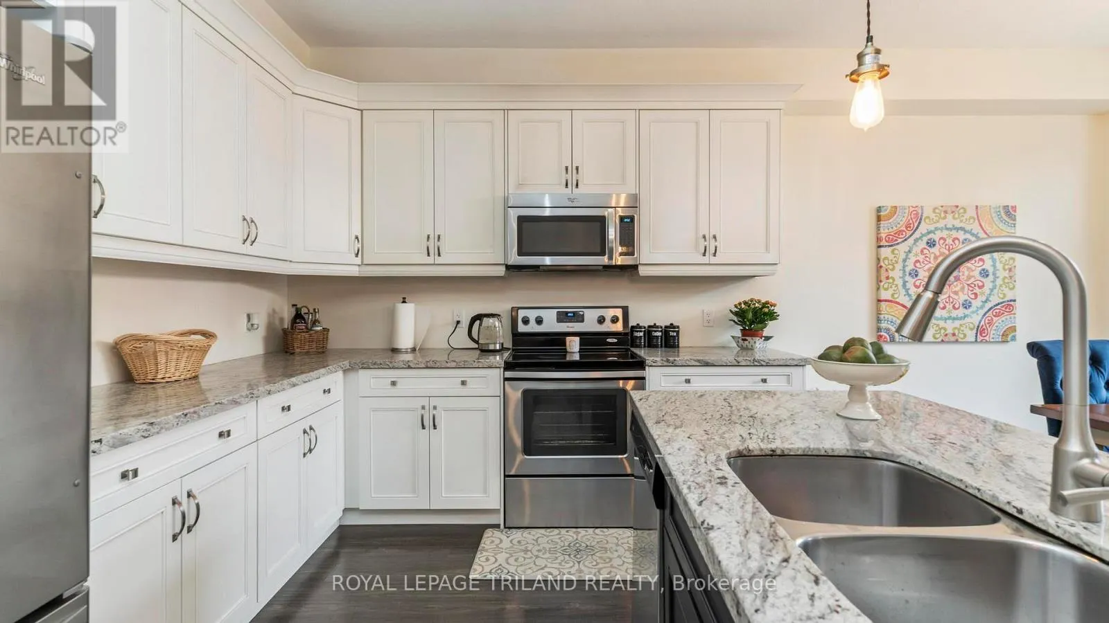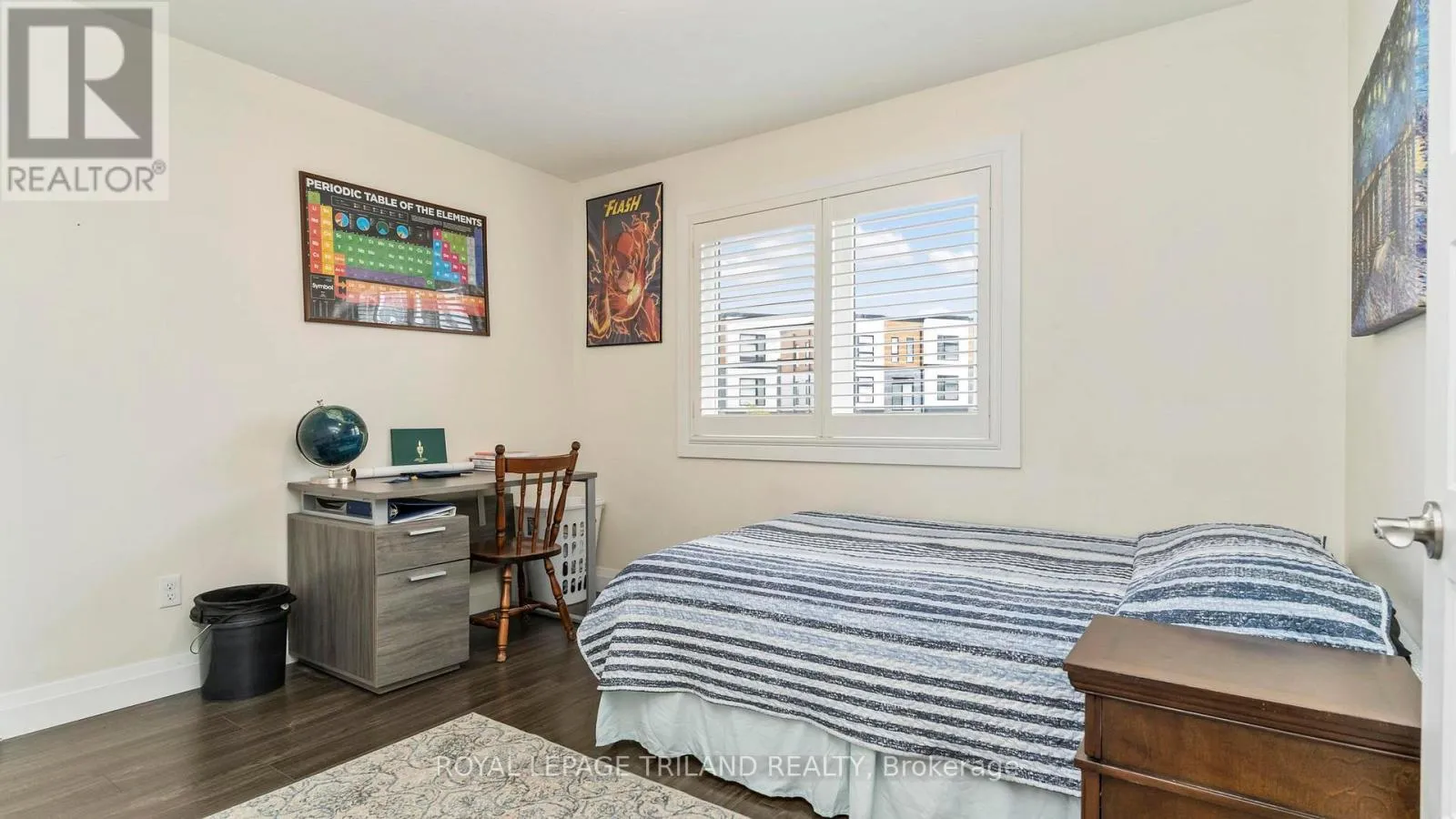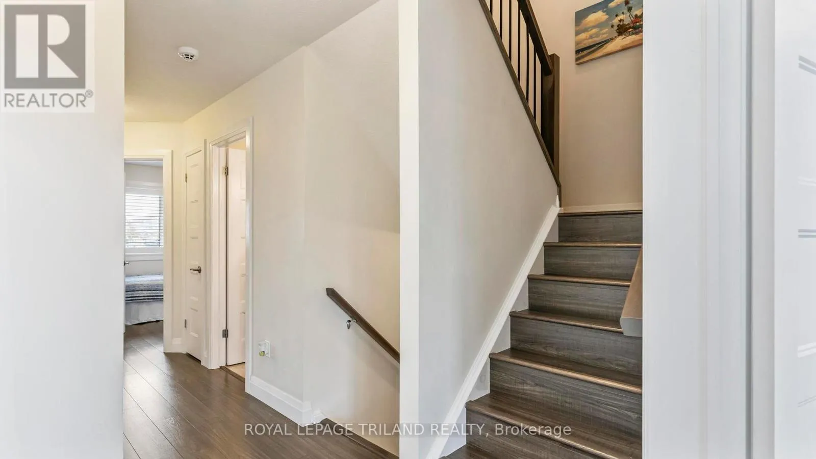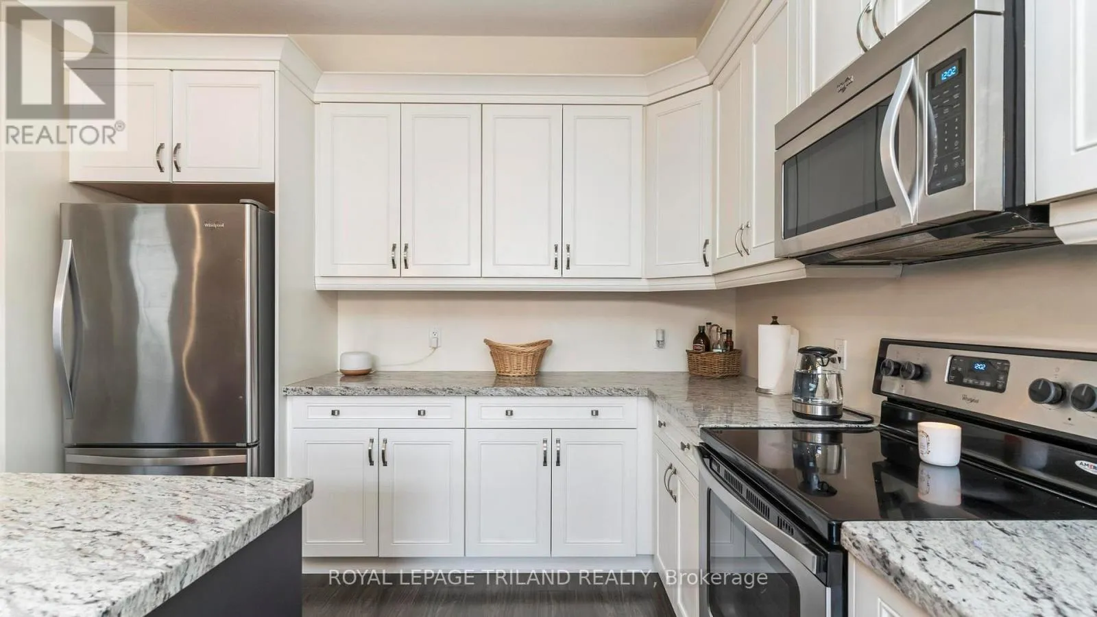 Cross Streets: SUNNINGDALE ROAD AND RICHMOND STREET. ** Directions: TAKE RICHMOND STREET TRAVELING NORTH, TURN LEFT ONTO SUNNINGDALE ROAD,TURN RIGHT ONTO MEADOWLANDS WAY, TURN RIGHT ONTO CALLAWAY ROAD, TURN RIGHTINTO 275 CONDO COMPLEX, TURN LEFT THEN RIGHT, CONDO ON LEFT HAND SIDE. Updates galore in this magnificent professionally updated condo unit in the Sunningdale and Richmond area of North London. This 4 bedroom, 3.5 bathroom 2068 sq. ft. home with a finished basement is in a prime location in a private and quiet complex located close to every amenity you want and need. Visitor parking steps away. Vinyl plank flooring installed on all levels. Enjoy the gas fireplace in the Great Room in the open concept main floor. Maxxmar custom wood window shutters. 3 bedrooms on the 2nd floor including a wonderful Master suite with a balcony, sitting area, office space, walk-in closet with custom closet organizer and 4 piece ensuite. Bonus room in the loft (3rd level) acts as a 2nd master bedroom or in-law suite with a 4 piece ensuite bathroom and ceiling fan. Fully finished lower level offers Family Room for movie watching, bedroom, storage or office space, laundry room as well as rough-in for a bath. Upgrades include granite counters in the kitchen and powder room, garburator, kitchen faucet, built-in microwave, monitored alarm system, installed an On-demand water heater, new Smart Air furnace with hepa filter, UV light bulb, humidifier in 2020 & smart thermostat. Custom closet organizer in 4 bedrooms, 1/3" thick sound insulated garage door, smart garage door opener & keypad. Driveway extended for 2 cars. Fiber cable internet available. Lovely deck off of the kitchen dinette with sliding doors for great entertaining of family and friends. Low condo fee of $334/month covers everything to be repaired or replaced outside, with grass cutting and snow removal. Designated schools are highly-rated: Old North PS and London Central SS (#1 rated in London). This home is move-in ready. Nothing left to do but enjoy! (id:27476)