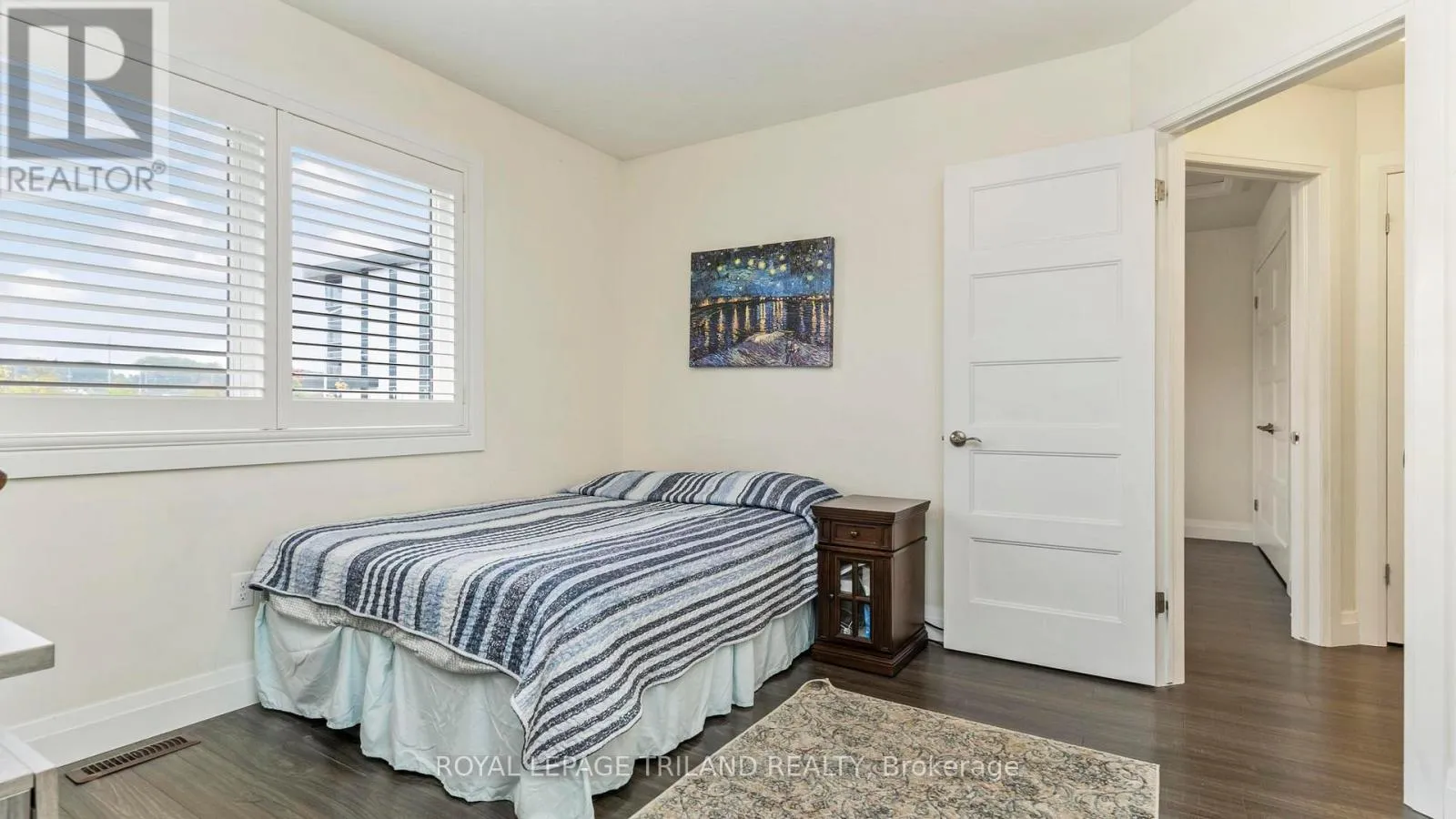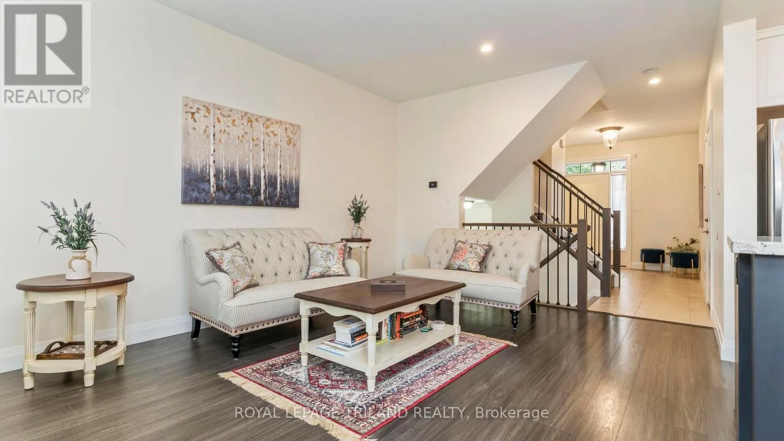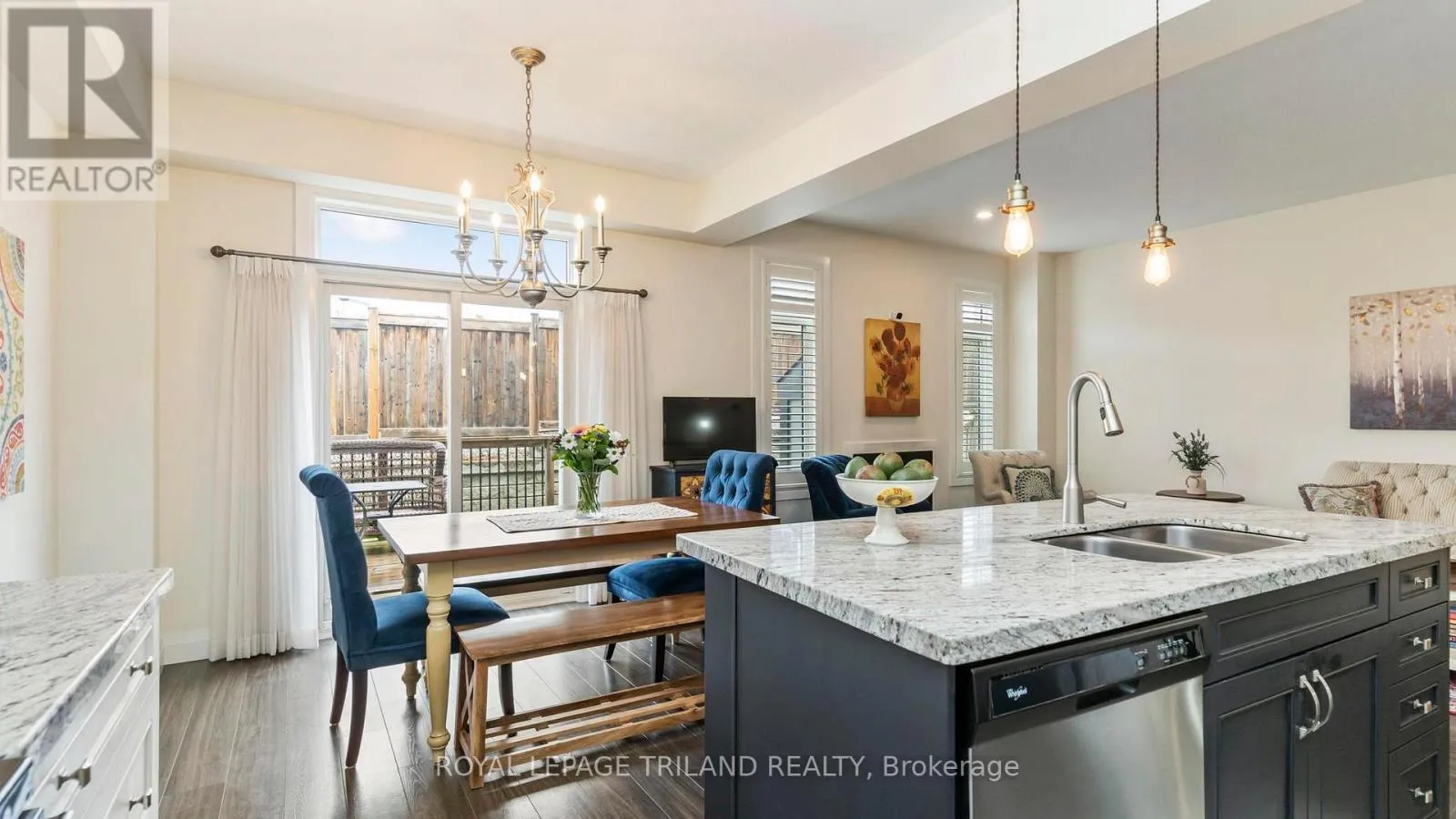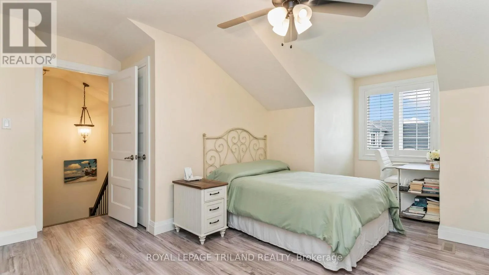 Cross Streets: SUNNINGDALE ROAD AND RICHMOND STREET. ** Directions: TAKE RICHMOND STREET TRAVELING NORTH, TURN LEFT ONTO SUNNINGDALE ROAD,TURN RIGHT ONTO MEADOWLANDS WAY, TURN RIGHT ONTO CALLAWAY ROAD, TURN RIGHTINTO 275 CONDO COMPLEX, TURN LEFT THEN RIGHT, CONDO ON LEFT HAND SIDE. Updates galore in this magnificent professionally updated condo unit in the Sunningdale and Richmond area of North London. This 4 bedroom, 3.5 bathroom 2068 sq. ft. home with a finished basement is in a prime location in a private and quiet complex located close to every amenity you want and need. Visitor parking steps away. Vinyl plank flooring installed on all levels. Enjoy the gas fireplace in the Great Room in the open concept main floor. Maxxmar custom wood window shutters. 3 bedrooms on the 2nd floor including a wonderful Master suite with a balcony, sitting area, office space, walk-in closet with custom closet organizer and 4 piece ensuite. Bonus room in the loft (3rd level) acts as a 2nd master bedroom or in-law suite with a 4 piece ensuite bathroom and ceiling fan. Fully finished lower level offers Family Room for movie watching, bedroom, storage or office space, laundry room as well as rough-in for a bath. Upgrades include granite counters in the kitchen and powder room, garburator, kitchen faucet, built-in microwave, monitored alarm system, installed an On-demand water heater, new Smart Air furnace with hepa filter, UV light bulb, humidifier in 2020 & smart thermostat. Custom closet organizer in 4 bedrooms, 1/3" thick sound insulated garage door, smart garage door opener & keypad. Driveway extended for 2 cars. Fiber cable internet available. Lovely deck off of the kitchen dinette with sliding doors for great entertaining of family and friends. Low condo fee of $334/month covers everything to be repaired or replaced outside, with grass cutting and snow removal. Designated schools are highly-rated: Old North PS and London Central SS (#1 rated in London). This home is move-in ready. Nothing left to do but enjoy! (id:27476)