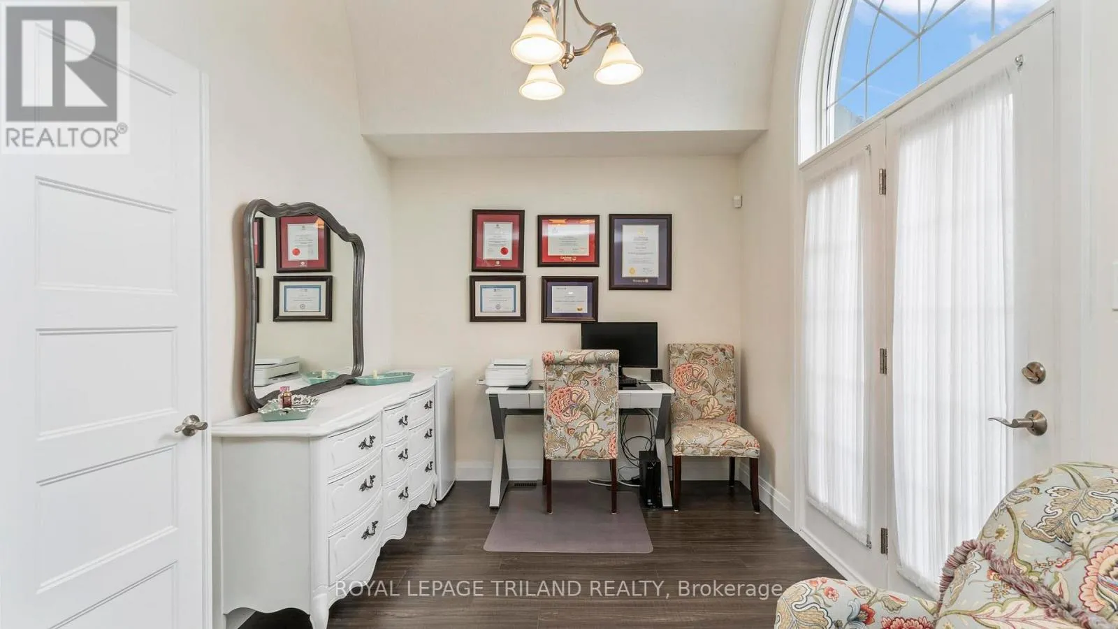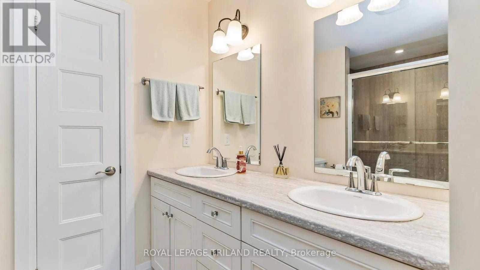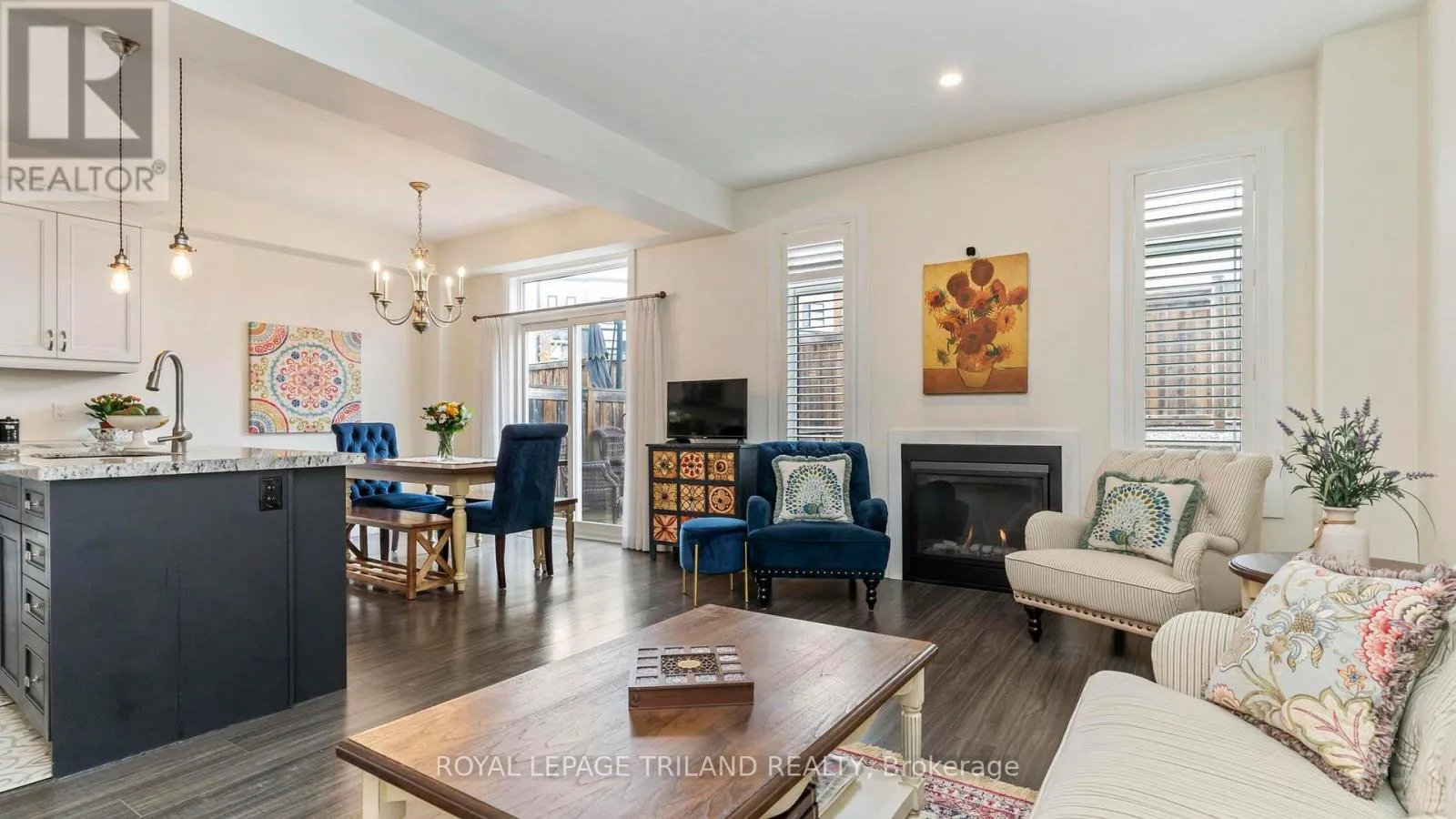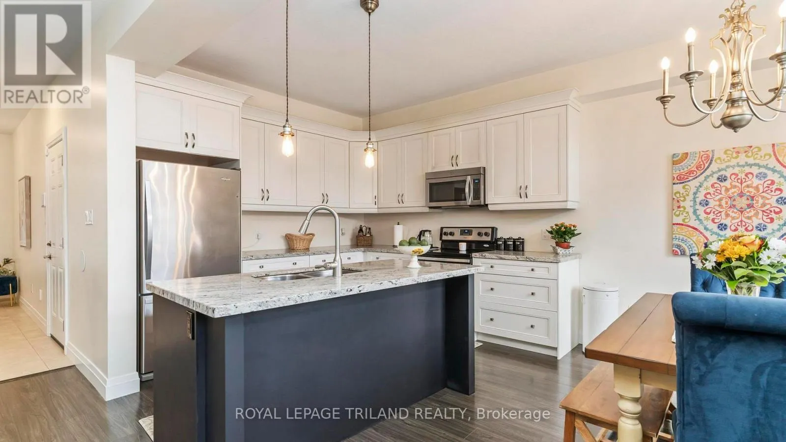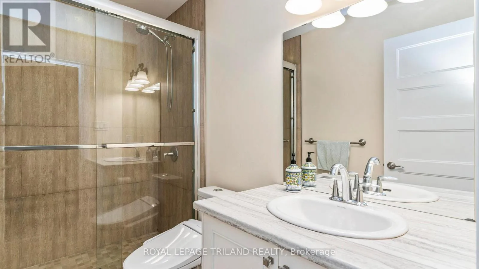 Cross Streets: SUNNINGDALE ROAD AND RICHMOND STREET. ** Directions: TAKE RICHMOND STREET TRAVELING NORTH, TURN LEFT ONTO SUNNINGDALE ROAD,TURN RIGHT ONTO MEADOWLANDS WAY, TURN RIGHT ONTO CALLAWAY ROAD, TURN RIGHTINTO 275 CONDO COMPLEX, TURN LEFT THEN RIGHT, CONDO ON LEFT HAND SIDE. Updates galore in this magnificent professionally updated condo unit in the Sunningdale and Richmond area of North London. This 4 bedroom, 3.5 bathroom 2068 sq. ft. home with a finished basement is in a prime location in a private and quiet complex located close to every amenity you want and need. Visitor parking steps away. Vinyl plank flooring installed on all levels. Enjoy the gas fireplace in the Great Room in the open concept main floor. Maxxmar custom wood window shutters. 3 bedrooms on the 2nd floor including a wonderful Master suite with a balcony, sitting area, office space, walk-in closet with custom closet organizer and 4 piece ensuite. Bonus room in the loft (3rd level) acts as a 2nd master bedroom or in-law suite with a 4 piece ensuite bathroom and ceiling fan. Fully finished lower level offers Family Room for movie watching, bedroom, storage or office space, laundry room as well as rough-in for a bath. Upgrades include granite counters in the kitchen and powder room, garburator, kitchen faucet, built-in microwave, monitored alarm system, installed an On-demand water heater, new Smart Air furnace with hepa filter, UV light bulb, humidifier in 2020 & smart thermostat. Custom closet organizer in 4 bedrooms, 1/3" thick sound insulated garage door, smart garage door opener & keypad. Driveway extended for 2 cars. Fiber cable internet available. Lovely deck off of the kitchen dinette with sliding doors for great entertaining of family and friends. Low condo fee of $334/month covers everything to be repaired or replaced outside, with grass cutting and snow removal. Designated schools are highly-rated: Old North PS and London Central SS (#1 rated in London). This home is move-in ready. Nothing left to do but enjoy! (id:27476)
