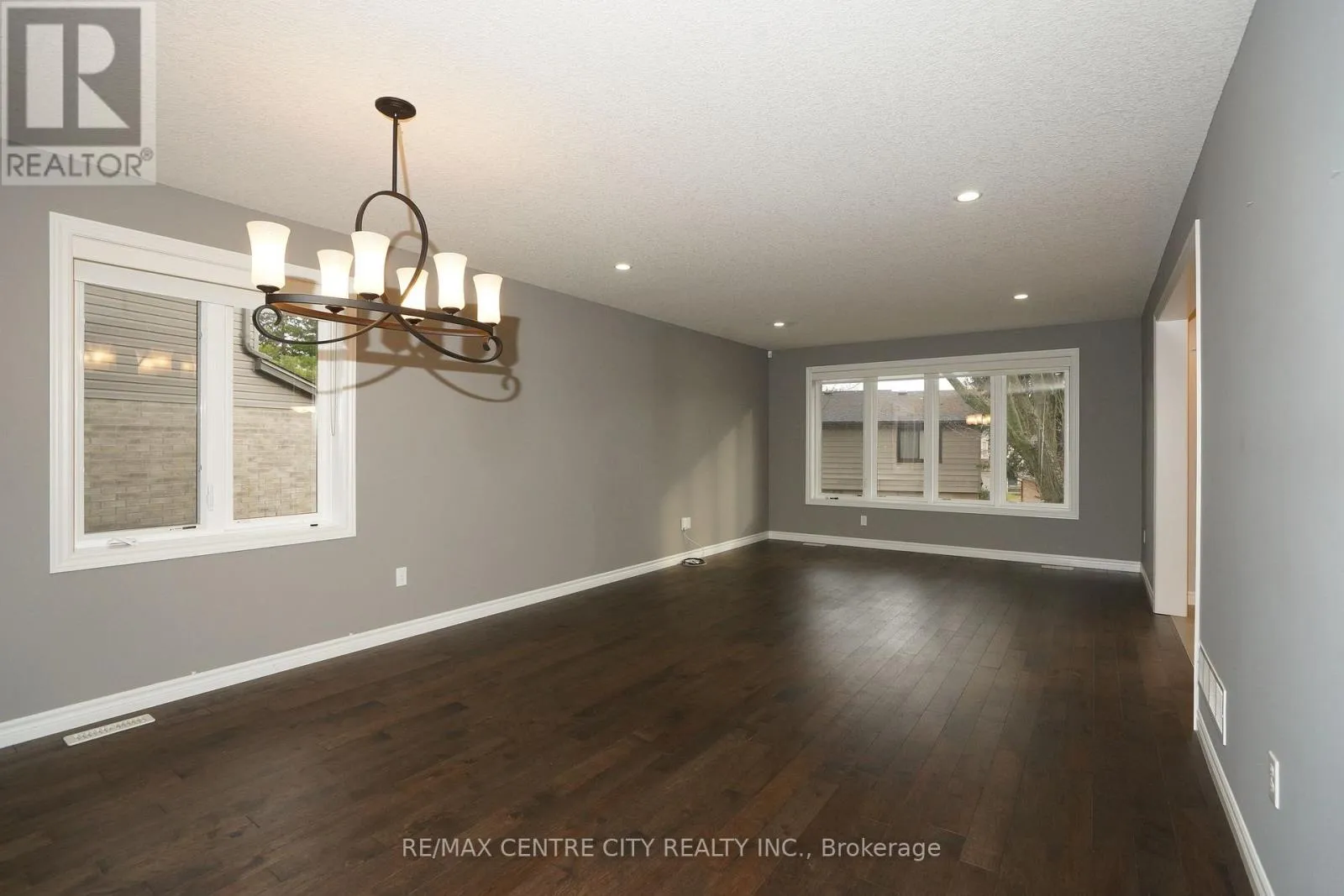 Cross Streets: Adelaide st N @Tennent Ave. ** Directions: From Adelaide St North to Tennent Ave and turn right to Horseshoe Cre. Prime Location! RARE WALK-OUT LOT!! Perfect for young families. Stunning 3+1 bedroom, 3.5 bathroom home with great curb appeal situated on a private, desirable walk-out lot in the prestigious North London. The top school(Lucas High School) is in the Northridge neighbourhood. This open concept home with countless upgrades shows like a model. Gleaming White Oak hardwood on the main floor, ceramic tile, and custom California shutters. Magnificent BONUS second-floor family room, cozy gas fireplace, recessed lighting, and dramatic windows. new hardwood floors. Luxury master retreat boasts spa ensuite with double sinks and a custom tile shower with a glass enclosure. Gourmet chefs' kitchen, handcrafted espresso cabinetry with pantry, peninsula with breakfast bar, quartz countertops, valance lighting. Lower level features a primary bedroom with 4p ensuite, plus a family room with plenty of natural light and walk-out to your backyard oasis. Private sundeck with natural gas barbecue line. Six parking driveway with interlock brick. It's move-in condition. (id:27476)