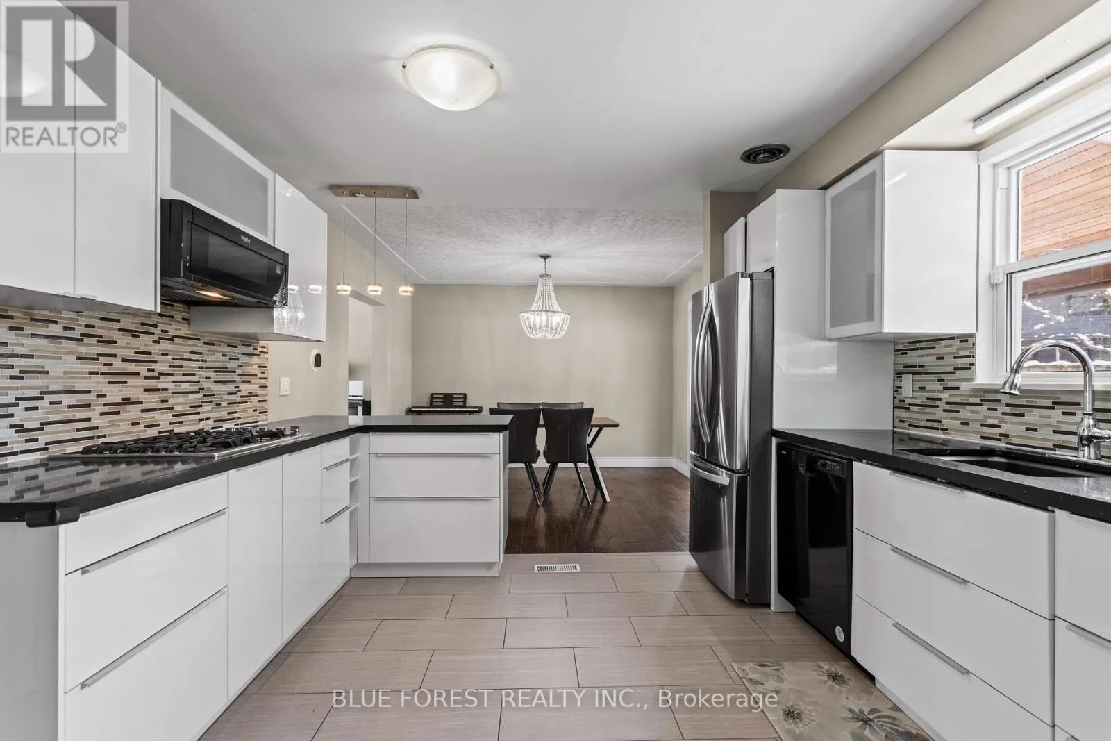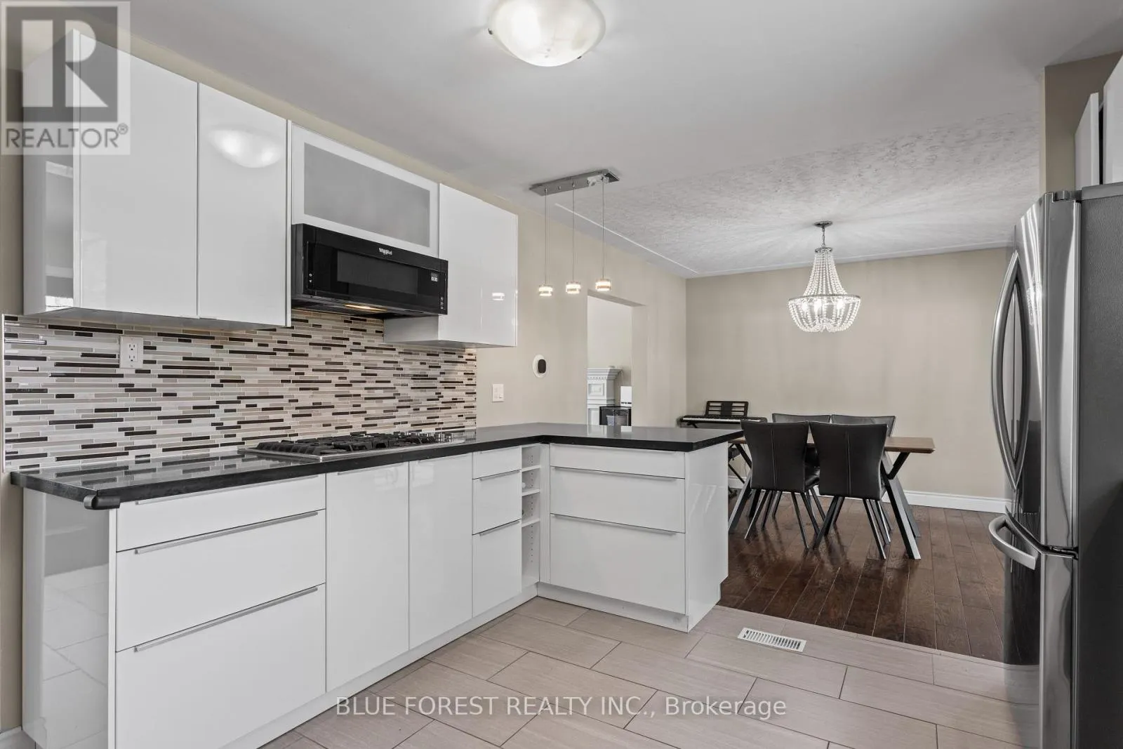 Cross Streets: Middlewood Dr. ** Directions: off of Middlewood Dr. Welcome to 6 Gretna Green! Located in the highly sought-after Orchard Park neighbourhood, this beautifully updated two-storey home is perfect for those looking for a great neighbourhood to raise their family. Enjoy nearby parks, top-rated schools, scenic Medway Valley trails and other everyday amenities. Inside, you'll love the modern, spacious kitchen (2018) with quartz countertops and newer appliances (2025), overlooking the dining room - ideal for entertaining with patio doors leading to the backyard, perfect for BBQs and outdoor dining. The bright living room features a large picture window and a show-stopping fireplace as the centrepiece. Upstairs offers four sizeable bedrooms and an updated 5-piece bathroom. The living space continues in the finished basement, offering incredible versatility with a rec. room or an at-home office space, oversized laundry room with new washer and dryer (2025), and plenty of storage. Move-in ready with all of the costly maintenance completed, such as roof (2018), furnace (2018), all vinyl windows (2018) and AC unit (2021). Family-friendly and set in one of London's most desirable areas - 6 Gretna Green is the perfect place to call home! (id:27476)