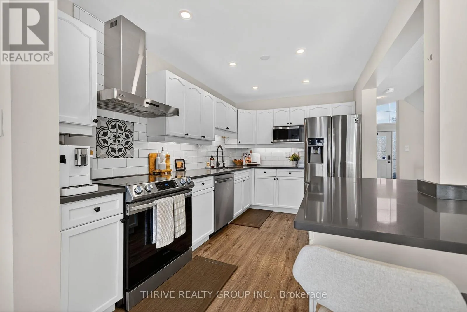 Cross Streets: Oxford Street & Capulet. ** Directions: Oxford Street toward west, turn right into Capulet Ln, turn left at Silversmith Street. Welcome to 773 Silversmith Street! beautiful freehold townhome(no condo fees) backing onto a peaceful pond in south-after North West London. Enjoy serene views from your deck- perfect for morning coffee, sunset walks, or summer BBQs. Inside the open concept the main floor features a modern kitchen with quartz countertops, stainless steel appliances (2020) and a cozy gas fireplace. Upstairs, the primary suite offers a walk-in closet and ensuite while the other bedrooms overlook the pond. Floors and bathrooms (2 full and 2 half) were renovated in 2020, furnace and A/C were also replaced that year. The finished lower level provides extra living space for an office, gym or family room. Roof updated 2016. Ideally located near Costco, LCBO, restaurants, banks, and minutes to Western Ontario University. This home offers modern comfort, natural beauty, and everyday convenience. (id:27476)