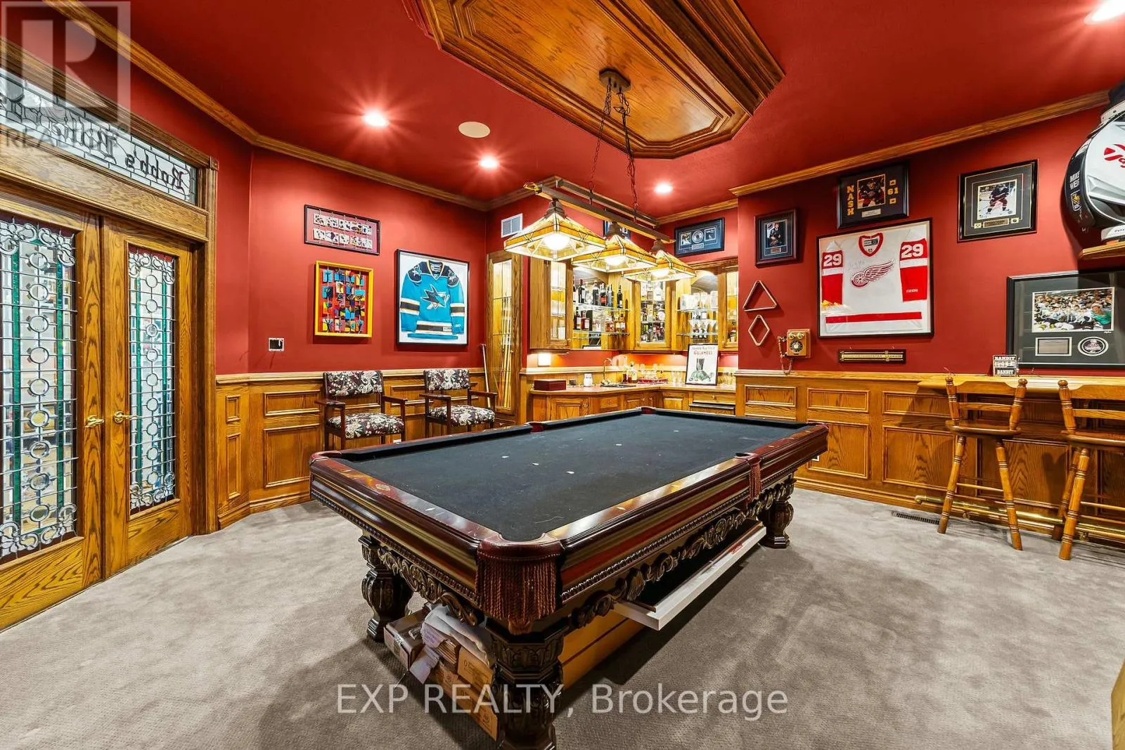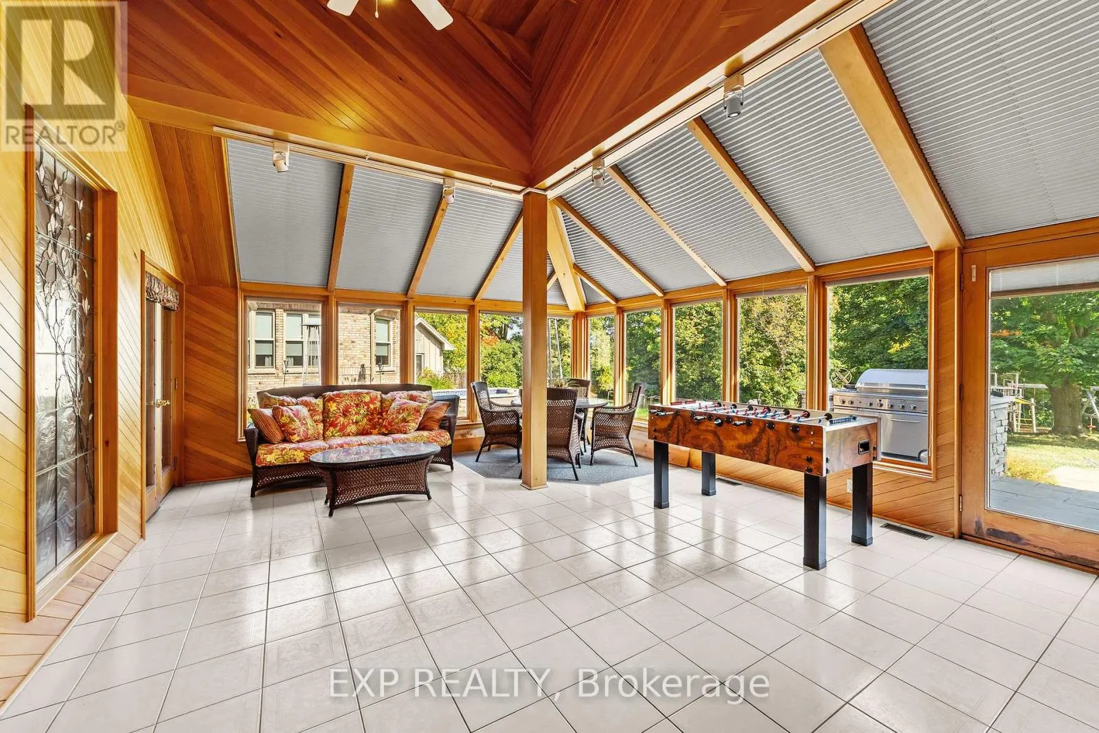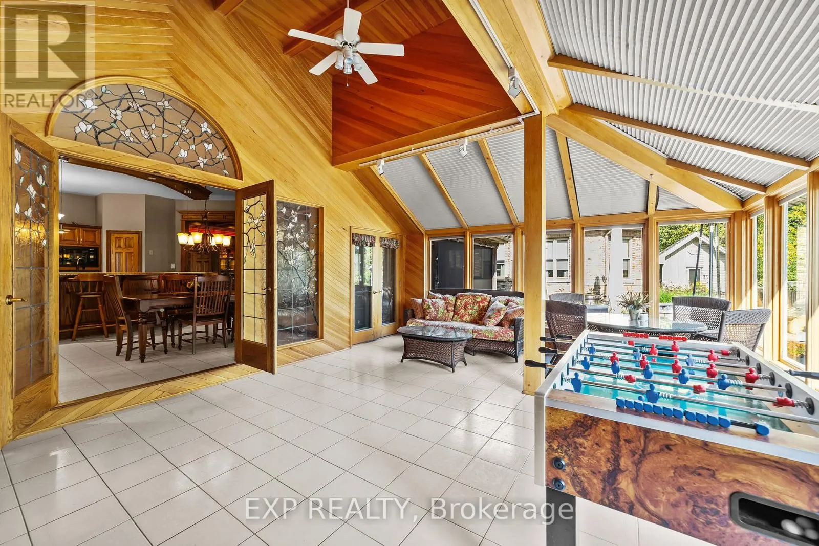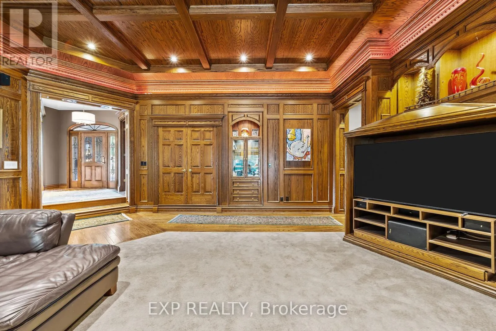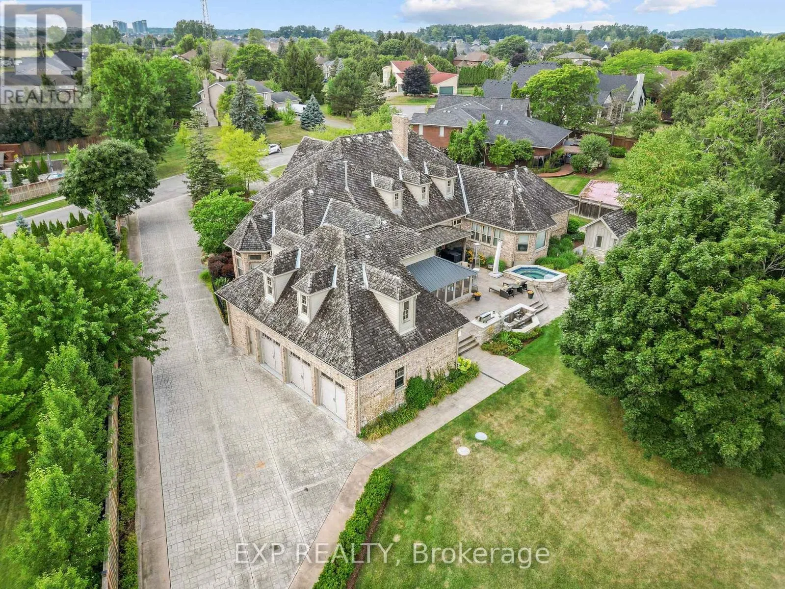 Wonderland Rd N/Franklinway Gate Custom-built estate just under 7,000 sq. ft., this one-of-a-kind residence backs onto the Medway River and was awarded Ontario's Custom Home of the Year upon completion. Tucked away on one of North London's most prestigious streets, the home sits on nearly an acre with a stamped horseshoe concrete drive leading to the triple car garage. Inside, timeless craftsmanship is evident with rich woodwork throughout, a formal living room with wood-lined ceilings, custom built-ins, and ambient lighting. The main floor offers four bedrooms, with two additional potential bedrooms upstairs, along with a wood-paneled office, a custom gym above the garage, and an extra family room above the billiards room. The spacious eat-in kitchen opens to a sunroom and screened patio, while heated flagstone walkways and patios flow to a fully reimagined backyard oasis. The exterior was completely redesigned with professional landscaping, custom stone sills, outdoor lighting, power screens, a multi-sport court that converts to a winter rink, a custom all-season hot tub spa, and an outdoor bathroom with oversized equipment room designed for a future infinity pool. Bellissimo light fixtures, a 19-zone irrigation system, and invisible fencing complete the grounds. The primary suite features its own living room and private courtyard, while all bathrooms were fully redesigned between 2012-2014 with luxurious finishes. Comfort upgrades include spray-foam insulation, a newer HVAC system, and a state-of-the-art Elgin Pure Water purification system. Modern technology abounds with Savant whole-home automation, Legrand touch switches, motorized roller shades, a 12-camera security system, and an integrated outdoor sound system.Blending award-winning design with extensive updates, this estate offers unmatched privacy, sophistication, and lifestyle truly one of Londons most distinguished residences. (id:27476)