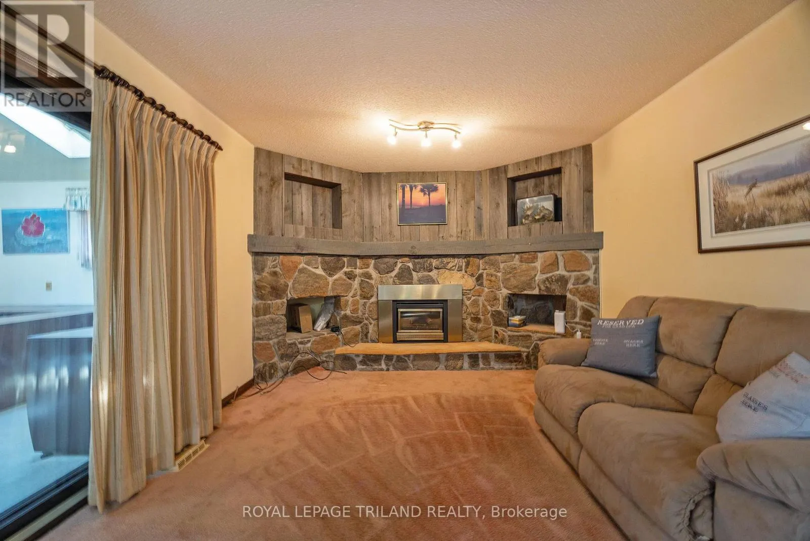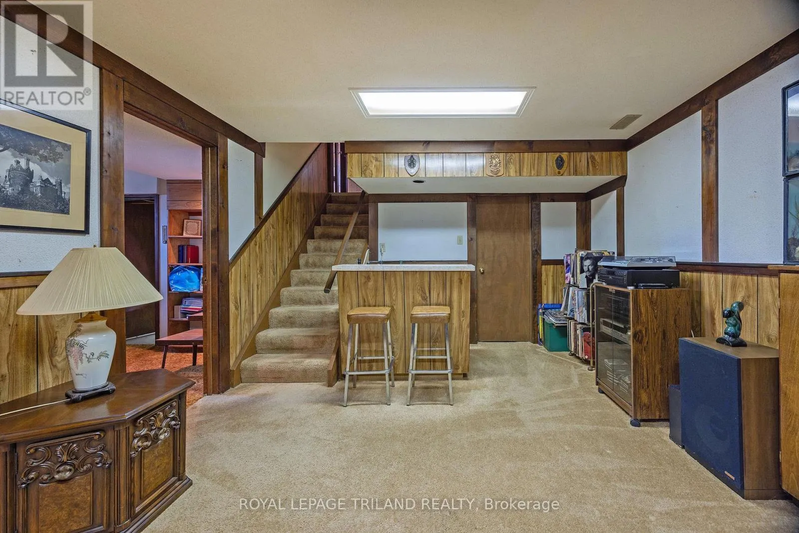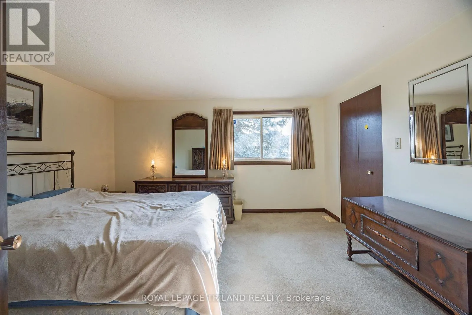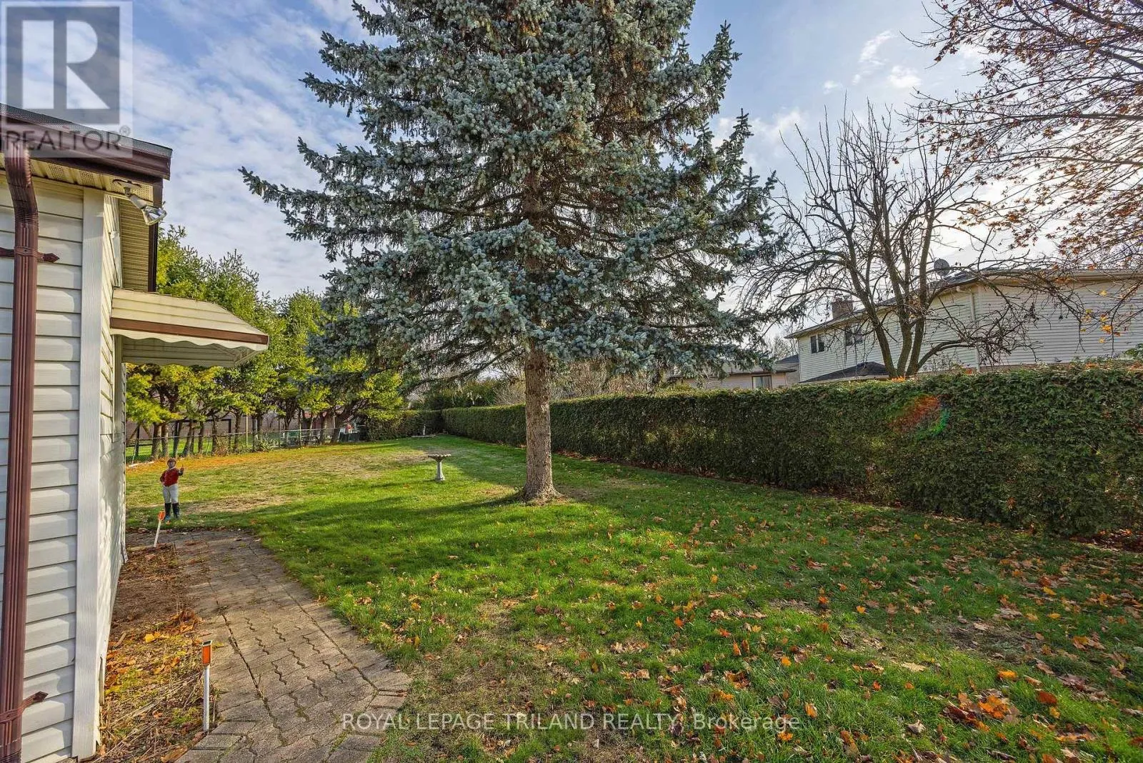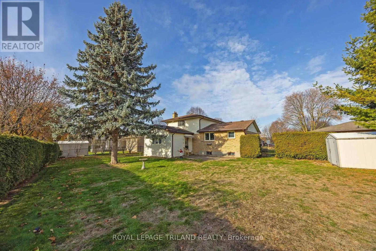 Cross Streets: Blue Forest Drive and Concord Road. ** Directions: Wonderland Rd N to Sarnia Rd, West on Sarnia Rd to Blue Forest Dr. Concord Rd is on the right. Well maintained 3 bedroom 2 .5 bathroom sidesplit on a quiet North London street close to shopping, restaurants and minutes from Western University. Great Opportunity for a student rental or family home with a large well lit addition on the back that has two skylights and its own keyed entrance for an office just a multi-use room. The Master bedroom has a walk-in closet and ensuite. The second bathroom has a walk-in jetted tub. The basement is partially finished with the potential for a fourth small bedroom and has a bar. This property is just under 1/4 acre and has a fully fenced backyard with 2 gates (one on either side) that is beautifully landscaped with a small patio, a shed and mature trees. It also has an attached single garage and a driveway that holds 4 cars. All appliances are included including an owned water softener. (id:27476)