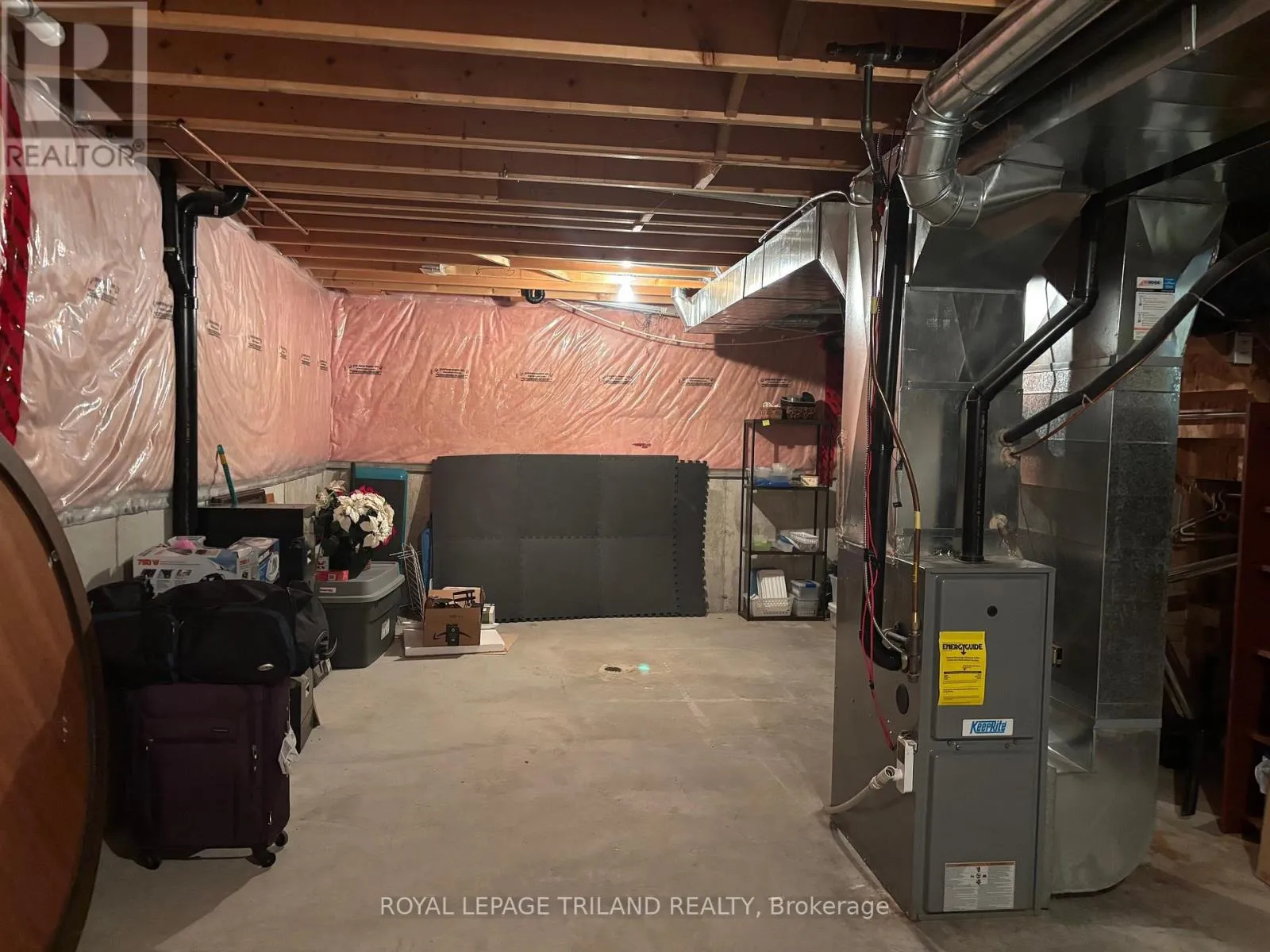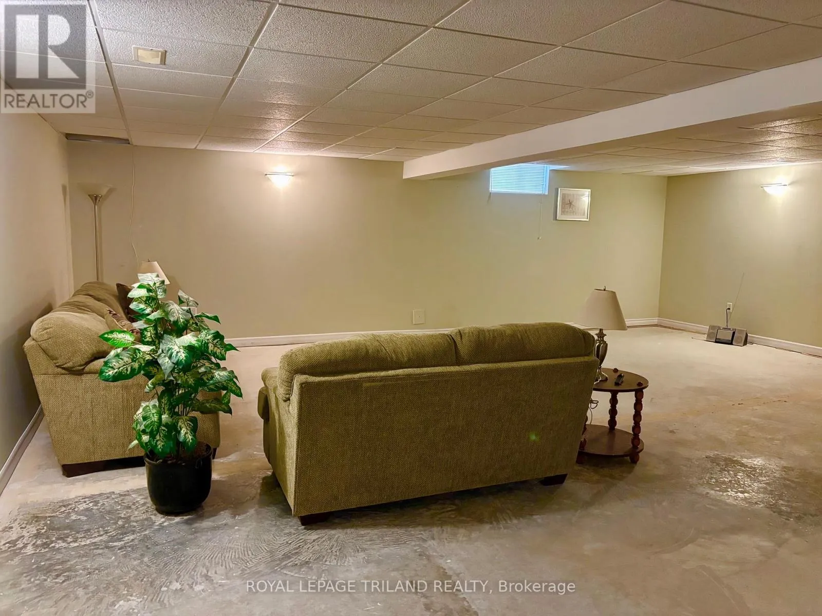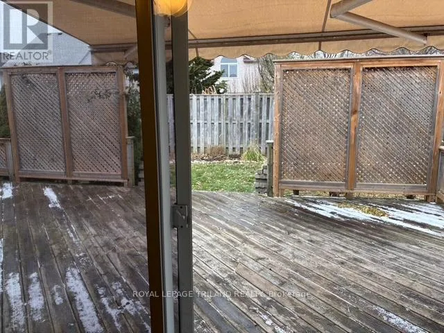 Cross Streets: Capulet Lane or Whetherfield St. ** Directions: Oxford St. W. turn north on Capulet Lane then west on Silversmith. Spacious one-floor brick ranch in desirable Oakridge Crossing in west London. Offering 1,579 sq. ft. on the main level, this home features vaulted ceilings and an open-concept living and dining area. The kitchen includes a raised dishwasher for easy access and sliding doors leading to a 27' x 14' deck overlooking a private, fully fenced yard. Hardwood flooring enhances the hallway, and main-floor laundry provides convenient inside entry from the two-car garage. There are two bedrooms, including a generous primary suite with double closets and a private ensuite featuring a shower and deep soaker tub. The lower level adds impressive extra space with a large rec-room, games room, a full 3-piece bath with a walk-in shower, and abundant storage including a fruit cellar. Pre-wired for a security system. This home is linked only by one wall in the garage area. A great condo alternative-no condo fees. Close to parks, shopping, and West London amenities. (id:27476)