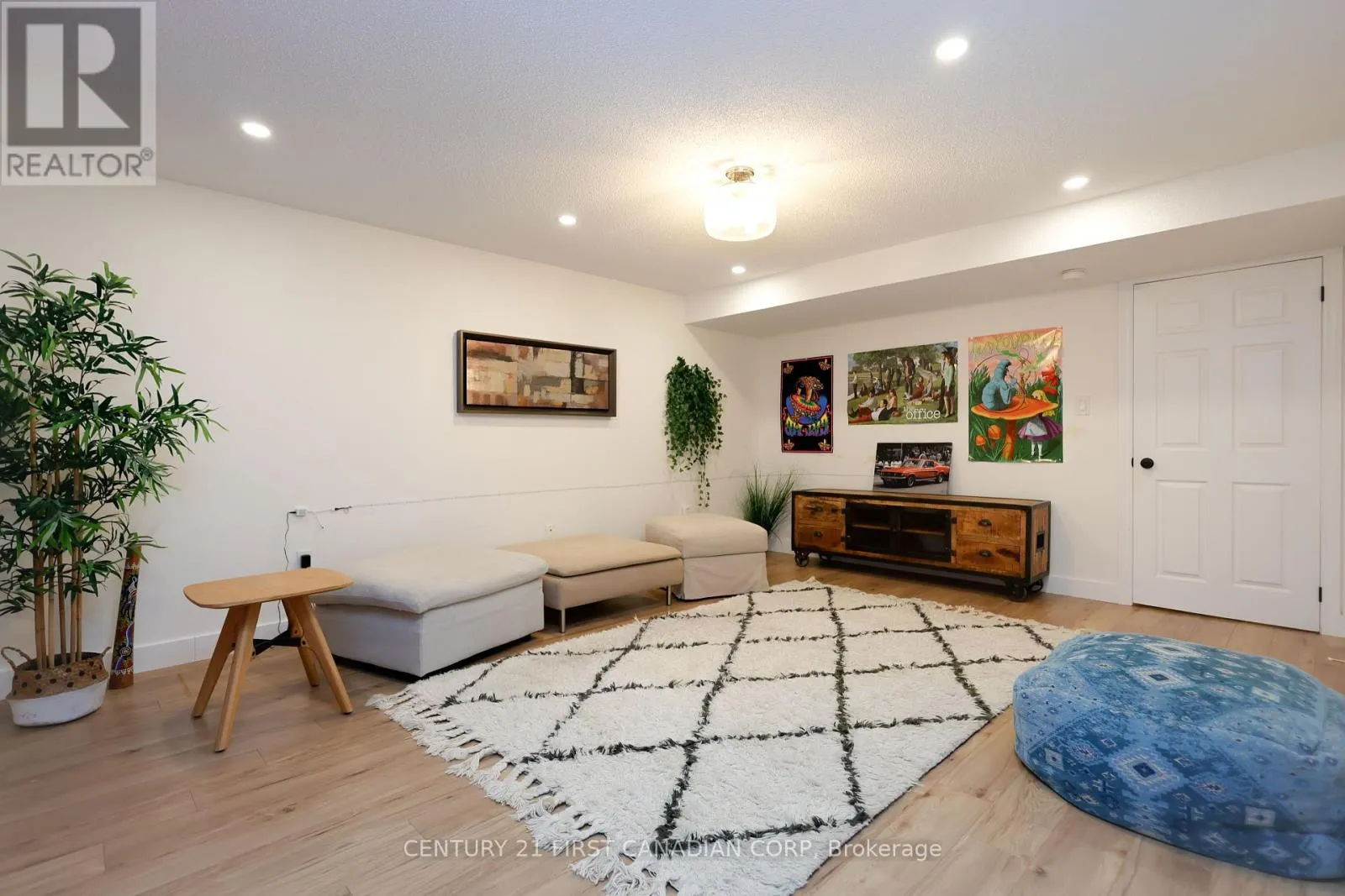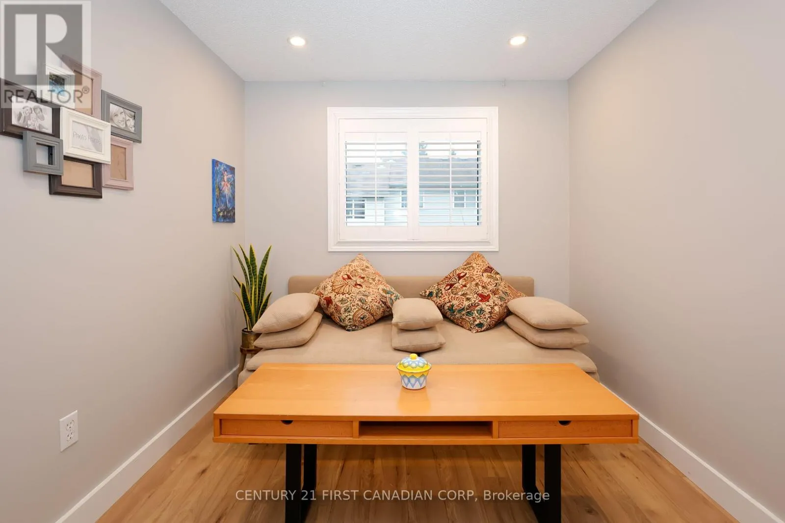 Cross Streets: Wonderland and Sarnia. ** Directions: From U.W.O. go West on SARNIA RD. TURN LEFT ONTO CHAPMAN COURT after Wonderland Road. FURNISHED 3 bedroom, 1.5 bath townhome for rent. All furnishings, furniture is included in the rent. This home is renovated top to bottom with high end finishes, Engineered hardwood floors throughout the home,New kitchen, pot lights, patio doors, Both bathrooms are updated with state of the art showers, sinks and plumbing fixtures. End unit is quite bright and airy. The home is ready to move in for an Executive, MedicalResident, or Mature Adults. High credit scores, income statement/Employment letter preferred. Easy to view. Conveniently located near UWO, University Hospital, Costco, Masonville Mall and major shopping areas. (id:27476)