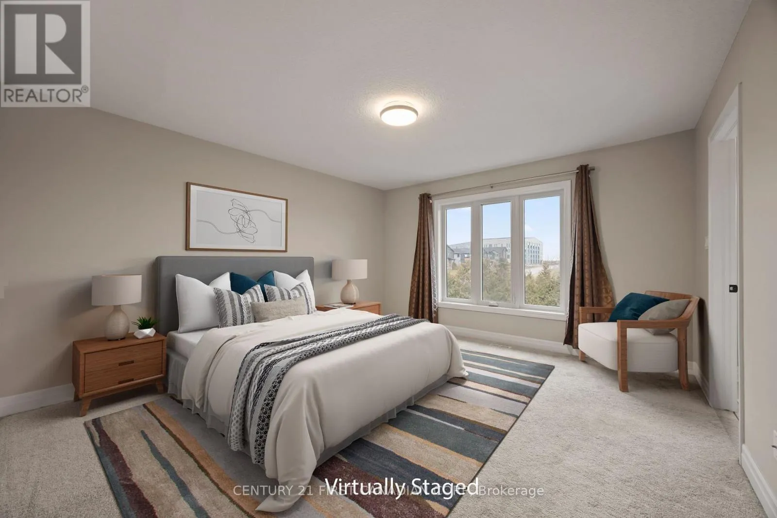Cross Streets: Sunningdale & Adelaide. ** Directions: North on Sunningdale From Adelaide. Gorgeous red-brick end-unit townhome in sought-after Sunningdale, North London, featuring a finished walkout basement! Built in 2018 by esteemed Westhaven Homes, this property combines timeless style with modern convenience in one of the city's most desirable neighbourhoods. Step into the expansive foyer, complete with ample storage and soaring ceilings, conveniently paired with a two-piece bathroom. The main level is flooded with natural light and showcases beautiful engineered hardwood flooring throughout. The open-concept design allows each space to flow effortlessly. The kitchen features stainless steel appliances, premium quartz countertops, a contemporary backsplash, and a large island with seating for four. The dining area includes an oversized picture window, while the comfortable and spacious living room is anchored by a striking natural gas fireplace with ceramic tile surround, upgraded bump-out, and custom built-in shelving and storage. Massive sliding doors with transom windows lead to the private deck with BBQ gas hook up and one of the largest green spaces in the community-surrounded by trees and natural greenery.The upper level offers three bedrooms, including a generous primary retreat with a walk-in closet and a spa-like 5-piece ensuite featuring a soaker tub, glass shower, and double sinks. A modern 4-piece main bathroom and convenient upper-level laundry complete this floor. The fully finished walkout basement provides a versatile additional living area-perfect for movie nights, a playroom, home office, or guest space-with direct access to lush green surroundings and a second outdoor living area. An attached garage with inside entry adds to the convenience. These striking units offer tremendous value in a premium North London location close to Stoney Creek YMCA, top notch schools, grocery stores, pharmacies & more. Don't miss this incredible opportunity! Floor Plans Available. (id:27476)