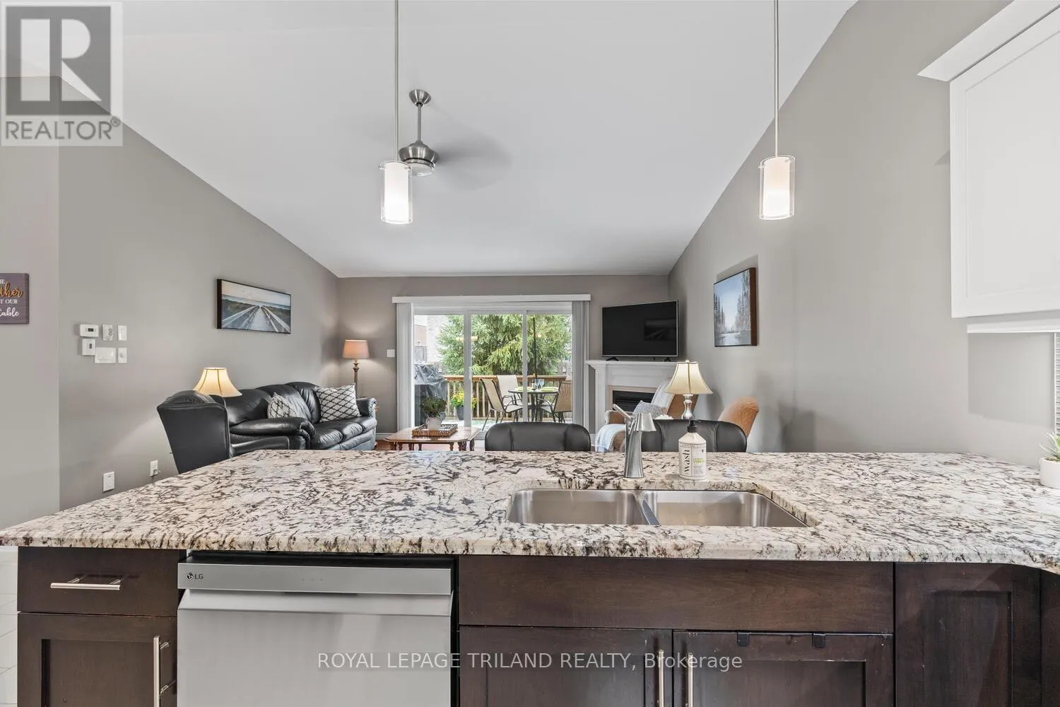 Cross Streets: Highbury Ave N. ** Directions: From Highbury Ave N, head east on Killarney Rd to the roundabout, and exit right into complex. Once in complex take first left, and follow road to unit on left. Visitor parking is to the right. Welcome to this exceptional one-floor condo with attached 2-car garage in the peaceful, exclusive community of River Trail. Located in northeast London, enjoy nature and walking trails just steps from your door. Featuring $70,000 in thoughtful upgrades over 2350 sq ft, this 2+1 bedroom, 3-bathroom home has a bright, open-concept main floor with vaulted ceilings. The modern kitchen boasts a breakfast bar, granite countertops, tiled floors, stainless steel appliances, and dining space perfect for entertaining family or friends. The living room features gleaming hardwood floors, a cozy gas fireplace, and sliding doors leading to a private deck great for morning coffee or afternoon reading. The main floor includes a spacious primary bedroom with large custom double closets and full ensuite. A second bedroom, full bathroom, and convenient main-floor laundry complete this level, offering easy accessibility. The fully finished lower level is bright and welcoming with large windows, a gas fireplace in the family room, a spacious third bedroom, another full bathroom, and a large utility room with ample storage , including a built-in wine rack. Step outside to enjoy your beautiful front patio or the privacy of your back deck. Additional features include central vacuum and a double-car garage with custom flooring and inside entry for convenience. MAJOR BONUS: condo fees include landscaping, snow removal, roof, windows & doors, deck, building insurance. This wonderful location offers easy access to the scenic Thames River Trails, Kilally Meadows, and Fanshawe Conservation Area for year-round outdoor enjoyment. A strong sense of community makes River Trail a place people love to call home. These units rarely become available because once you discover this amazing community, you never want to leave! (id:27476)