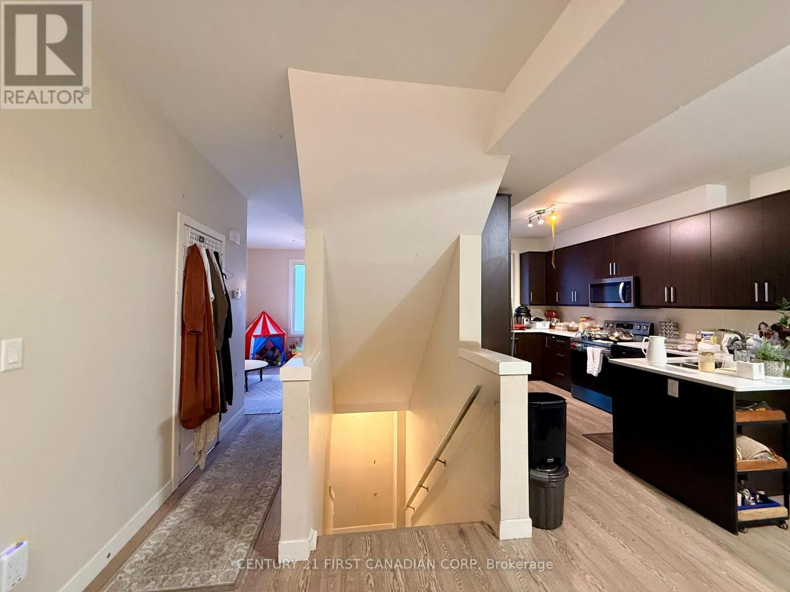 Cross Streets: Battery Pk. ** Directions: OFF SARNIA RD TO W VILLAGE SQUARE, THE FIRST STREET IS BATTERY PARK. Located in London's desirable North West area, this three-story townhouse offers more than just a residence; it provides a cozy sanctuary for refined living. 4 bedrooms & 2.5 bathrooms & 1 Den. The expansive family room seamlessly connects to a kitchen adorned with a quartz island and countertops, creating a welcoming space. Nice size Balcony. The main floor 1 Bedroom and Den are perfect for working from home. Upstairs, find not just 3 bedrooms, but comforting havens. The master bedroom, complete with an ensuite, elevates the living experience, while a upper-floor laundry room adds thoughtful functionality. This Side Unit basking in natural light streaming through oversized windows. Conveniently situated near amenities, UWO, fine dining, Costco, Masonville Mall and the hospital, this townhouse simplifies everyday life. (id:27476)