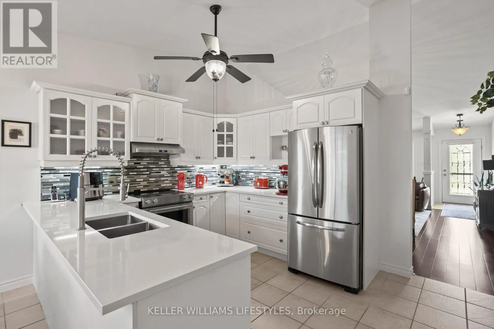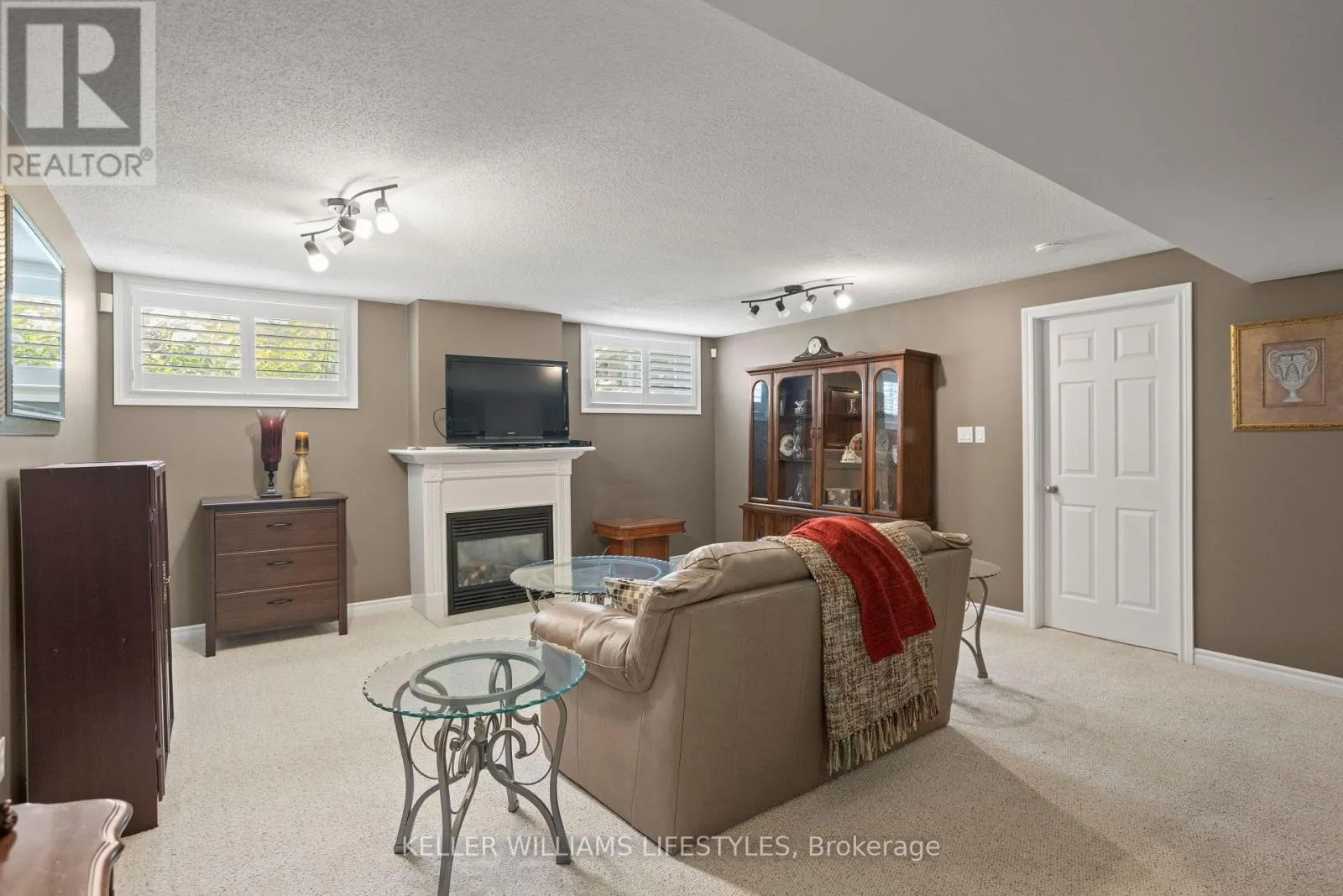 Cross Streets: Whetherfield Street and Beaverbrook Ave. ** Directions: Wonderland Road to Beaverbrook Ave, turn west. Turn left on Whetherfield Street, continue around the curve, turning left into the Condo parking Lot, Oakridge Close. Property is the first home on the right, unit 50. Perfectly located in a sought after northwest London community, this beautifully maintained end-unit condo offers bright, spacious living with low maintenance convenience. Featuring 3 bedrooms and 3 bathrooms, the home showcases vaulted ceilings, California shutters, updated lighting, and durable bamboo flooring throughout the main living areas. The updated kitchen includes quartz countertops, stainless steel appliances, a ceiling fan, and a patio door that leads to your private deck with gas hookup which is perfect for BBQ season. The spacious primary suite offers a walk-in closet and a 4 piece ensuite complete with soaker tub and separate shower. The finished lower level is ideal for relaxing or entertaining with a large rec room featuring a gas fireplace, an additional bedroom with walk-in closet, a 3 piece bath, and ample storage with space for a hobby or fitness area. Enjoy all the benefits of this fantastic community, including a clubhouse with fitness centre and nature trails, plus walking distance to Farm Boy, Costco, and Angelo's. With professional yard care and snow maintenance included, this home delivers comfort, lifestyle, and convenience in one exceptional package. (id:27476)