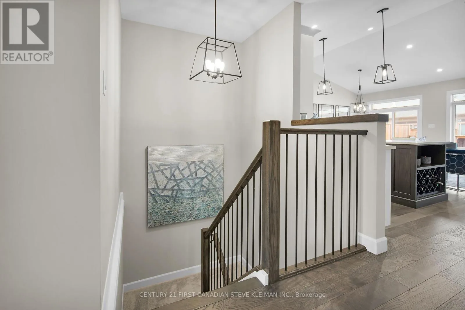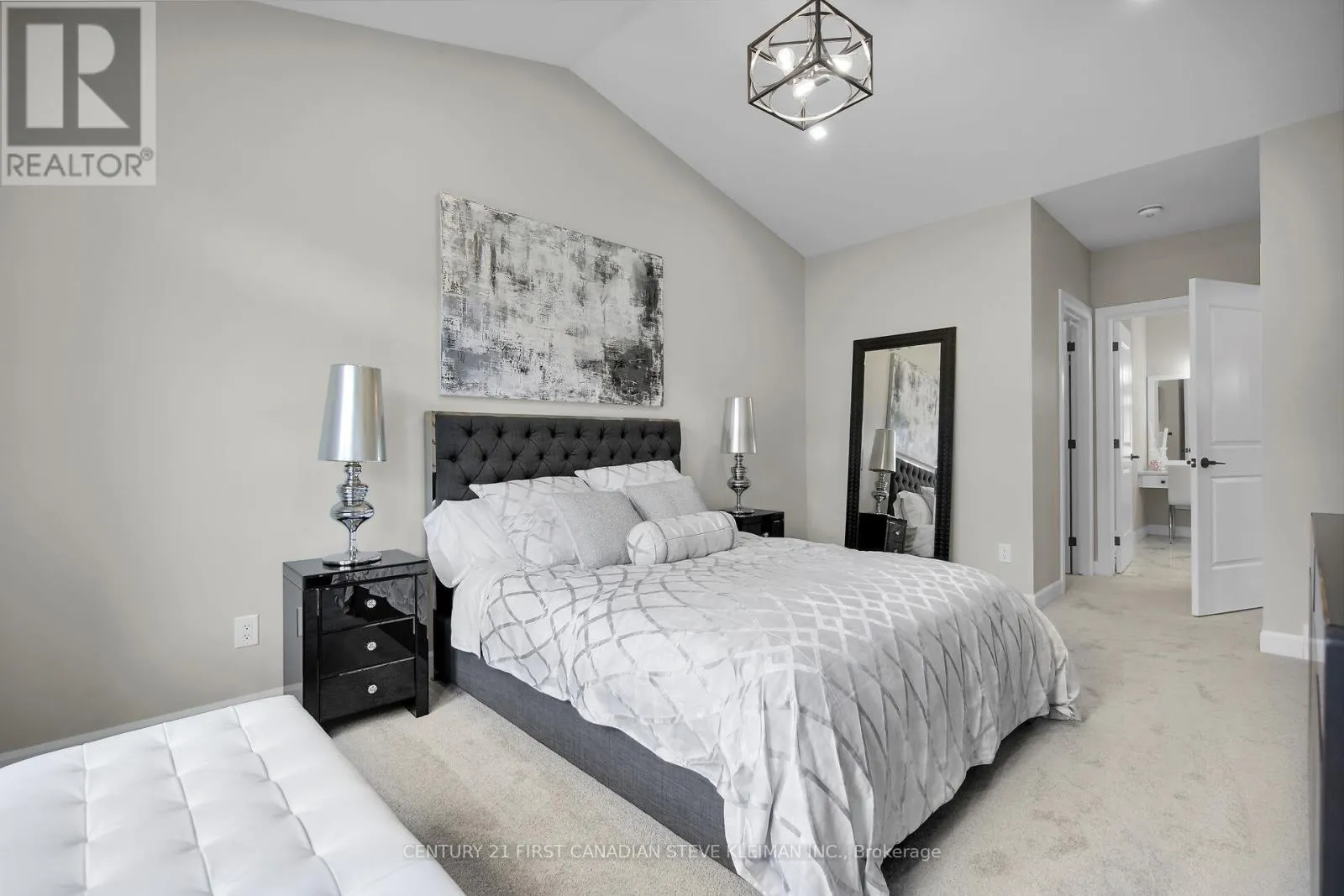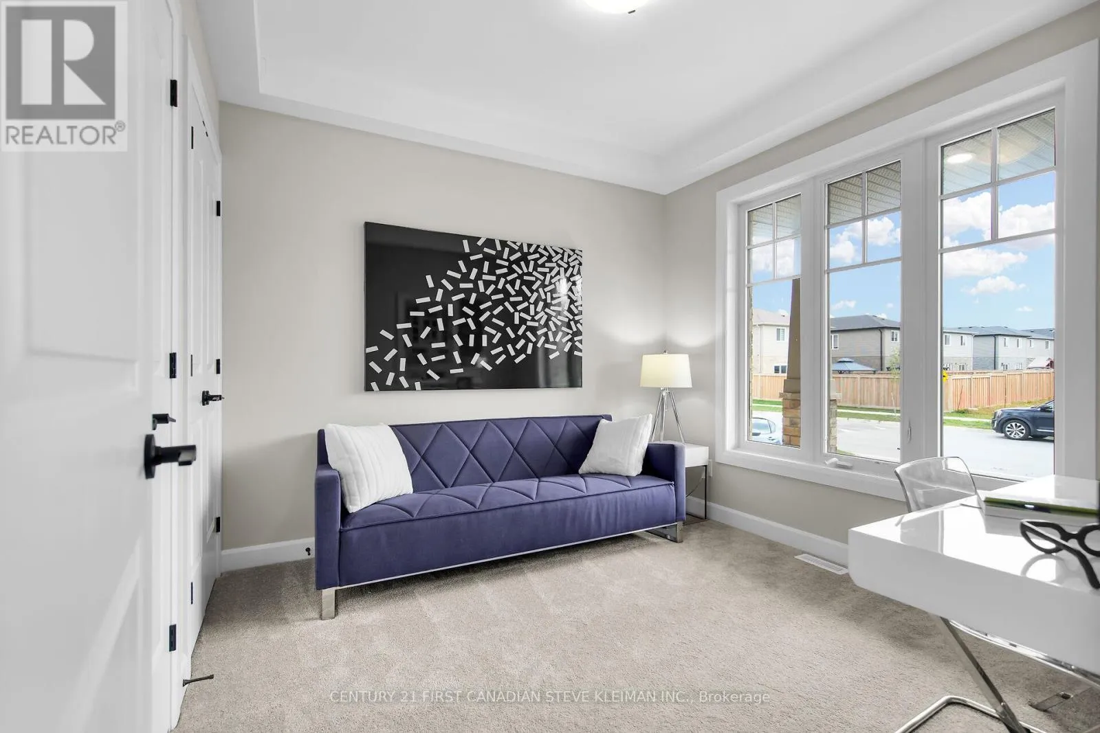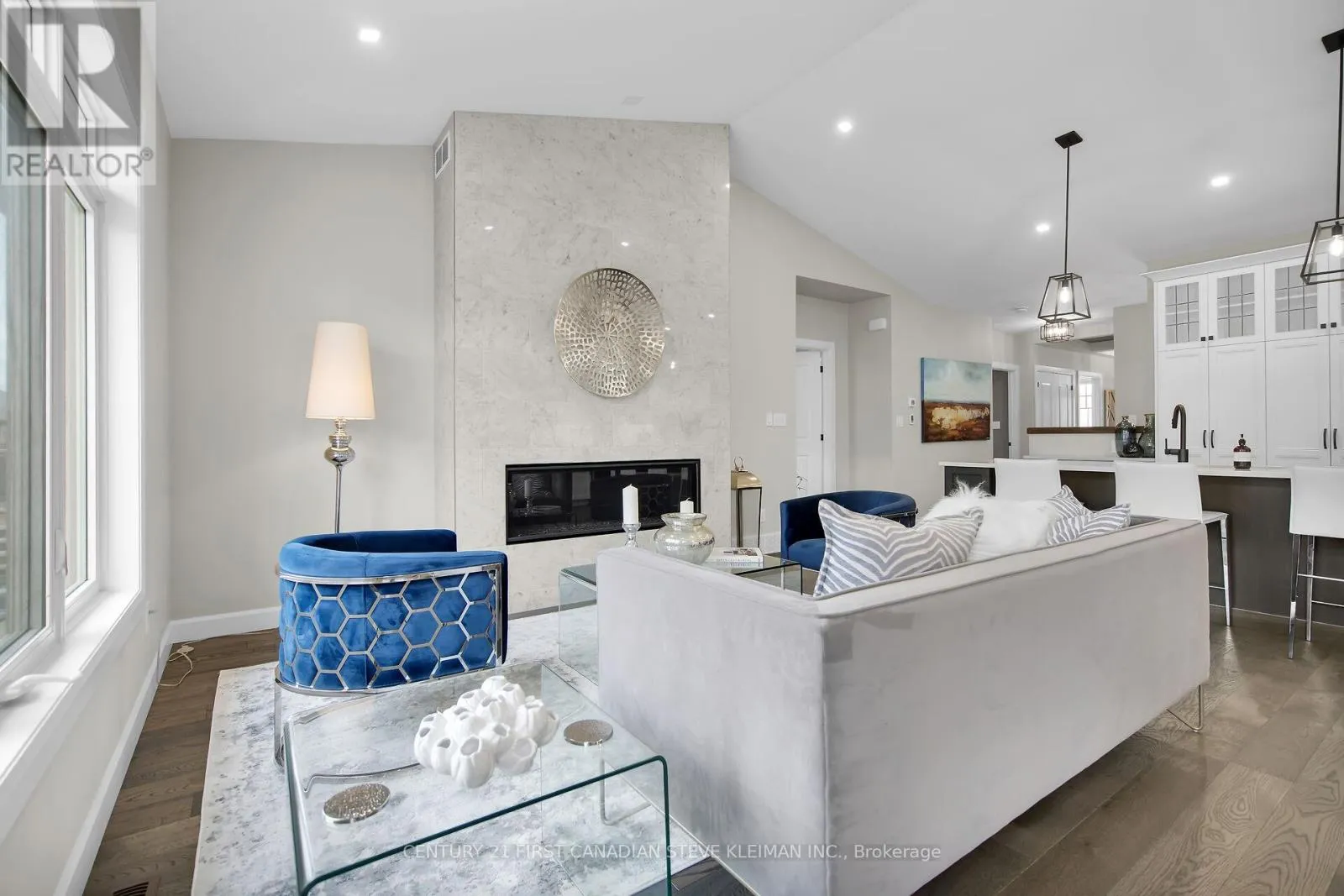 Cross Streets: Fair Oaks. ** Directions: Sunningdale to Fair Oaks to Buroak Drive. THIS COMPLETELY LOADED MODEL HOME IS NOW FOR SALE AT FOX COURT! Only one lucky buyer will own the showcase home with all the bells and whistles. Welcome to FOX COURT, a community of new builds by AUBURN HOMES. This open-concept and highly sought-after Sheffield floor plan features 2,222 sq. ft. of finished living space, including 1,407 sq. ft. on the main floor, designed with premium finishes throughout. The entertainer's chef's kitchen offers a large breakfast-bar island overlooking the great room and dining area, highlighted by a vaulted ceiling and sleek linear gas fireplace with floor to ceiling tile surround. The primary bedroom includes a large walk-in closet and a beautifully appointed 3-pc ensuite with makeup vanity. A versatile second bedroom or den provides double closets. You'll love the convenience of main-floor laundry and the additional 4-pc bathroom. Quartz countertops featured in the kitchen and all bathrooms. The finished basement adds even more space with a third bedroom, recreation room with second fireplace, and a 3-pc bathroom, plus plenty of storage. Enjoy outdoor living with a lovely covered front porch and a private back deck off the dining room - perfect for coffee, grilling, or entertaining. Come see the tens of thousands of dollars in custom upgrades that Auburn Homes put into this designer model to showcase the entire community. And the best part - never water, cut the grass, or shovel snow again! Care-free living with a warm sense of community. (id:27476)