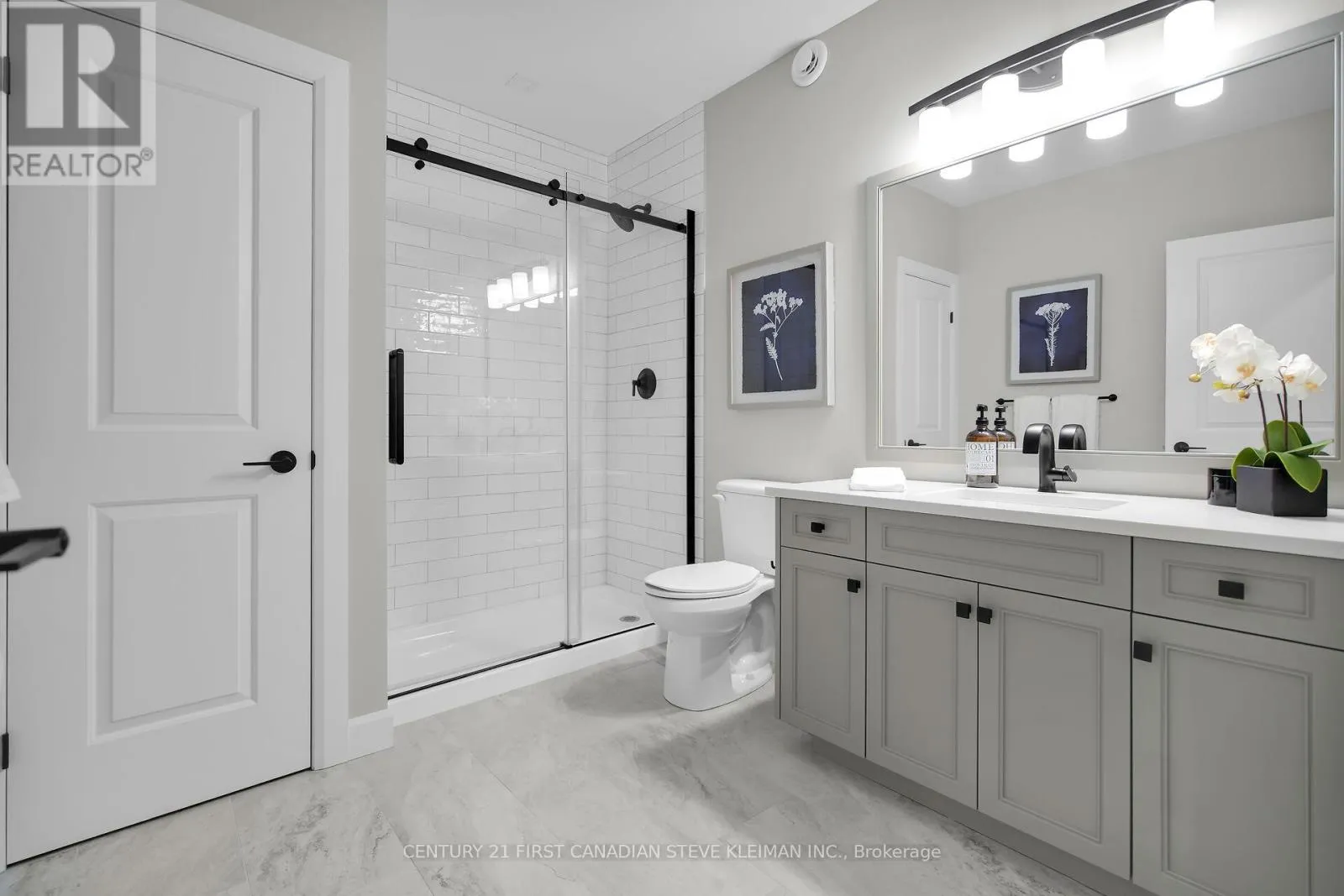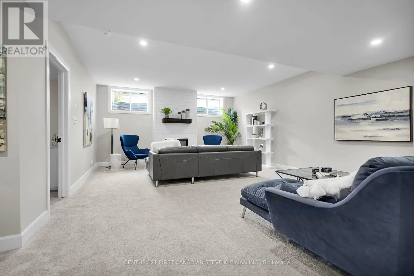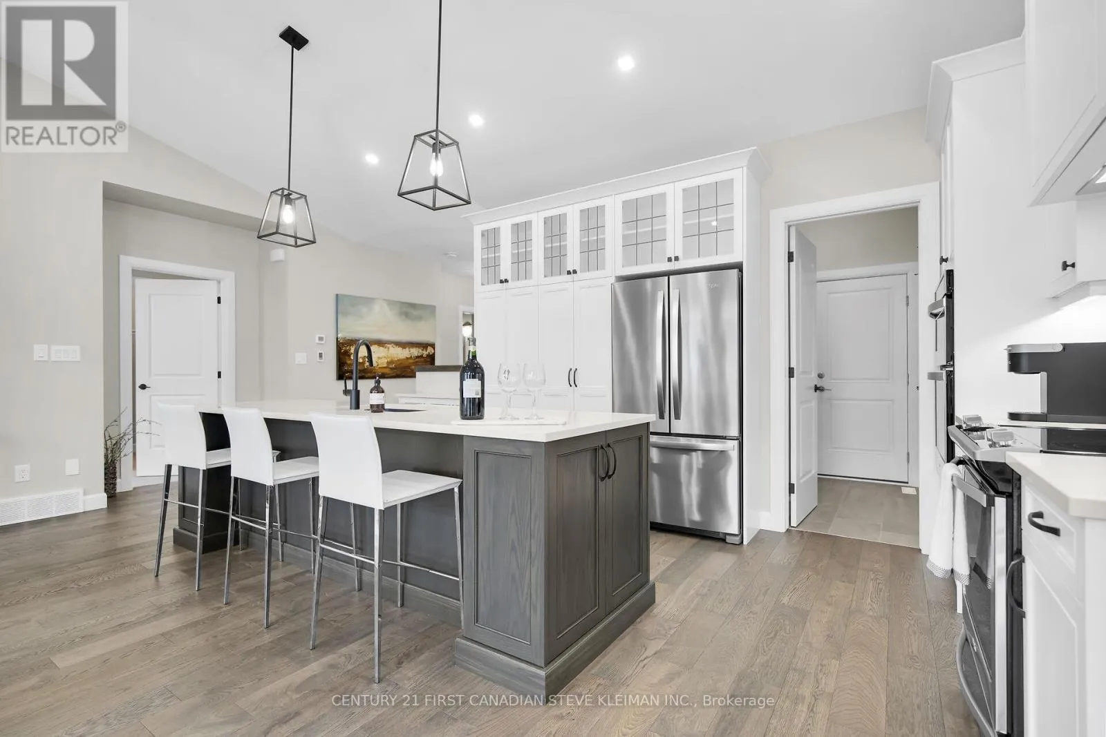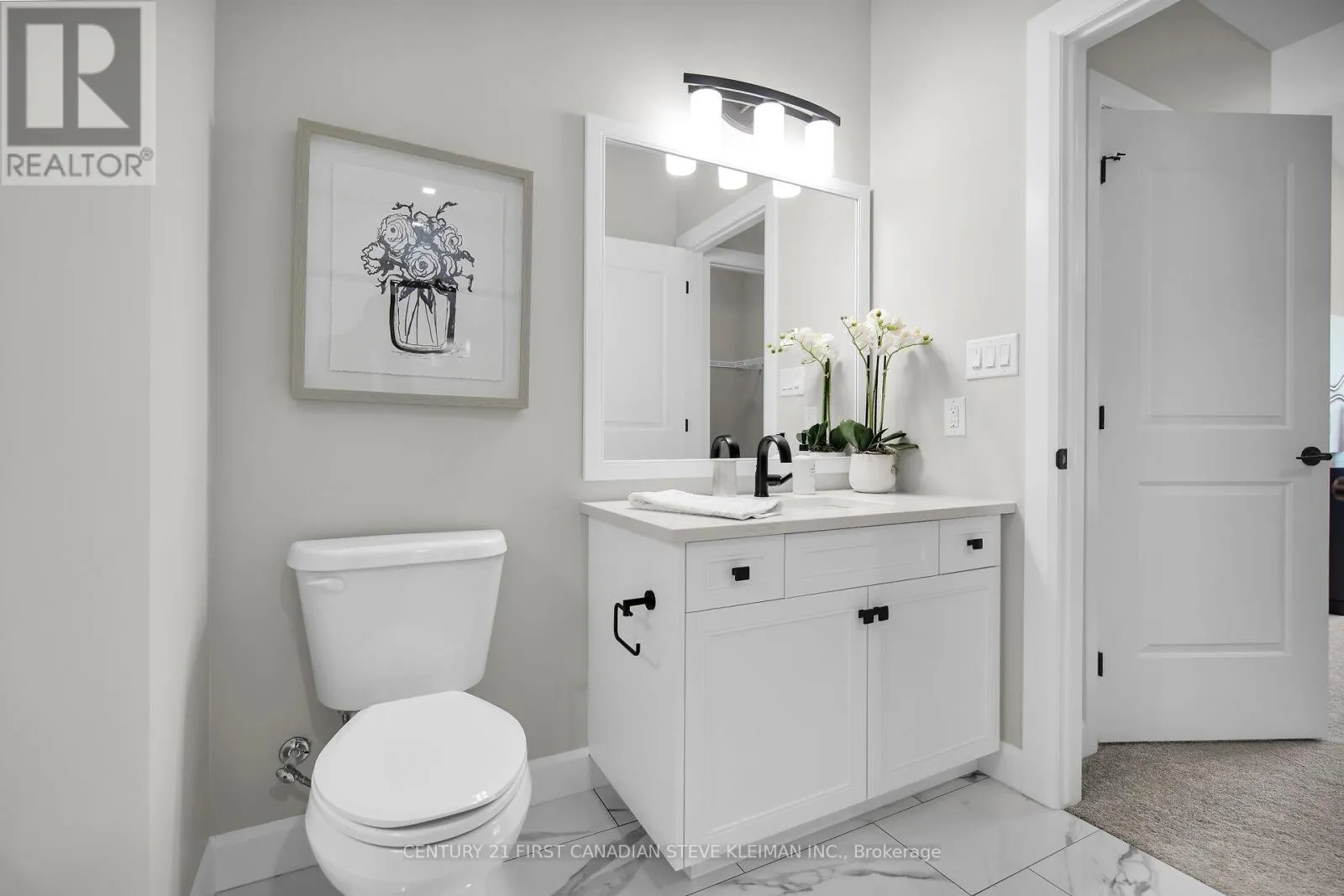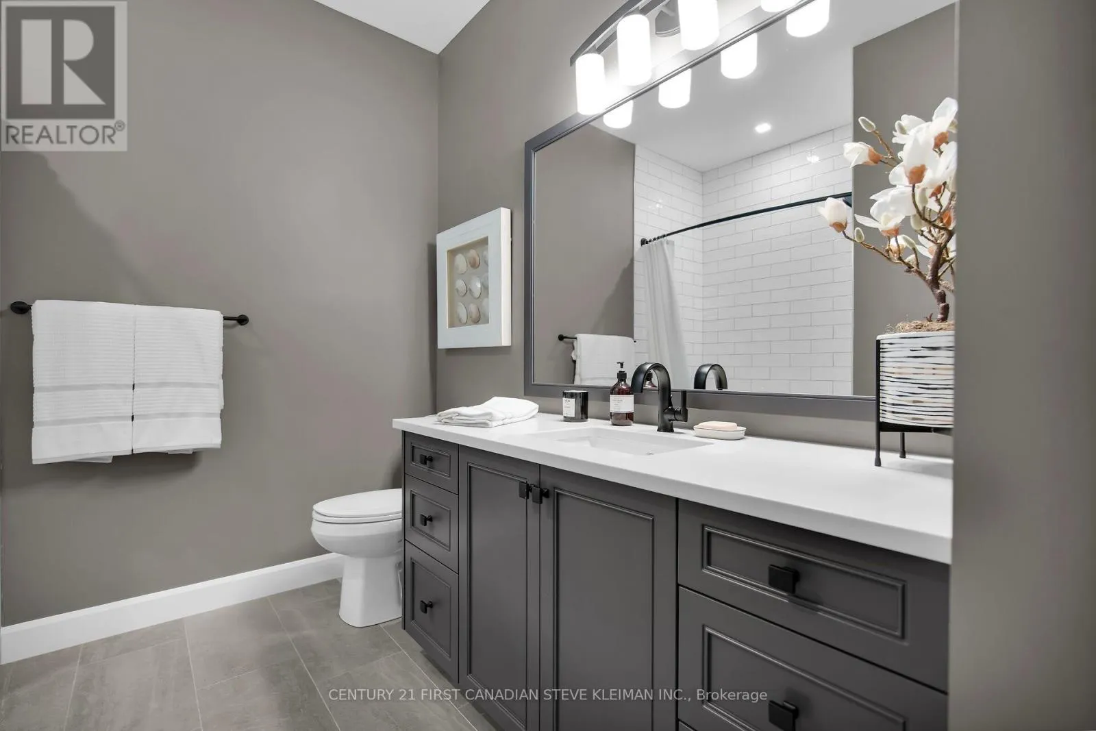 Cross Streets: Fair Oaks. ** Directions: Sunningdale to Fair Oaks to Buroak Drive. THIS COMPLETELY LOADED MODEL HOME IS NOW FOR SALE AT FOX COURT! Only one lucky buyer will own the showcase home with all the bells and whistles. Welcome to FOX COURT, a community of new builds by AUBURN HOMES. This open-concept and highly sought-after Sheffield floor plan features 2,222 sq. ft. of finished living space, including 1,407 sq. ft. on the main floor, designed with premium finishes throughout. The entertainer's chef's kitchen offers a large breakfast-bar island overlooking the great room and dining area, highlighted by a vaulted ceiling and sleek linear gas fireplace with floor to ceiling tile surround. The primary bedroom includes a large walk-in closet and a beautifully appointed 3-pc ensuite with makeup vanity. A versatile second bedroom or den provides double closets. You'll love the convenience of main-floor laundry and the additional 4-pc bathroom. Quartz countertops featured in the kitchen and all bathrooms. The finished basement adds even more space with a third bedroom, recreation room with second fireplace, and a 3-pc bathroom, plus plenty of storage. Enjoy outdoor living with a lovely covered front porch and a private back deck off the dining room - perfect for coffee, grilling, or entertaining. Come see the tens of thousands of dollars in custom upgrades that Auburn Homes put into this designer model to showcase the entire community. And the best part - never water, cut the grass, or shovel snow again! Care-free living with a warm sense of community. (id:27476)