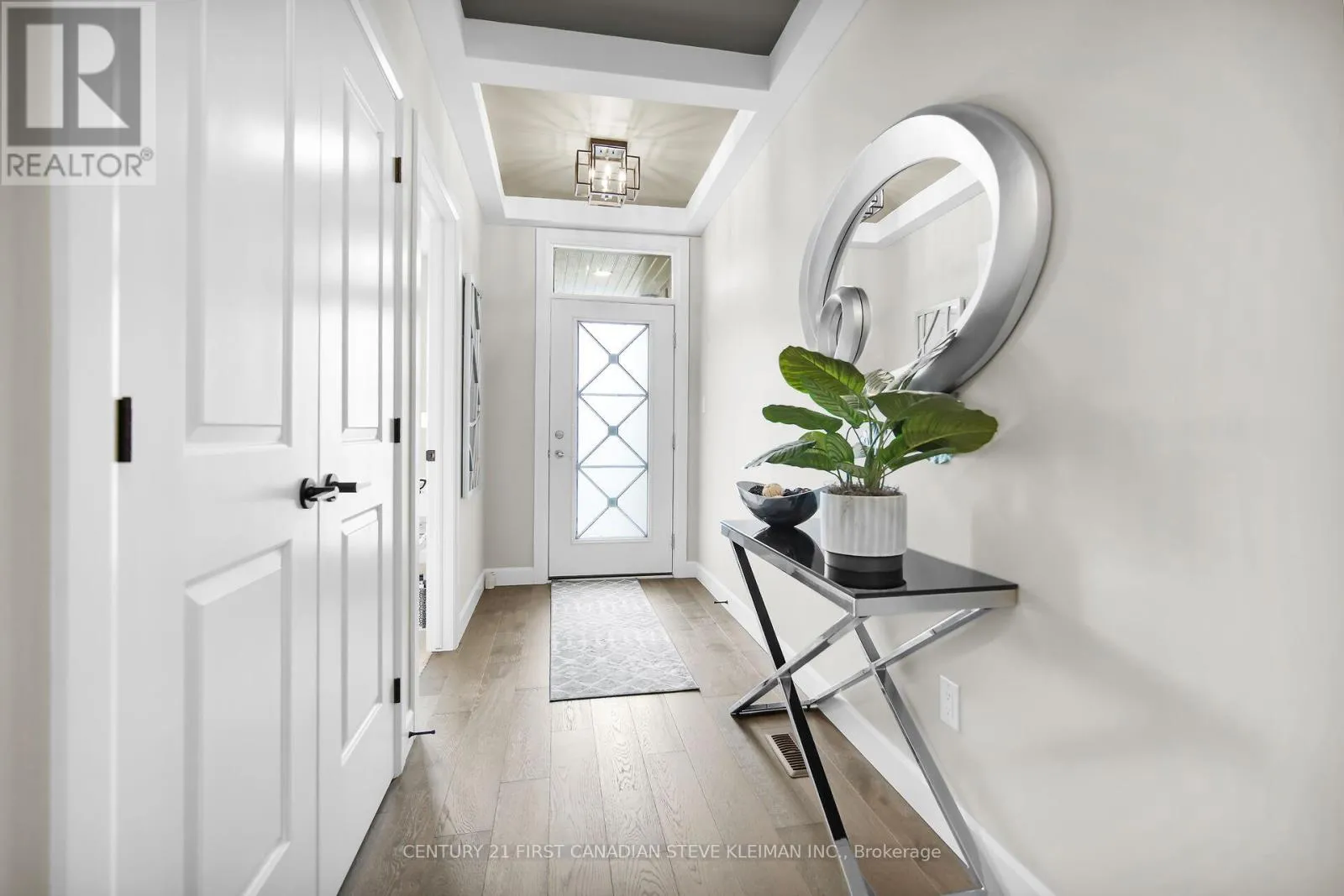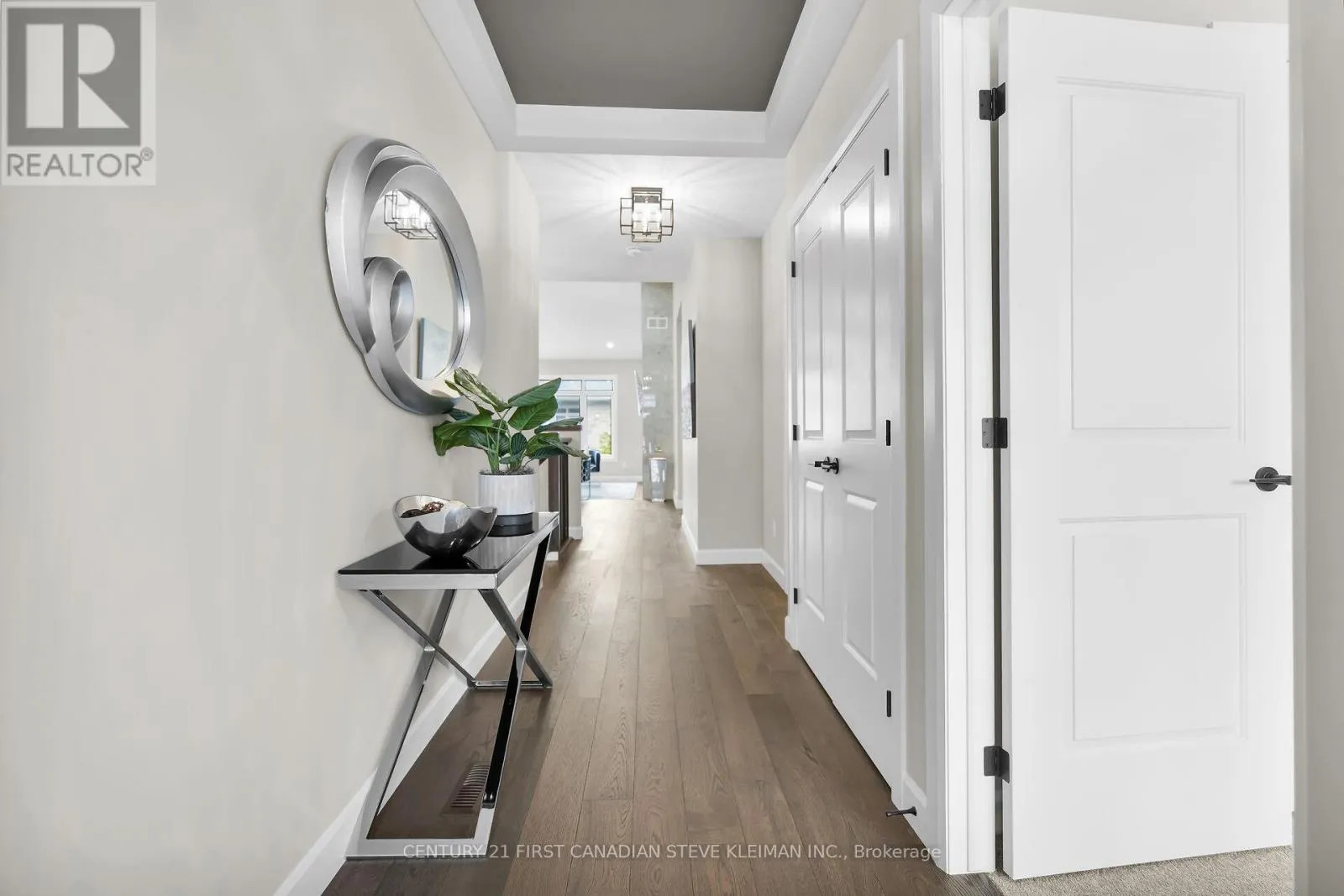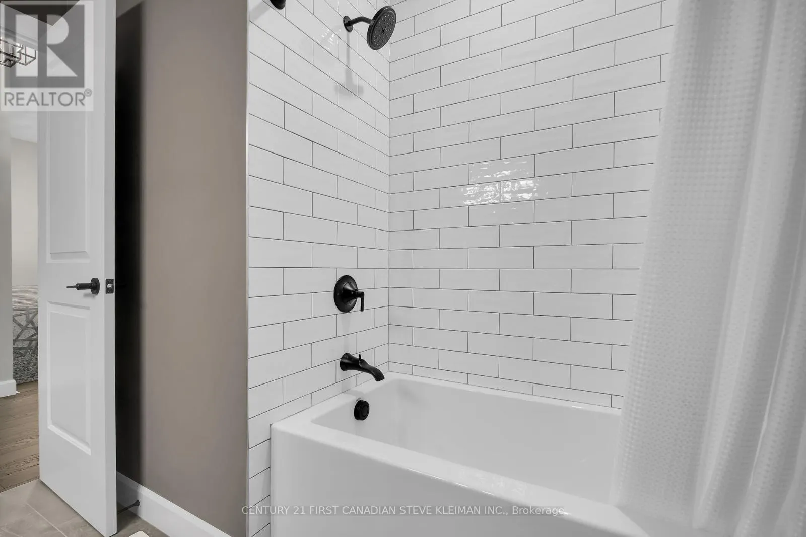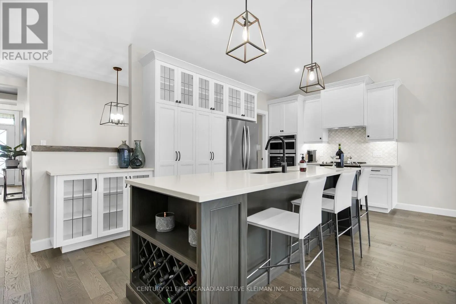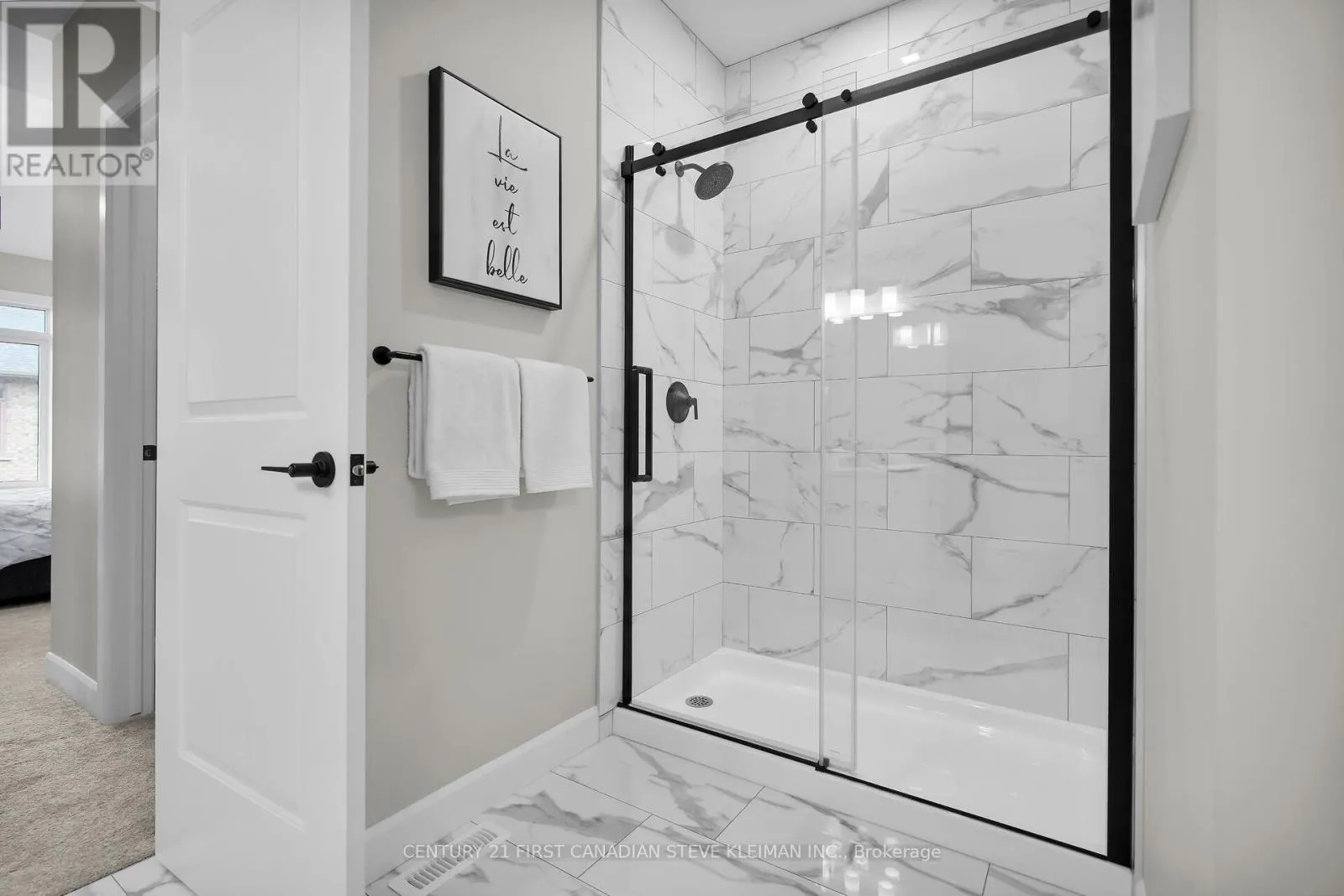 Cross Streets: Fair Oaks. ** Directions: Sunningdale to Fair Oaks to Buroak Drive. THIS COMPLETELY LOADED MODEL HOME IS NOW FOR SALE AT FOX COURT! Only one lucky buyer will own the showcase home with all the bells and whistles. Welcome to FOX COURT, a community of new builds by AUBURN HOMES. This open-concept and highly sought-after Sheffield floor plan features 2,222 sq. ft. of finished living space, including 1,407 sq. ft. on the main floor, designed with premium finishes throughout. The entertainer's chef's kitchen offers a large breakfast-bar island overlooking the great room and dining area, highlighted by a vaulted ceiling and sleek linear gas fireplace with floor to ceiling tile surround. The primary bedroom includes a large walk-in closet and a beautifully appointed 3-pc ensuite with makeup vanity. A versatile second bedroom or den provides double closets. You'll love the convenience of main-floor laundry and the additional 4-pc bathroom. Quartz countertops featured in the kitchen and all bathrooms. The finished basement adds even more space with a third bedroom, recreation room with second fireplace, and a 3-pc bathroom, plus plenty of storage. Enjoy outdoor living with a lovely covered front porch and a private back deck off the dining room - perfect for coffee, grilling, or entertaining. Come see the tens of thousands of dollars in custom upgrades that Auburn Homes put into this designer model to showcase the entire community. And the best part - never water, cut the grass, or shovel snow again! Care-free living with a warm sense of community. (id:27476)