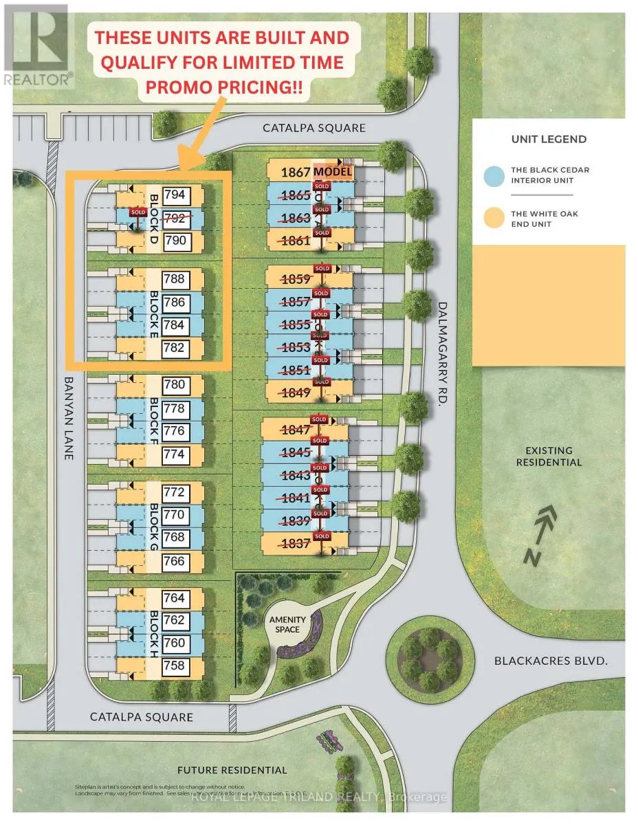 Cross Streets: Dalmagarry Raod. ** Directions: Banyan Lane & Dalmagarry Road. Take advantage of reduced BUILDER PROMO pricing on this ready to finish UNIT! This home is at drywall stage, and it is ready for you to pick your interior selections! Closing can be 60-90 days on this unit!! Werrington Homes is excited to announce the launch of their newest project The North Woods in the desirable Hyde Park community of Northwest London. The project consists of 45 two-storey contemporary townhomes priced from $589,900. With the modern family & purchaser in mind, the builder has created 3 thoughtfully designed floorplans. The end units known as "The White Oak", PROMO PRICED from $599,900 offers 1686 sq ft above grade, 3 bedrooms, 2.5 bathrooms & a single car garage. The interior units known as "The Black Cedar" offers 1628 sq ft above grade with 2 bed ($589,900) or 3 bed ($589,900) configurations, 2.5 bathrooms & a single car garage. The basements have the option of being finished by the builder to include an additional BEDROOM, REC ROOM & FULL BATH! As standard, each home will be built with brick, hardboard and vinyl exteriors, 9 ft ceilings on the main, luxury vinyl plank flooring, quartz counters, second floor laundry, paver stone drive and walkways, ample pot lights, tremendous storage space & a 4-piece master ensuite complete with tile & glass shower & double sinks! The North Woods location is second to none with so many amenities all within walking distance! Great restaurants, smart centres, walking trails, mins from Western University & directly on transit routes! Low monthly fee ($100 approx.) to cover common elements of the development (green space, snow removal on the private road, etc). Photos shown are of 790 Banyan Lane which is finished to builders standard finishes and also ready for immediate closing! BONUS!! 6 piece Whirlpool appliance package included with each purchase!! (id:27476)