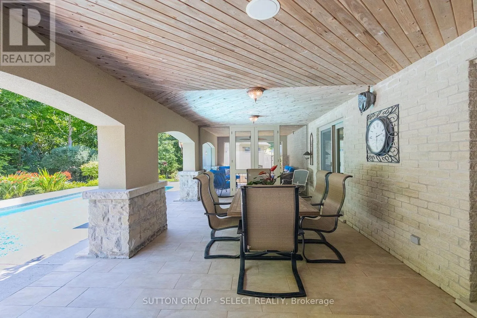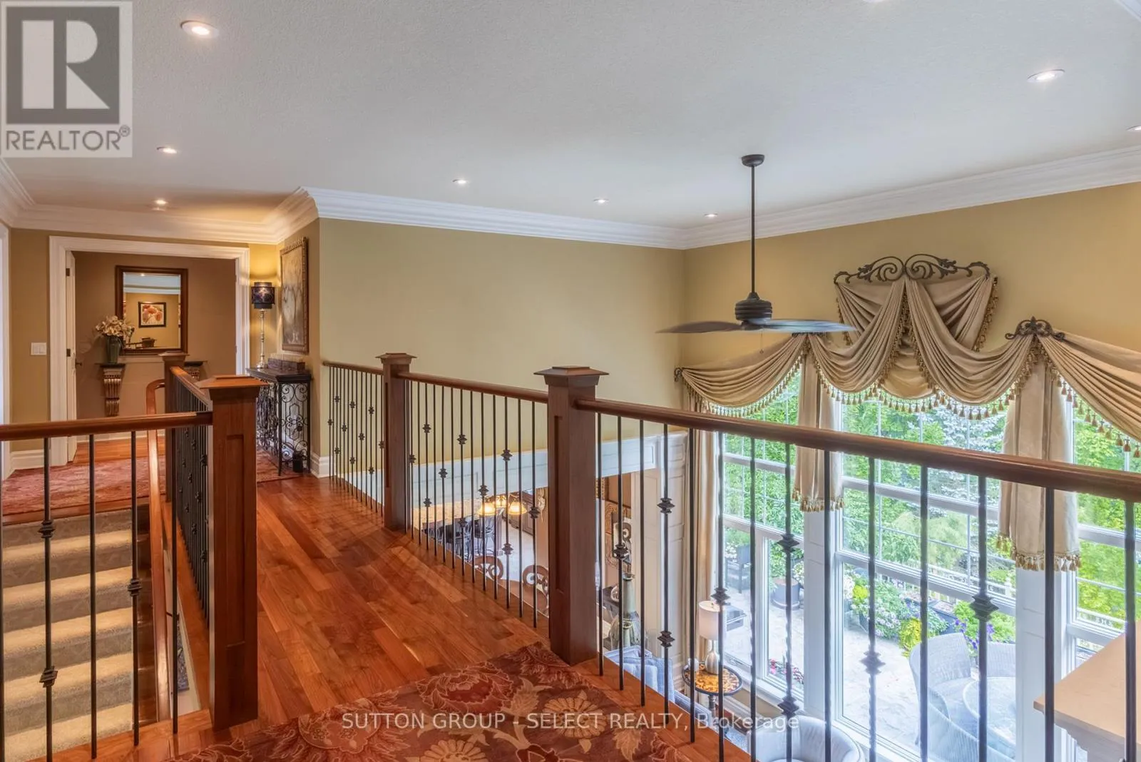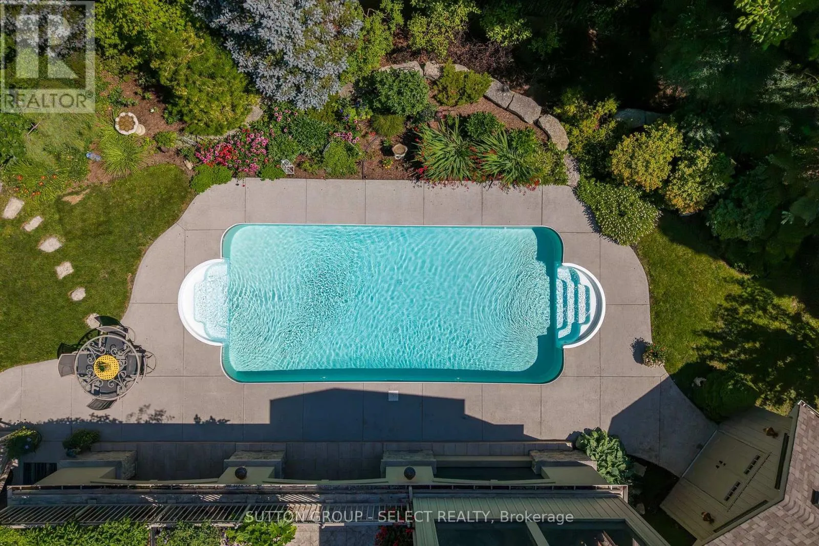 Cross Streets: Eagletrace Drive. ** Directions: Head north on Wonderland Road, turn right on Eagletrace Drive. Turn right into Eagletrade Drive cul-de-sac and property is at top of cul-de-sac. This 6,067 total sq. ft. European-inspired residence, thoughtfully designed by The Barnswallow Company, embodies timeless appeal, enduring craftsmanship, artistry, and refinement. Positioned at the top of Eagletrace Drive's prestigious cul-de-sac, this property enjoys the rare privilege of backing on Medway Valley Heritage Forest & ravine. The striking stone, stucco, and brick facade is complimented by a forecourt with manicured lush gardens and a sculptural water feature. The grounds unfold into a resort-style retreat with an in-ground saltwater pool, screened veranda, walkout partially screened loggia, raised terrace, serene waterfall, thriving pond, and an armour stone fire retreat, making this an extraordinary property to host. Inside, the main level exudes grandeur & warmth. The two-story great room is embellished with a cast stone gas fireplace, walnut hardwood floors, and expansive Andersen windows showcasing beautiful tree canopy views. Flow seamlessly into the expansive European-inspired kitchen, discovering embellished millwork, Cherry cabinetry, Sub-Zero fridge, Wolf, Bosch, and KitchenAid appliances, butlers pantry, kitchen pantry, breakfast nook, and a furniture style 7.4' Delicatus granite island. A formal dining room, sun-filled study, and family room with wet bar elevate the living experience. The upper level is crowned by an indulgent primary retreat - a serene, romantic sanctuary with sweeping treetop views, a lavish 6-piece ensuite with limestone, bidet & water closet, and a custom oversized dressing room with jewelry cabinetry. Three junior suites with custom closets, two with a shared 4-piece Jack & Jill, provide privacy & comfort. The lower level walkout was thoughtfully designed to bring together leisure and wellness with a recreation lounge, wet bar, sound-isolated music room, home gym with integrated sauna, craft/creative room & a thoughtfully designed in-law suite with kitchenette. Recent upgrades: Roof, furnace, AC, hot water tank-2023. (id:27476)