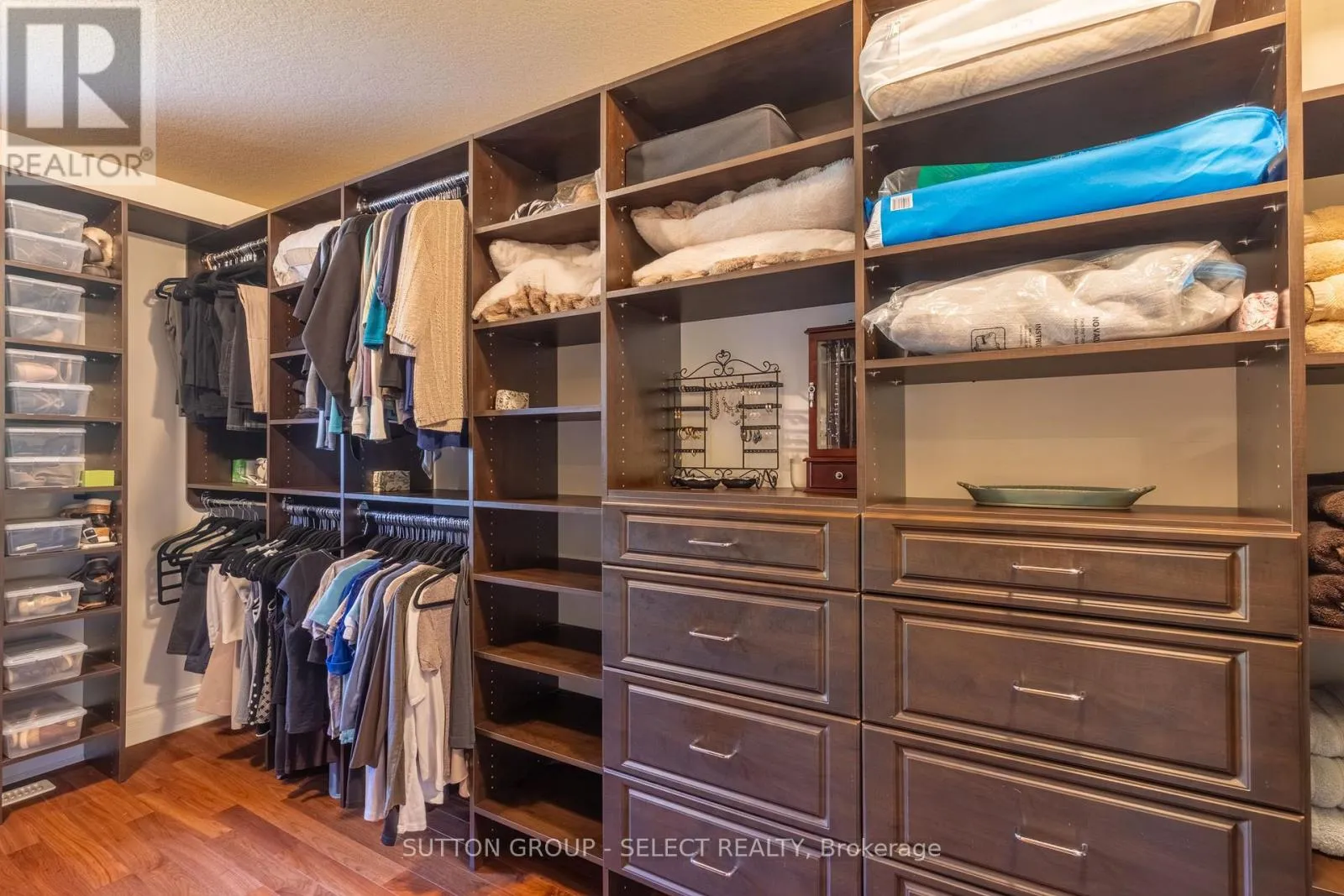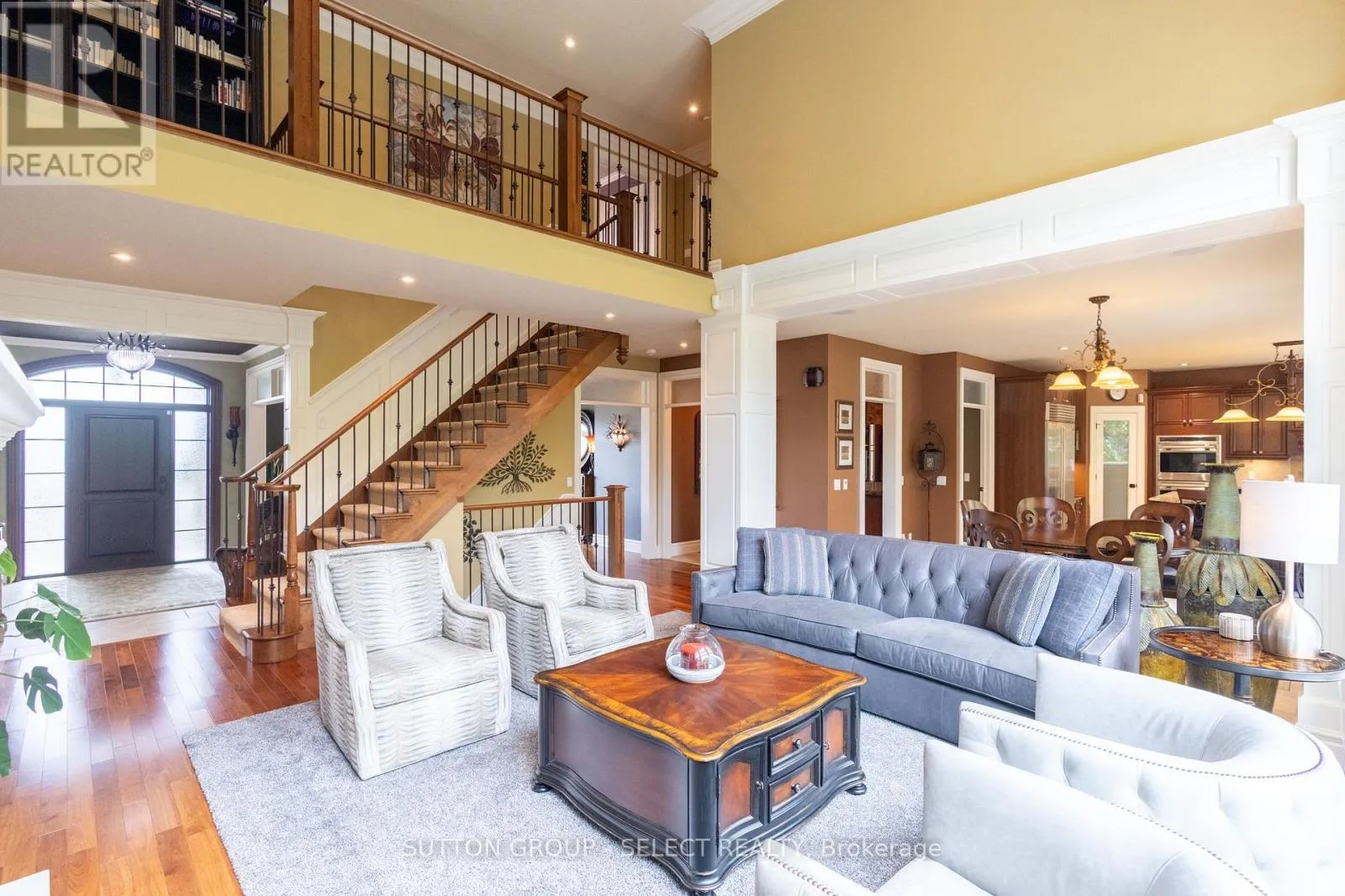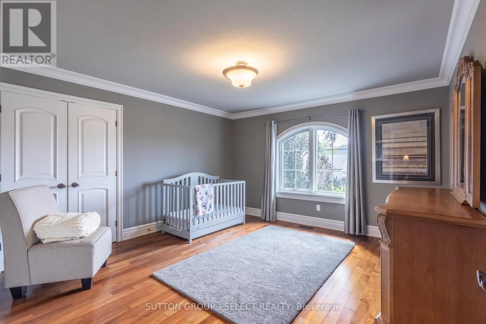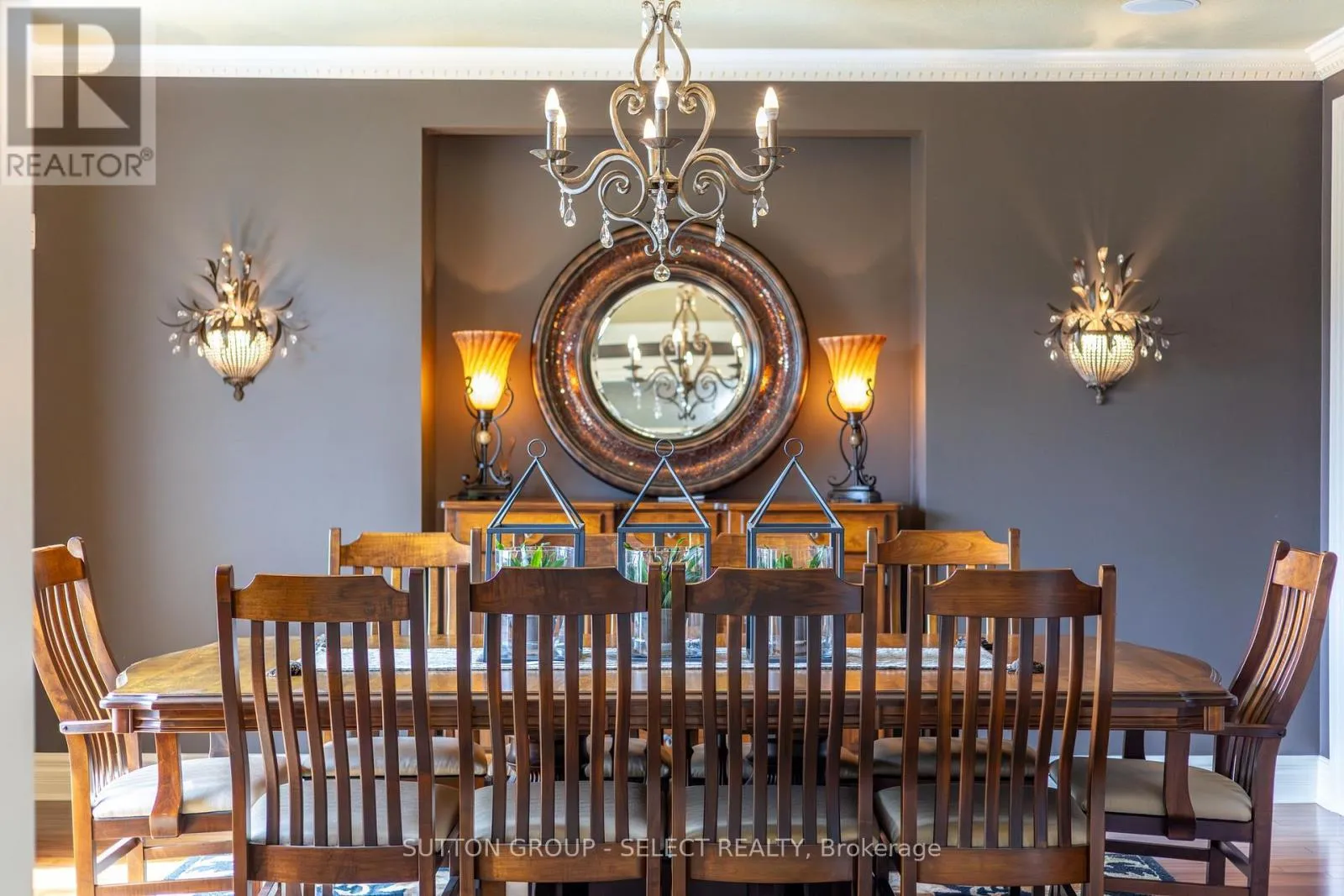 Cross Streets: Eagletrace Drive. ** Directions: Head north on Wonderland Road, turn right on Eagletrace Drive. Turn right into Eagletrade Drive cul-de-sac and property is at top of cul-de-sac. This 6,067 total sq. ft. European-inspired residence, thoughtfully designed by The Barnswallow Company, embodies timeless appeal, enduring craftsmanship, artistry, and refinement. Positioned at the top of Eagletrace Drive's prestigious cul-de-sac, this property enjoys the rare privilege of backing on Medway Valley Heritage Forest & ravine. The striking stone, stucco, and brick facade is complimented by a forecourt with manicured lush gardens and a sculptural water feature. The grounds unfold into a resort-style retreat with an in-ground saltwater pool, screened veranda, walkout partially screened loggia, raised terrace, serene waterfall, thriving pond, and an armour stone fire retreat, making this an extraordinary property to host. Inside, the main level exudes grandeur & warmth. The two-story great room is embellished with a cast stone gas fireplace, walnut hardwood floors, and expansive Andersen windows showcasing beautiful tree canopy views. Flow seamlessly into the expansive European-inspired kitchen, discovering embellished millwork, Cherry cabinetry, Sub-Zero fridge, Wolf, Bosch, and KitchenAid appliances, butlers pantry, kitchen pantry, breakfast nook, and a furniture style 7.4' Delicatus granite island. A formal dining room, sun-filled study, and family room with wet bar elevate the living experience. The upper level is crowned by an indulgent primary retreat - a serene, romantic sanctuary with sweeping treetop views, a lavish 6-piece ensuite with limestone, bidet & water closet, and a custom oversized dressing room with jewelry cabinetry. Three junior suites with custom closets, two with a shared 4-piece Jack & Jill, provide privacy & comfort. The lower level walkout was thoughtfully designed to bring together leisure and wellness with a recreation lounge, wet bar, sound-isolated music room, home gym with integrated sauna, craft/creative room & a thoughtfully designed in-law suite with kitchenette. Recent upgrades: Roof, furnace, AC, hot water tank-2023. (id:27476)