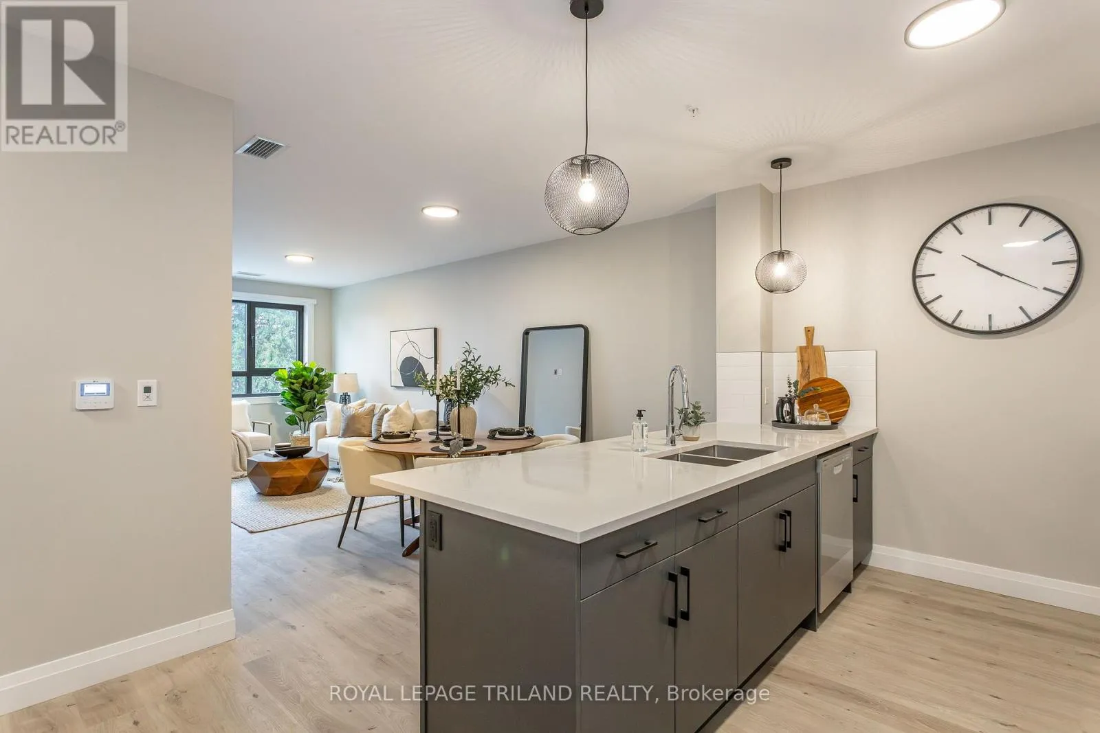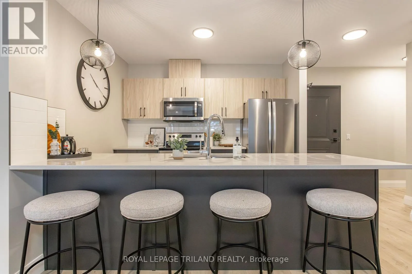 FANSHAWE PARK RD. E / HIGHBURY AVE. N. Now Leasing at StaxLyfe! Discover modern bachelor living in North London's highly sought-after StaxLyfe community. These stylish 622 sq. ft. bachelor suites are thoughtfully designed and feature private balconies, air conditioning, in-suite laundry, stainless steel appliances, quartz countertops, and durable vinyl plank flooring-perfect for contemporary, low-maintenance living. Residents enjoy access to outstanding building amenities, including a fully equipped fitness room, social lounge, bicycle storage, secure controlled entry, and elevators. This 6-storey,smoke-free, wheelchair-accessible building offers both comfort and peace of mind. Ideally located within walking distance to Food Basics, Starbucks, Dollarama, parks, schools, and public transit-everything you need is right outside your door. Don't miss the opportunity to call StaxLyfe home-where modern design meets everyday convenience. This price reflects an incentive for a year. (id:27476)
