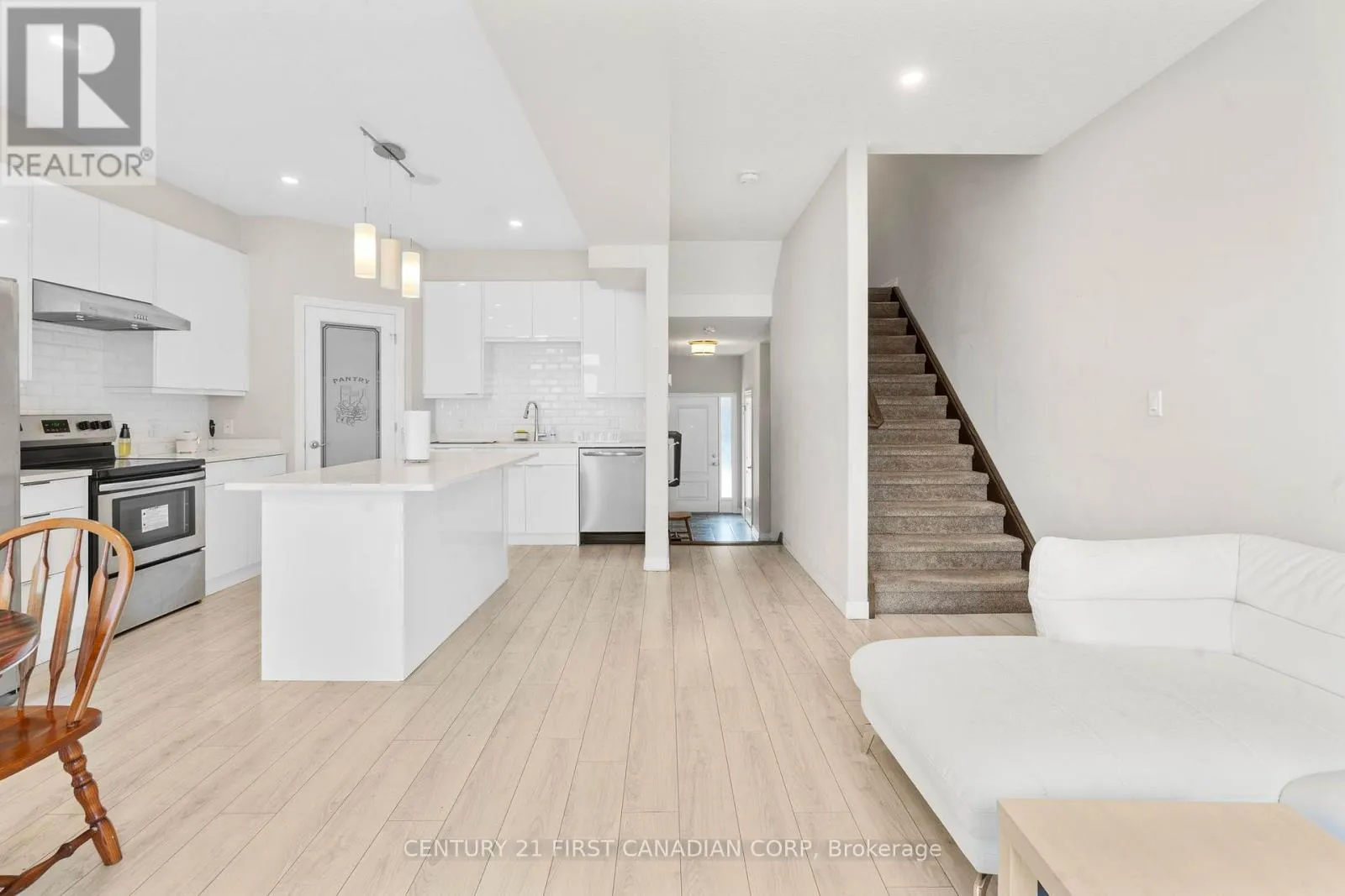 Cross Streets: Beaverbrook Road. ** Directions: Sarnia & Beaverbrook. Don't miss out on this rare opportunity to own a 4-Bedroom Freehold Townhouse in the highly sought-after Hyde Park neighborhood of North West London Ideally located just steps away from all the conveniences you could ask for Western University, Hyde Park Shopping Centre, Costco, Walmart, schools, downtown, and public transit. This spacious townhouse boasts an open-concept main floor with soaring high ceilings, a gourmet kitchen featuring oversized cabinets, a large pantry, premium appliances, a quartz island, and sleek ceramic tiles. Pot lights throughout add a modern touch, making the space feel even more inviting. Upstairs, you'll find four generously-sized bedrooms, each with ample closet space. The home also includes modern smart home features, like a built-in Bluetooth speaker system seamless connectivity with Ethernet and Internet throughout. Step outside to your private deck perfect for relaxing or entertaining in style. This townhouse combines comfort, convenience, and smart technology, making it the ideal home for today's modern lifestyle! (id:27476)