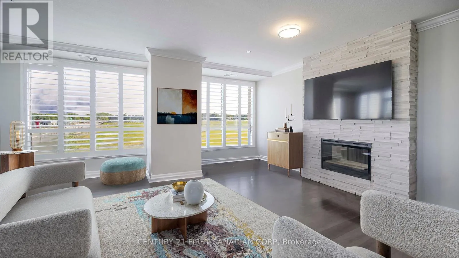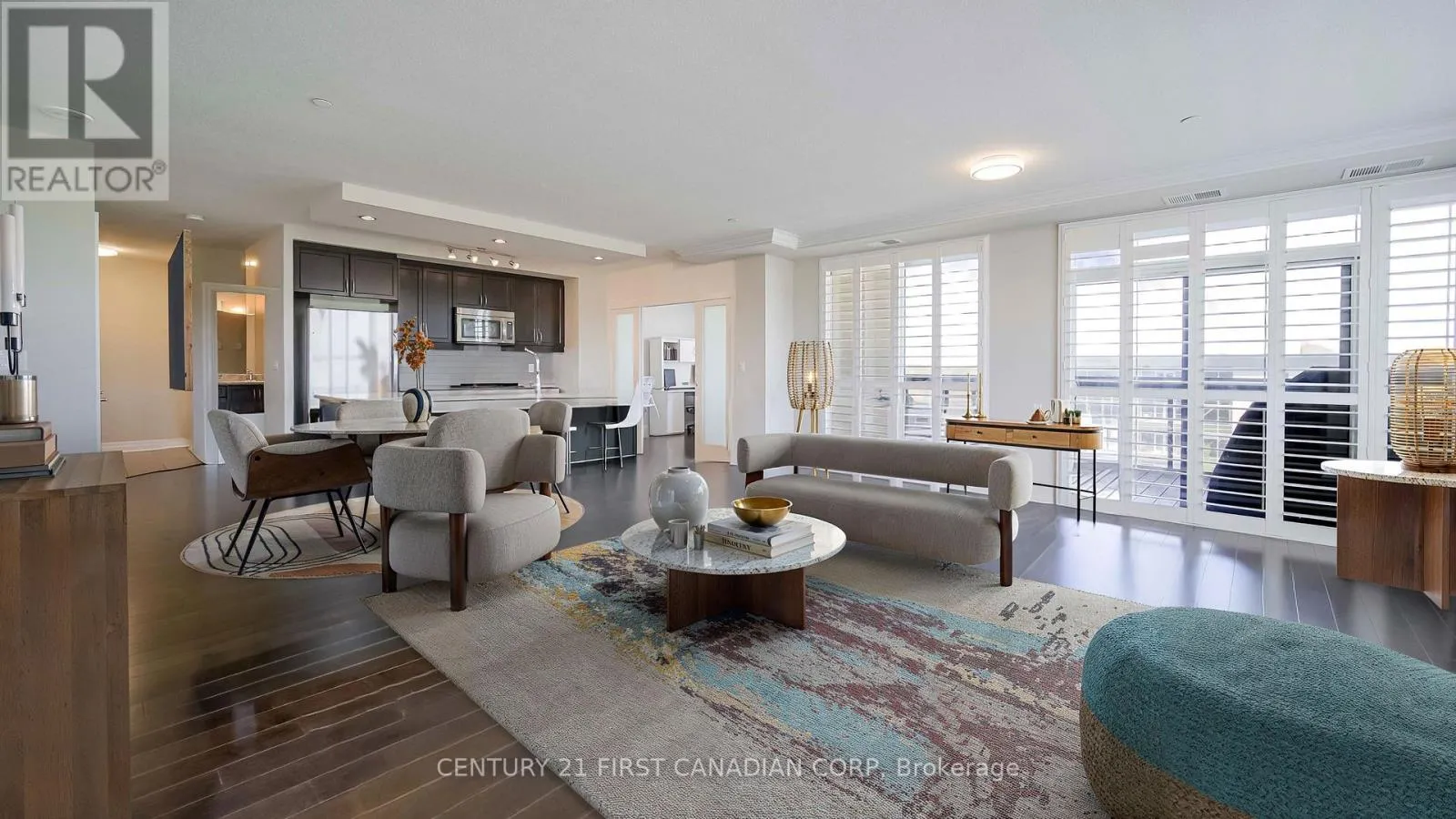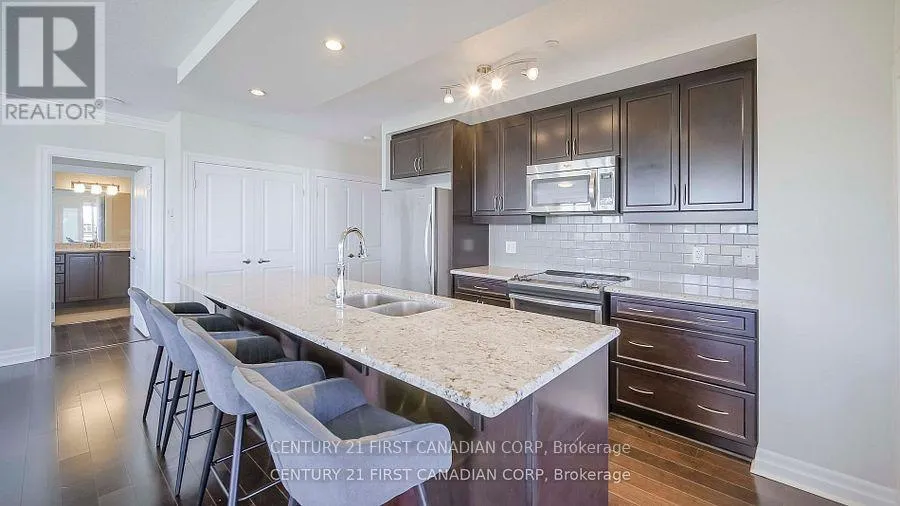 Cross Streets: Sunningdale & Villagewalk. ** Directions: SUNNINGDALE RD W AND RICHMOND. Luxurious and Spacious corner unit with sunning views- Step into this bright and expansive condo featuring hardwood floors throughout and an open-concept layout surrounded by floor-to ceiling windows covered with California shutters. The gourmet kitchen includes a breakfast bar with seating for 4 and two generous pantries, perfect for entertaining or everyday living. Enjoy two large bedrooms, including a luxurious master suite with a walk-in closet, 4-piece ensuite, tiled shower, and jetted tub. The versatile den offers the perfect space for a home office or 3rd bedroom. The large living/dining room features a floor-to-ceiling stone fireplace that walks out to the glassed-in balcony with unobstructed views, ideal for morning coffee or evening relaxation. As part of this prestigious Tricar development, residents enjoy access to premium amenities including a signature indoor pool, fully equipped fitness centre, golf simulator, spacious resident lounge, movie theatre, billiards rooms as well as a guest suite for additional over-flow/ Conveniently located just a short drive pleasant walk to Masonville Mall, and minutes from Western University (UWO), University Hospital. and Silvercity Cinemas. This condo is the perfect blend of comfort, style, and location- a true gem for those seeking luxury living in North London. There are 2 owned underground parking spaces right at the elevator. as well as your own private locker. Condo fees include heat and water. WELCOME HOME! (id:27476)