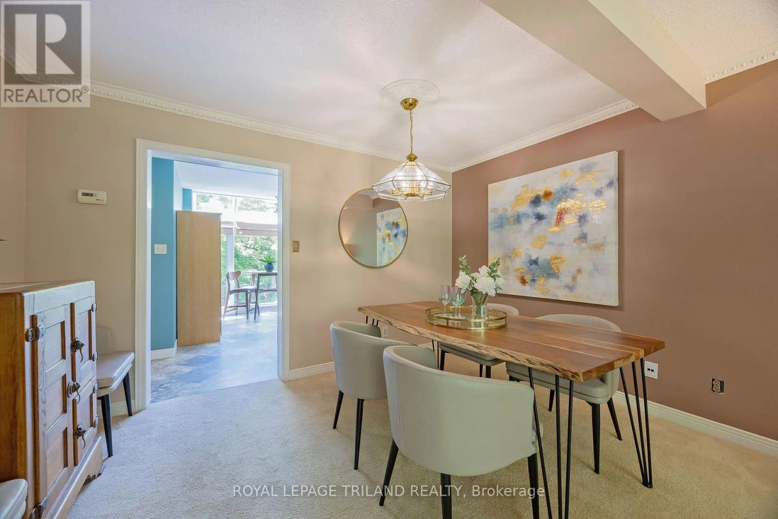 Cross Streets: Richmond Street. ** Directions: Turn into entrance for 703 Windermere Rd. and continue until you see the For Sale sign and Unit 23 on your left. Are you downsizing but not ready to compromise on space? Want to live in the city but enjoy peace and solitude? Looking for an investment property in a sought after area? Look no further. This spacious townhouse condo is in the very popular Windermere/Masonville area near shopping, hospitals, restaurants, UWO, walking trails and is just a quick drive to downtown. This end unit is arguably in the most desirable location of the well maintained complex, backing onto woods and water with privacy and nature at your back door. The thoughtful layout provides ample room to spread out amongst the levels. There is tons of natural light throughout, particularly in the eat-in kitchen with the atrium style windows. All of the bedrooms are a good size with multiple uses possible for the room on the main floor that could function as a fourth bedroom, home office, den or man cave with direct access to the rear patio and the coveted view/exposure. There are 3 bathrooms, a 2-piece combined with laundry on the second floor, plus a 2-pc ensuite and 4-pc main bathroom on the bedroom level. Exclusive parking for two vehicles, one in the driveway and one in the single garage with direct entry to the unit plus convenient visitor parking across the street. Several top-rated schools are in the area and public transit is handy, if needed. This condo complex is one of a kind and the positives of this unit's location cannot be stressed enough. *New rear door. Front door being replaced in 2026* Gas fireplace works but the seller did not use it so is "as is". (id:27476)