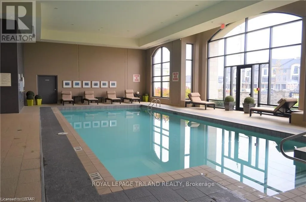 Cross Streets: Richmond Street and Sunningdale Road. ** Directions: Take Richmond Street Northbound, turn left onto Sunningdale Road, turn left onto Villagewalk Blvd. Welcome to Village North in beautiful Sunningdale! This fantastic 2 bedrooms plus den and 2 full bathrooms condo is spacious and offers a balcony with a scenic view. The primary bedroom has an ensuite bathroom and a walk in shower. Enjoy the electric fireplace in the living room with a ceiling fan and a balcony. The kitchen has a built in microwave and stainless steel appliances along with a large pantry. 1 reserved parking spot in the underground garage for your convenience. The amenities include an indoor pool, exercise room, golf simulator, movie theatre, billiards room, party room, and guest quarters. Great location close to shopping, Masonville Mall, trails, Western, University Hospital and Sunningdale Golf Club. All you pay for is electricity and the rest the Landlord takes care of. Can be rented furnished. A must see. It won't last long. (id:27476)