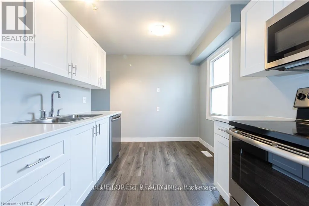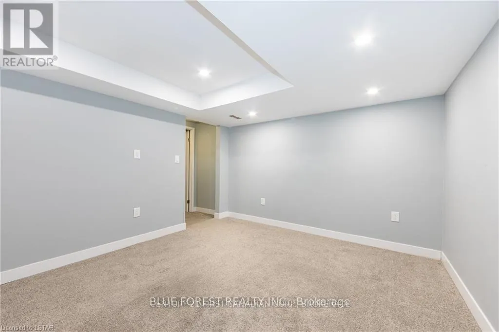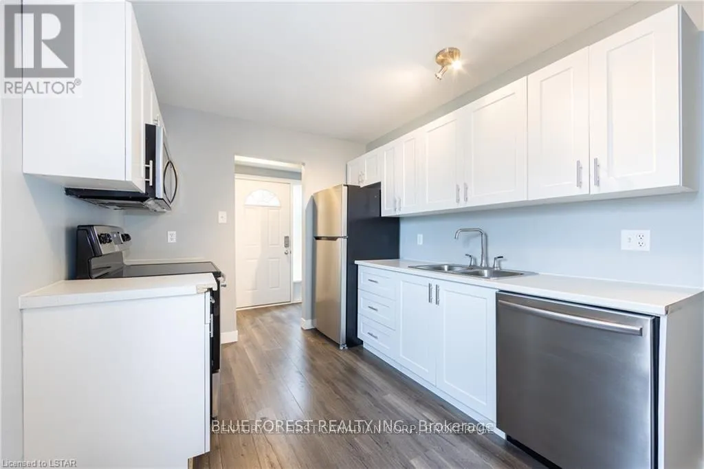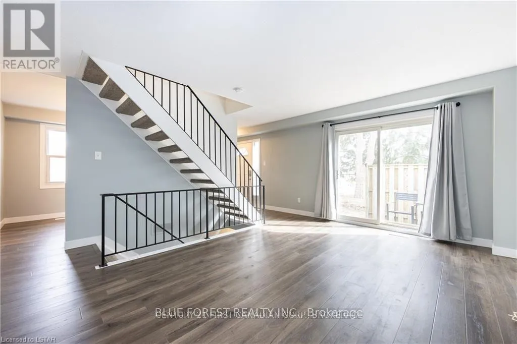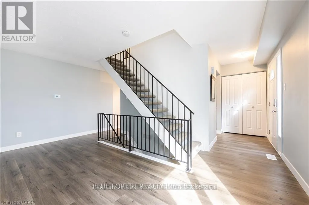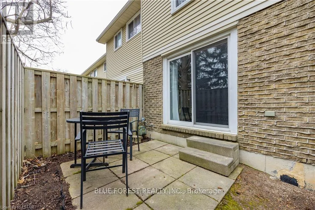 Cross Streets: Oxford St. W. ** Directions: From Oxford St W, just East of Hyde Park Road, enter complex off Fiddlers Green Rd. Updated End-Unit Condo in desirable Oakridge Neighbourhood. This 2 bedroom, 1 bathroom, Townhouse style home is located in a prime West London area and has assigned parking. Galley kitchen offers stainless steel appliances, laminate flooring with eating area. Spacious living room with sliding door access to private patio. Upper level has 2 bedrooms and a 4 pc bathroom, freshly painted. Lower level has large finished family room and huge unfinished storage space. Walking distance to schools, parks, shopping, Sifton Bog and public transit and all the amenities Oakridge has to offer. Minutes to Spingbank park, Byron Village and Thames Valley Golf Club. (id:27476)