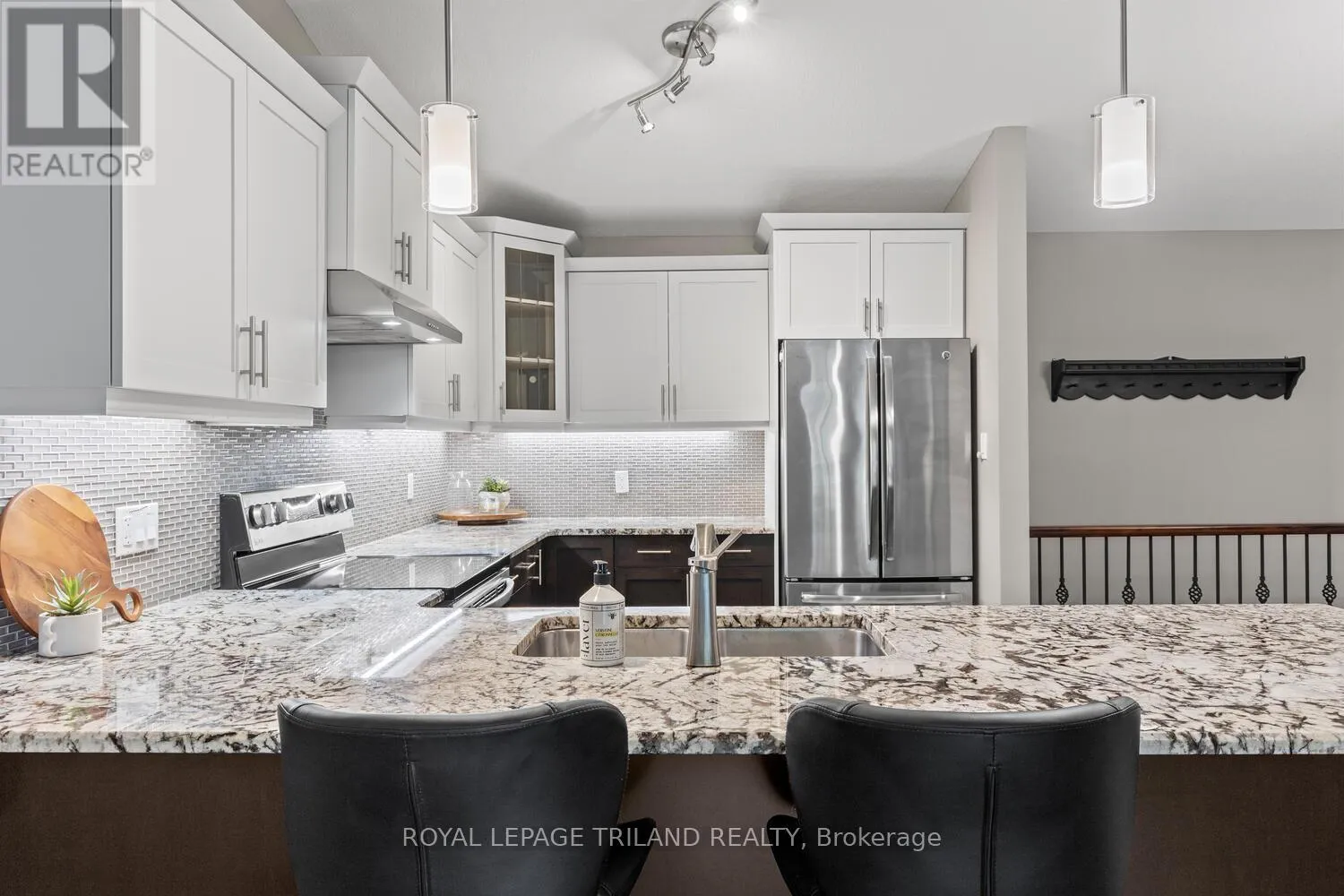 Cross Streets: Highbury Ave N. ** Directions: From Highbury Ave N, head east on Killarney Rd to the roundabout, and exit right into complex. Once in complex take first left, and follow road to unit on left. Visitor parking is to the right. Welcome to this exceptional one-floor condo with attached 2-car garage in the peaceful, exclusive community of River Trail. Located in north London, enjoy nature and walking trails just steps from your door. Featuring over $70,000 in thoughtful upgrades over 2350 total sq ft, this 2+1 bedroom, 3-bathroom home has a bright, open-concept main floor with vaulted ceilings. The modern kitchen boasts a convenient breakfast bar, granite countertops, stainless steel appliances, and dining space perfect for entertaining family or friends. The living room features gleaming hardwood floors, cozy gas fireplace, and sliding doors leading to a private deck great for morning coffee or afternoon reading. The main floor includes a spacious primary bedroom with large custom double closets and full ensuite. A second bedroom, full bathroom, and convenient main-floor laundry complete this level, offering easy accessibility. The fully finished lower level is bright and welcoming with large windows, a second gas fireplace in the family room, a spacious third bedroom, another full bathroom, and a large utility room with ample storage, including a built-in wine rack. Step outside to enjoy your beautiful front patio or the privacy of your back deck. Additional features include central vacuum and a double-car garage with custom flooring and inside entry for convenience. MAJOR BONUS: condo fees include landscaping, snow removal, roof, windows & doors, deck, building insurance. This wonderful location offers easy access to the scenic Thames River Trails, Kilally Meadows, and Fanshawe Conservation Area for year-round outdoor enjoyment. A strong sense of community makes River Trail a place people love to call home. These units rarely become available because once you discover this amazing community, you never want to leave! (id:27476)