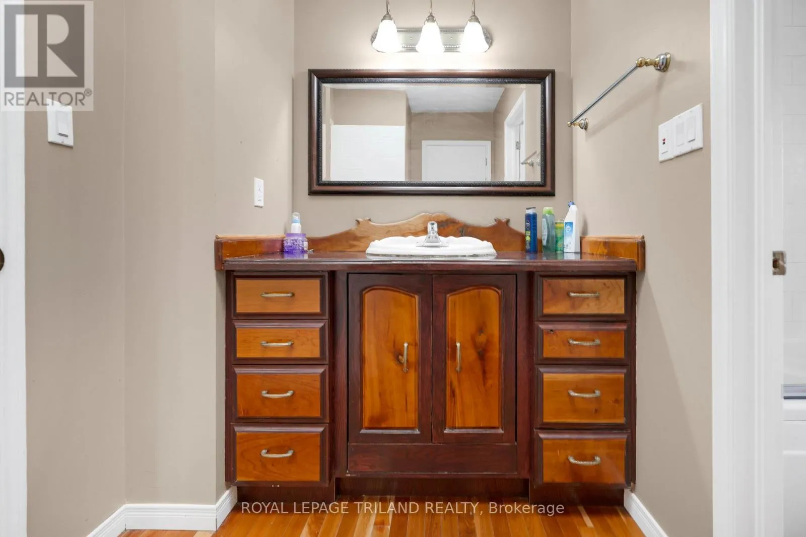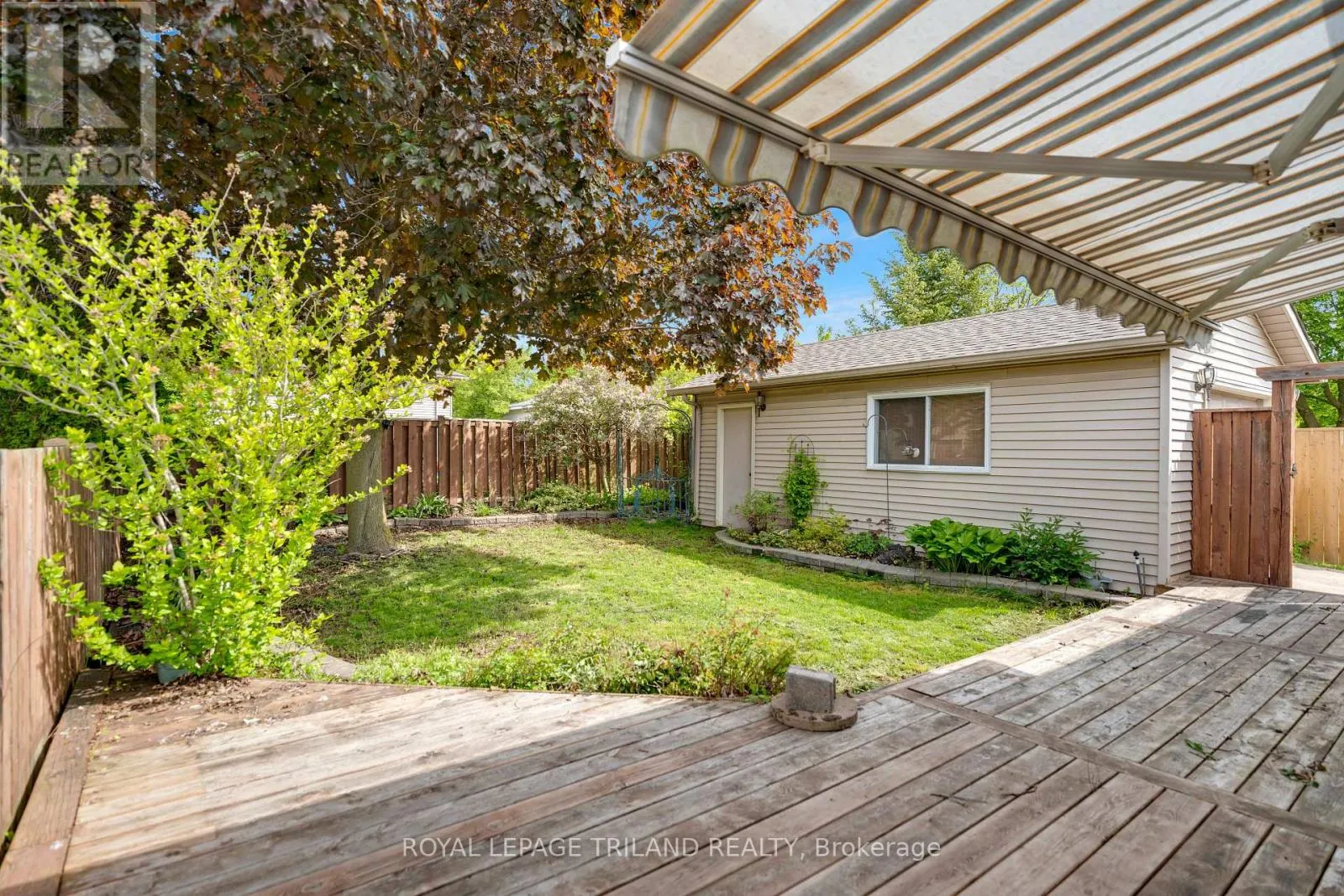 Cross Streets: Gainsborough Rd and Aldersbrook Rd. ** Directions: From Wonderland Rd N turn left on Gainsborough Rd, left on Aldersbrook Rd and then first left on Ardsley Rd. Your home search ends here in the highly sought-after Medway area of North London, known for its charming character homes, family-friendly atmosphere, and exceptional quality of life. Enjoy easy access to the Medway Valley Heritage Forest, excellent community amenities, top-rated schools, transit, shopping, and Western University.This well-maintained bungalow, ideally located next to a mini commercial plaza at a corner lot, offers a bright main floor with a side-by-side eat-in kitchen and living room separated by a privacy wall. The primary bedroom features a convenient 4-piece cheater ensuite, complemented by a second bedroom and a Den with exterior access through patio door that can also be used as an additional room or office as needed. A wide deck at rear side equipped with a motorized canopy at the rear wall too. The fully finished basement with a separate enterance adds tremendous value with two generous bedrooms, a large rec room, and a separate laundry area-ideal for families, multi-generational living, or investment potential.Outside, enjoy a private yard with a deck and motorized awning, an insulated detached single-car garage, and a rare driveway with parking for up to four vehicles. Key improvements in past done are: House roof (2017), garage roof (2022), furnace & A/C (2016), deck (2019), main-level hardwood (2022), and 28 pot lights (June 2025). A versatile, move-in-ready home in a prime North London location-don't miss this opportunity. The photo used are pictures taken under a staged set up in the past. (id:27476)