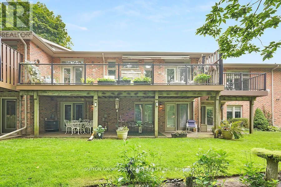 Cross Streets: RIVERSIDE DRIVE. ** Directions: BETWEEN BRAEMAR +BEAVERBROOK. PARK IN VISITOR PARKING. Rare find, country in the city. This upscale self-managed one-floor, 3-bed, 3-bath condo has full lower-level walkout. It is one of 11 condos situated on approximately a condo owned ten-acre wooded ravine backing onto the Thames River. Large principal rooms (2 of 3 bedrooms have French doors to the exterior). Main floor boasts high ceilings, crown trim, and hard surface counters. The large private composite deck with electric awning has glass panels to optimize nature and woodland views. Recent upgrades include a gas furnace, neutral paint, lighting, laundry room flooring, ensuite taps, toilet, and stone counter (id:27476)