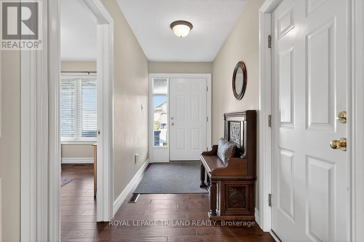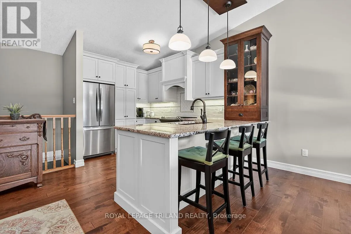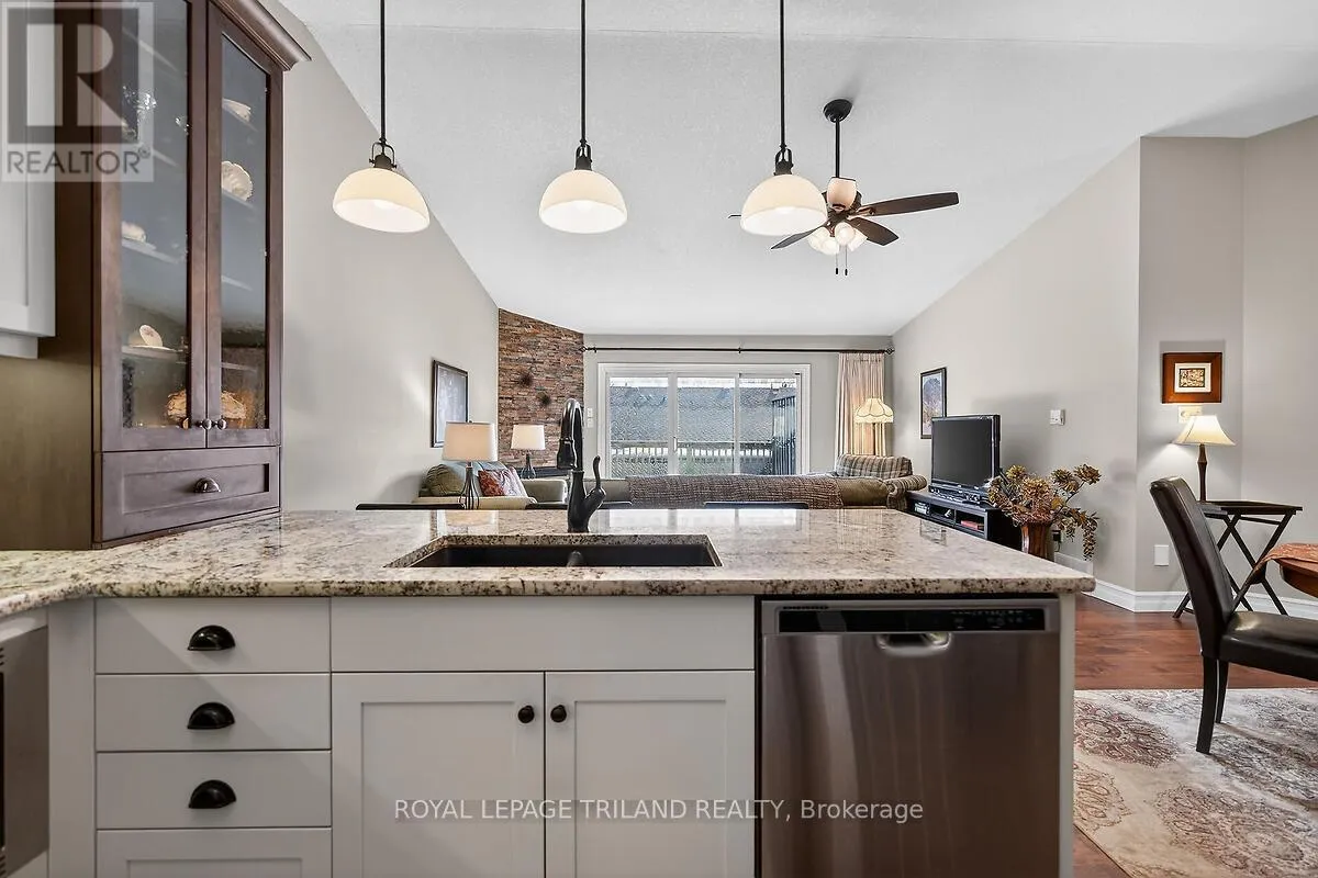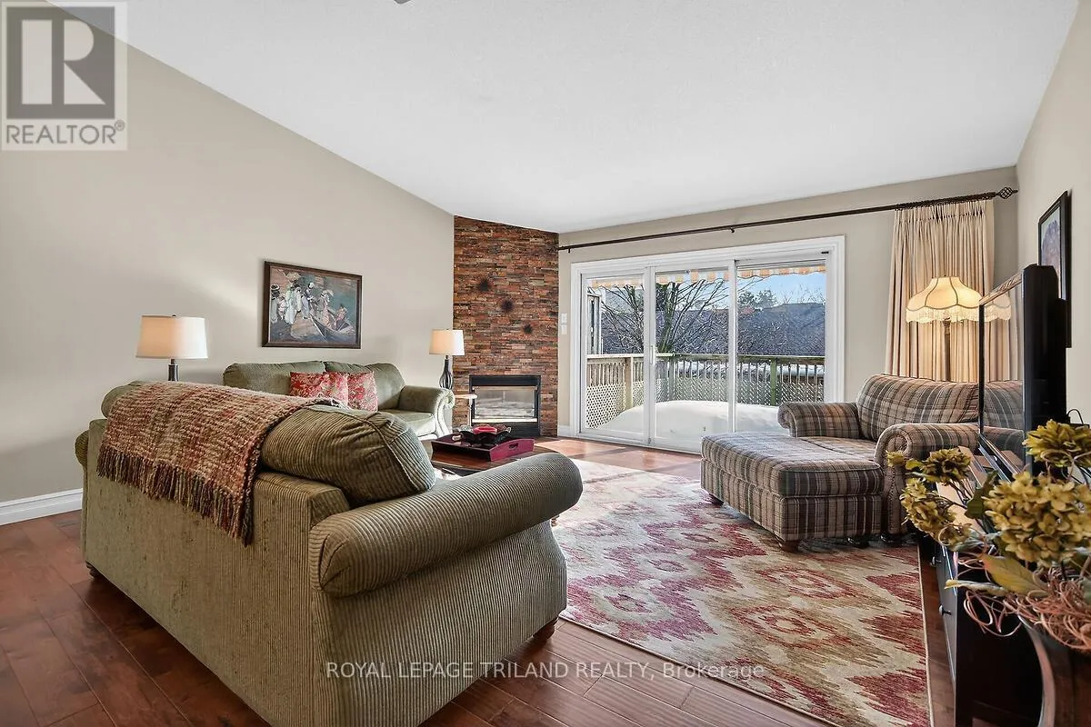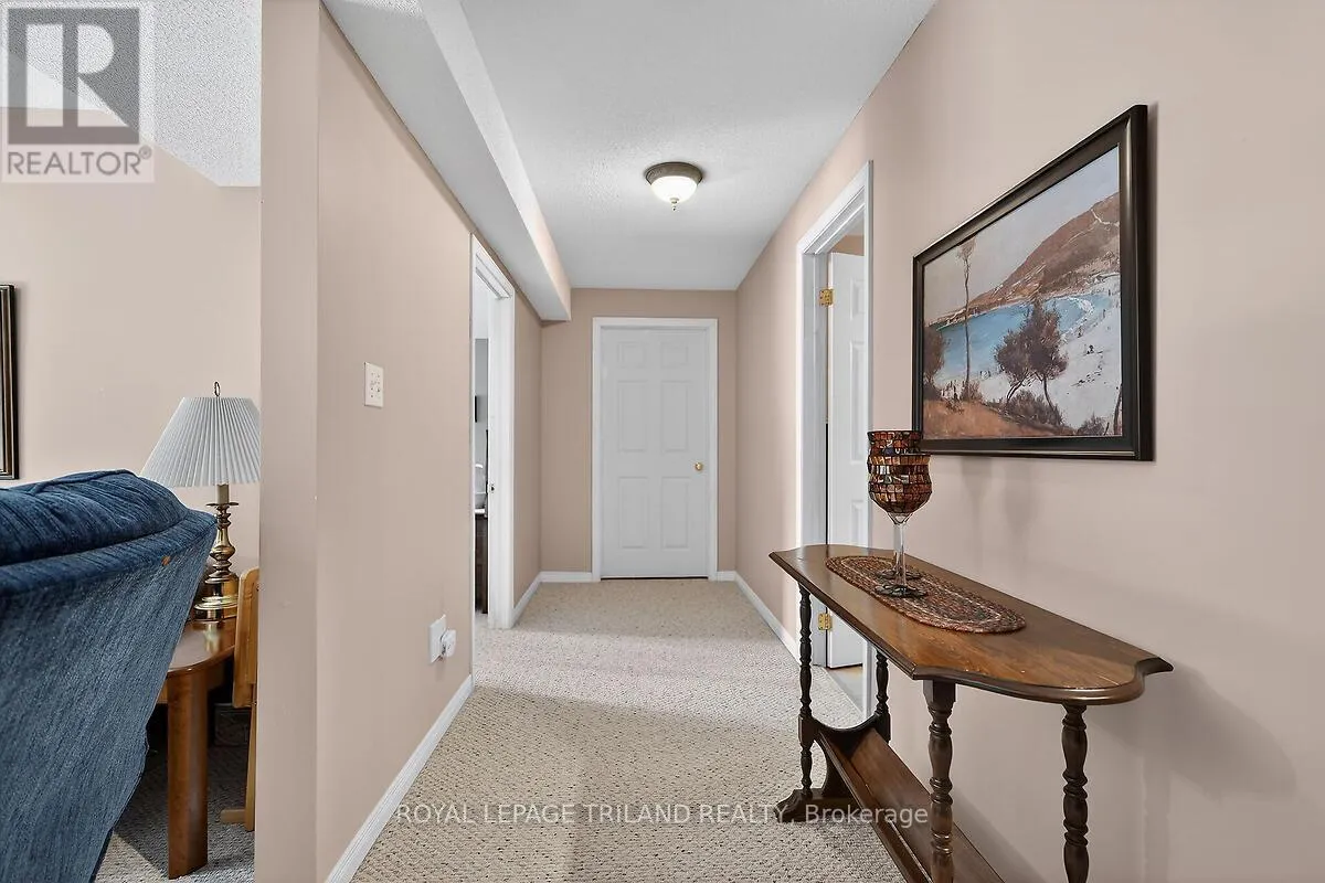 Cross Streets: HORIZON. ** Directions: Wonderland North to Beaverbrook. West on Beaverbrook next to Angelos Bakery. Beautifully maintained and thoughtfully updated one-floor condo featuring a finished lower-level walkout and double garage. Ideally located within steps of Costco, Angelo's Bakery, Farm Boy, and a wide range of nearby amenities and services. This original-owner home has been meticulously cared for and updated throughout. The deluxe kitchen offers custom cabinetry and granite countertops, complemented by hardwood flooring across the main level and a renovated ensuite. Major updates include a furnace replacement in 2009 and a new central air conditioner in 2025. The finished lower level walkout, complete with bedroom and bathroom, provides ideal space for guests or family. Enjoy outdoor living with a retractable awning-covered rear deck and lower patio. Numerous additional features and improvements throughout. Truly move-in ready (id:27476)