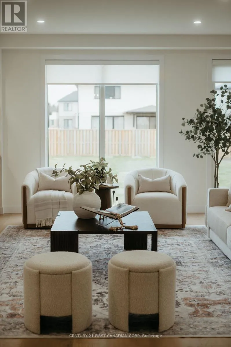 Cross Streets: Sunningdale Road W & Fair Oaks Boulevard. ** Directions: Turn eastbound onto Twilite Boulevard from Hyde Park Road. Take a right onto Heardcreek Trail and follow the road almost to the end. Shields Place is the second last street on the righthand side. Welcome Home to Foxfield North, an Upscale and Nearly-Complete Neighbourhood in Northwest London! This 2,516 SqFt Model Home is thoughtfully designed and crafted inside and out. The modern exterior blends contemporary peaks with timeless finishes, featuring a striking combination of masonry, board-and-batten, and black-framed windows for maximum curb appeal. Step inside to an expansive entryway with 9' ceilings on the main level, and wall paneling through the hallway. An open-concept living area opens up towards the rear of the home with a chef-inspired kitchen anchoring the space, overlooking the living and dining areas. Custom cabinetry, quartz countertops, and a spacious island with a breakfast bar draw the eye with the dazzling finishes, while an expansive walk-in pantry offers secondary prep space with custom open shelving and additional cabinetry. Oversized 6'x8' windows and patio doors are standard finishes that flood each home with natural light. Upstairs, you'll find four generous bedrooms, including a luxurious principal suite with a walk-in closet and spa-like ensuite featuring double sinks and a glass-enclosed curb-less shower. A second-floor laundry room with a sink adds extra functionality for busy households. Built on an expansive 40' wide by 155' deep lot nestled on the corner of a quiet cul-de-sac in the middle of a low-density neighbourhood, this home provides the perfect balance of privacy and accessibility. Living in Foxfield North, you have easy access to brand new schools and parks, large shopping centres, plentiful restaurants, and all the amenities NW London has to offer. Now is your chance to own this dream home, or fully customize and build your own! Contact the Listing Agent today for more details. (id:27476)