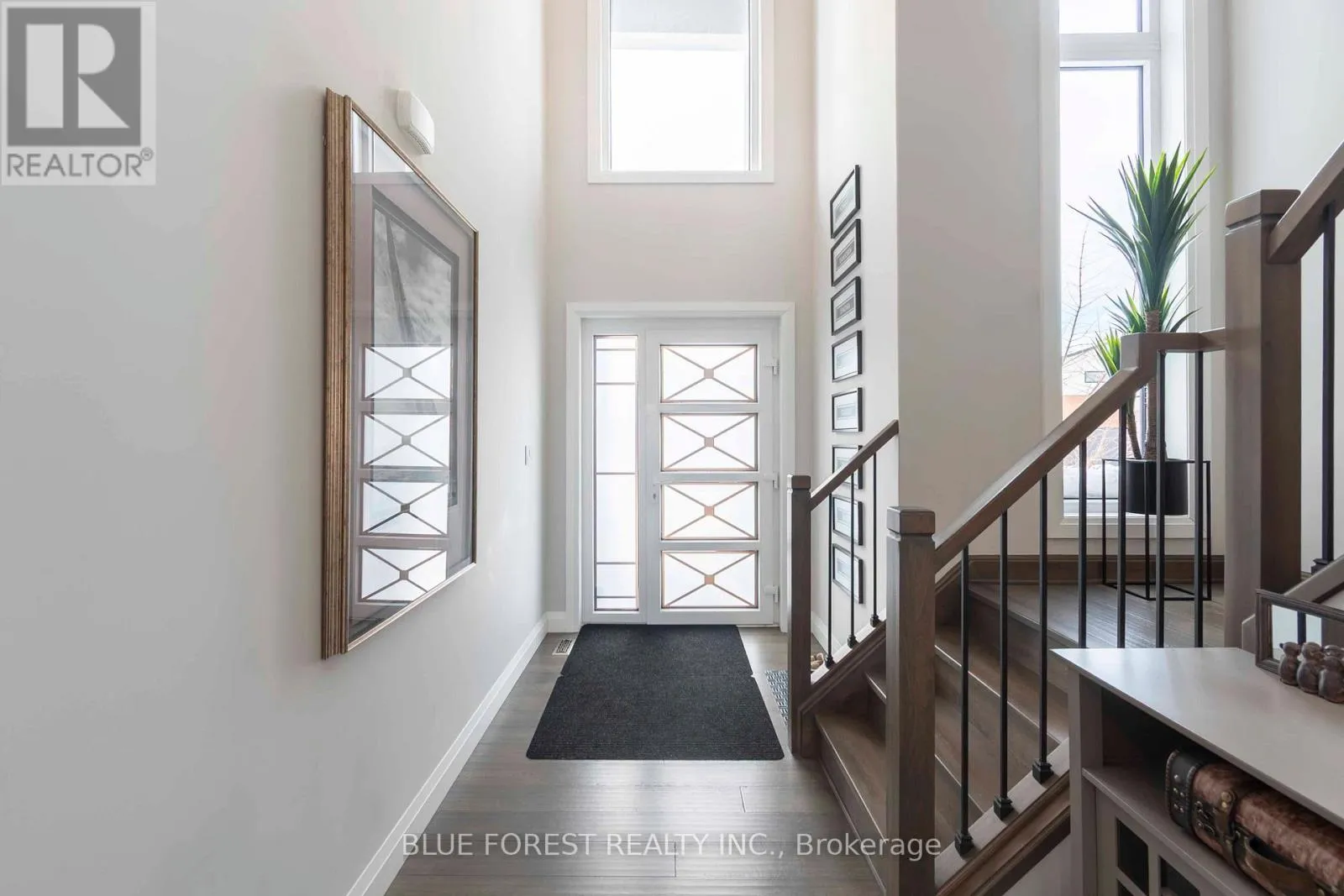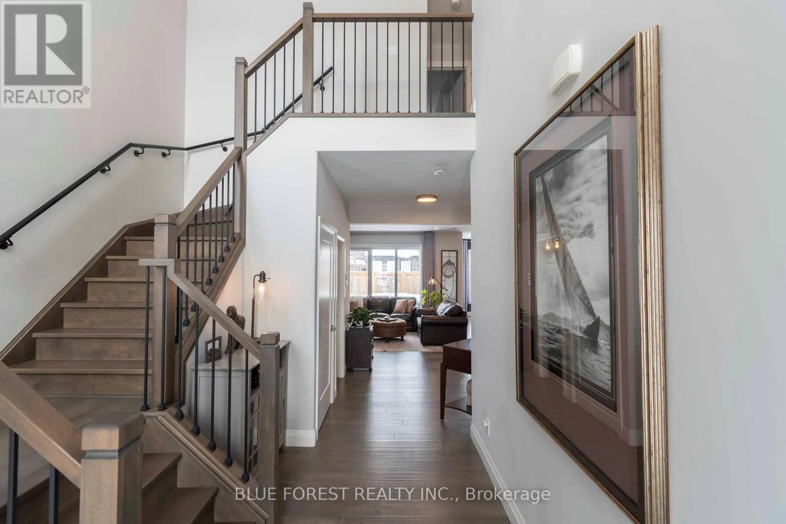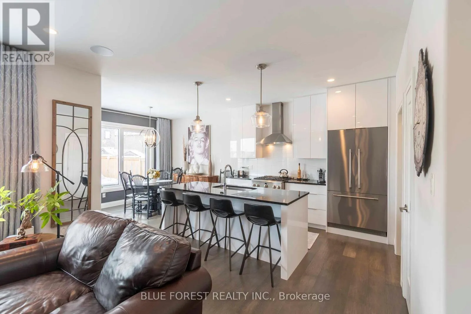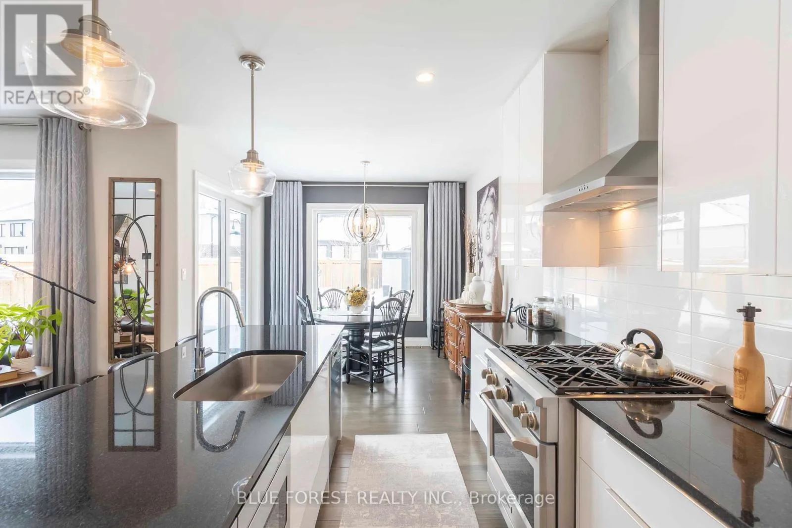 Cross Streets: Hyde park and twilite. ** Directions: North on Hyde Park, right on twilite, right on applerock. Welcome to this beautifully crafted modern home where quality and thoughtful design shine throughout. The main floor offers an open-concept layout with 9' ceilings and abundant natural light flowing through premium German-engineered windows and doors. The stylish kitchen features stone countertops, tiled backsplash, high-end appliances, ceiling-height cabinetry, pot lighting, pendant accents, and an oversized island ideal for entertaining.Hardwood flooring runs throughout the entire home, including the bedrooms. The living area is anchored by a striking fireplace feature wall and enhanced with surround sound, creating a perfect space to relax or host movie nights. Step out from the dining area to a private, landscaped backyard complete with a composite deck, extended concrete patio, and gas BBQ hookup.Upstairs offers three well-sized bedrooms, including a spacious primary suite with a spa-inspired ensuite. The unfinished basement provides excellent potential for additional living space, a home gym, or recreation room.Conveniently located within walking distance to St. Gabriel Catholic Elementary and Northwest Public School, with secondary options including Sir Frederick Banting SS and St. André Bessette CSS. A fantastic opportunity to own a modern home built with both style and substance. (id:27476)