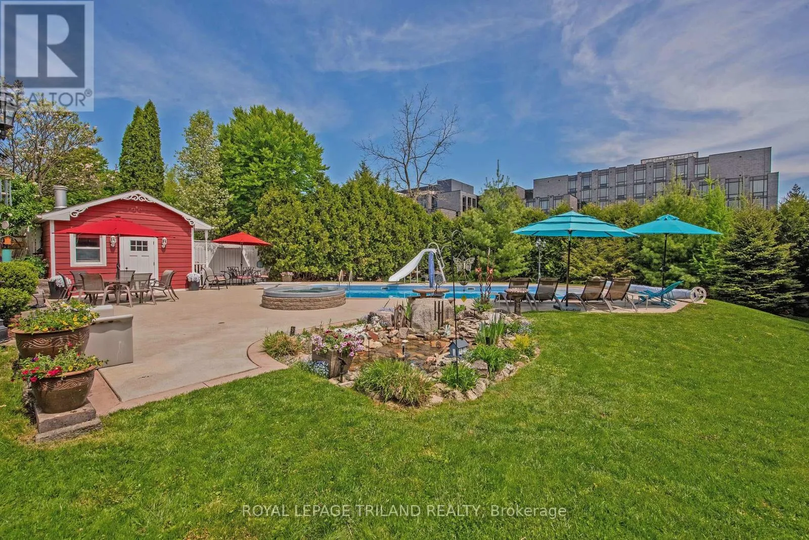Cross Streets: HILLVIEW BLVD. ** Directions: RICHMOND TO HILLVIEW BLVD TO CHEROKEE. Beautiful Masonville Family Home Cherished by the same family since 1992, this 5-bedroom, 3.5-bath home offers incredible space and warmth. The main floor features two wood-burning fireplaces, while the fully finished basement with backyard access adds extra living space. Step outside to a backyard oasis with an in-ground pool, attached hot tub, concrete patio, pond, and a charming newer shed-a true retreat! Prime Location: Close to Masonville Mall, University Hospital, Western University, and Masonville Public School. This loved home is ready for its next owners-don't miss out! (id:27476)
