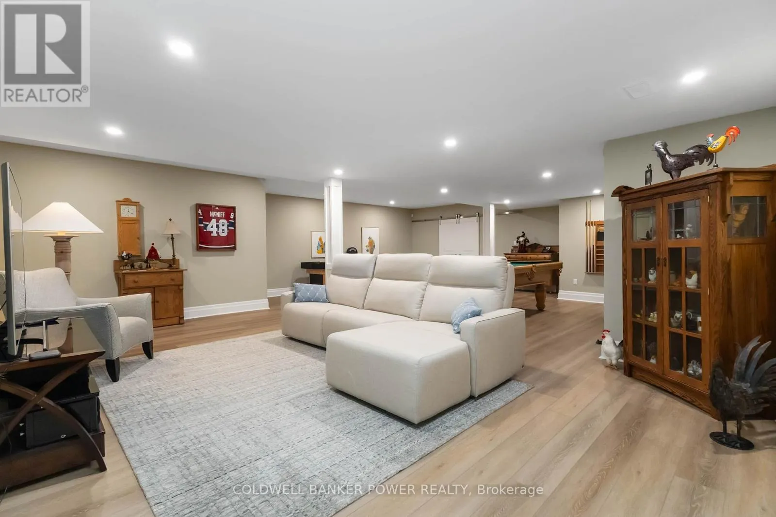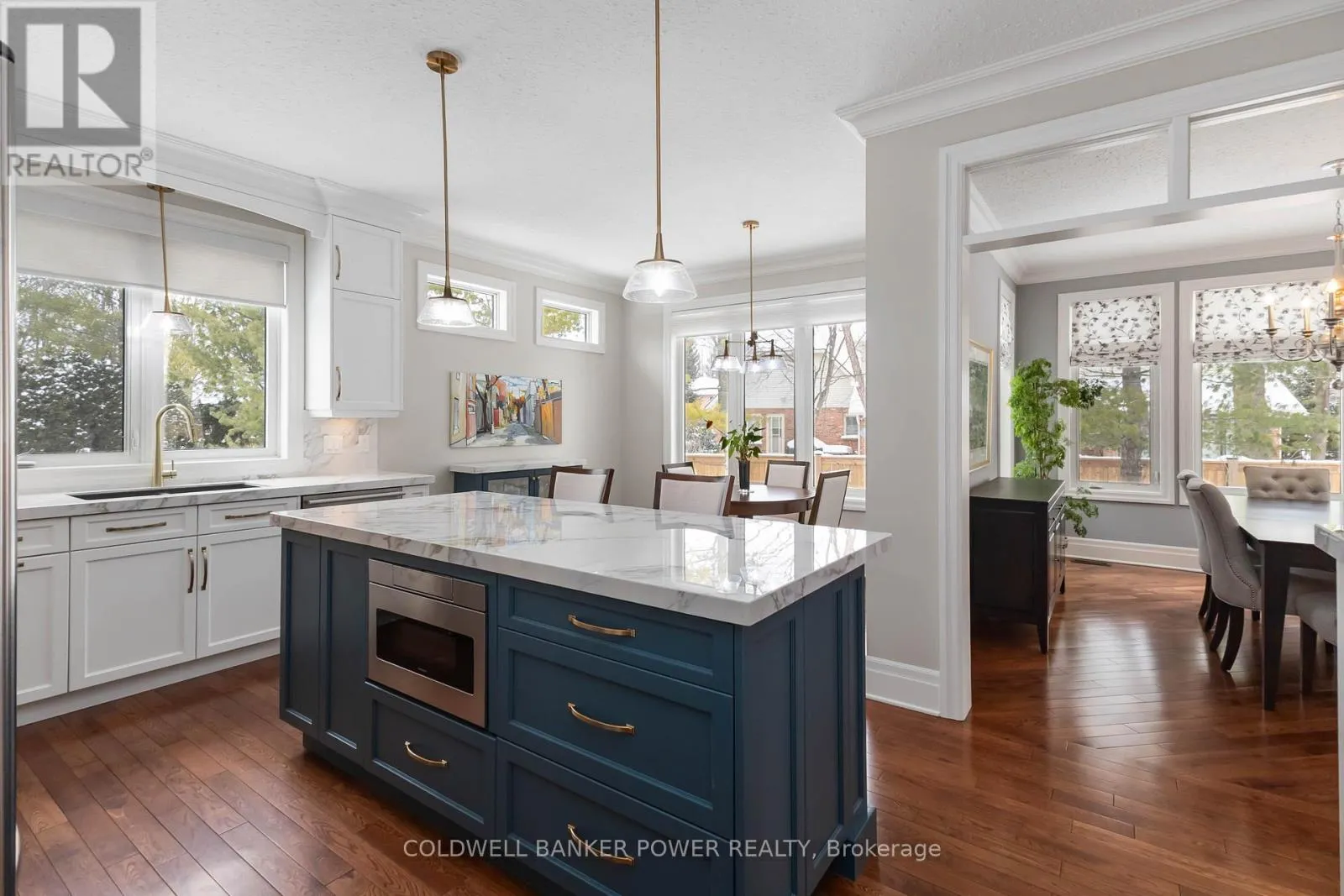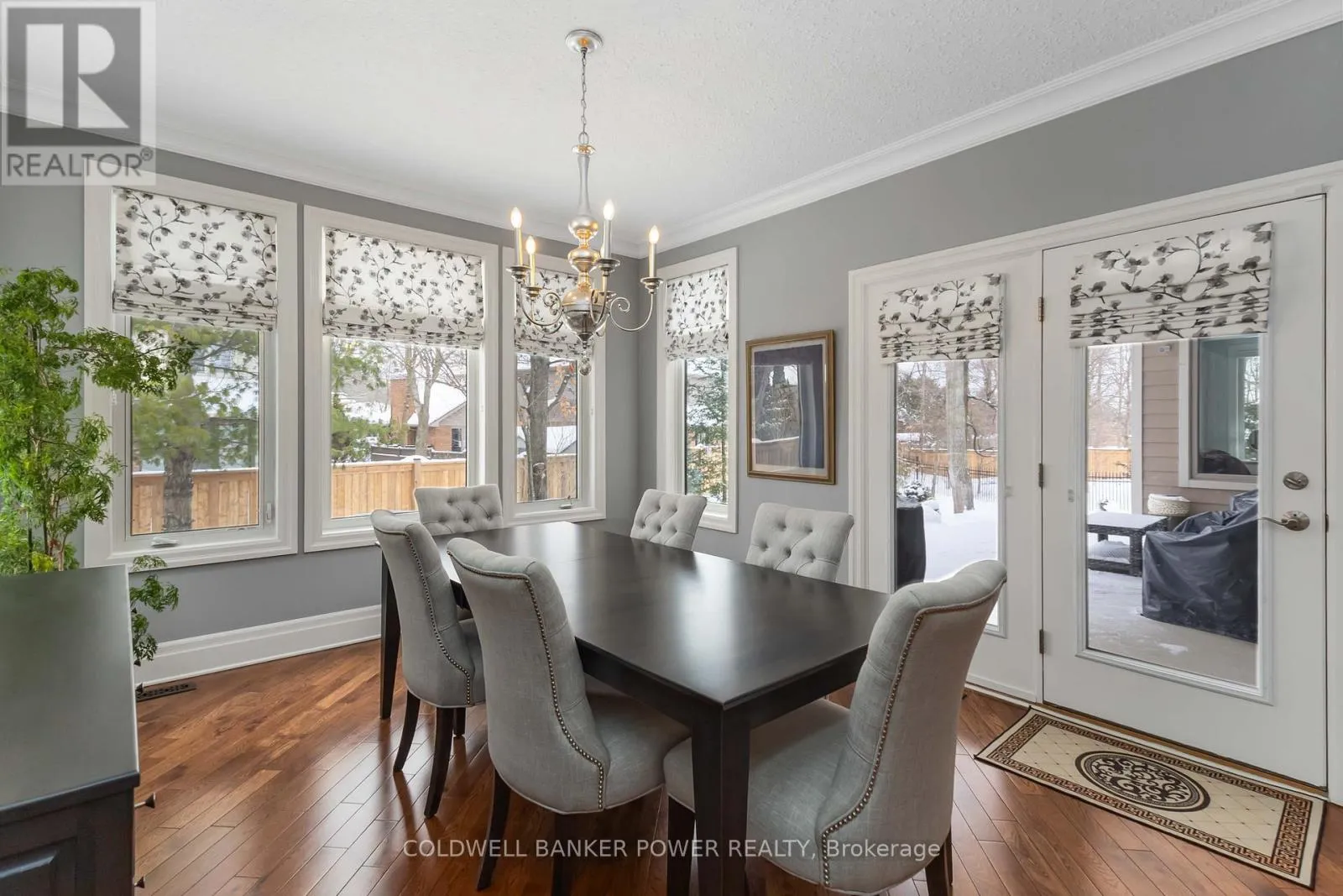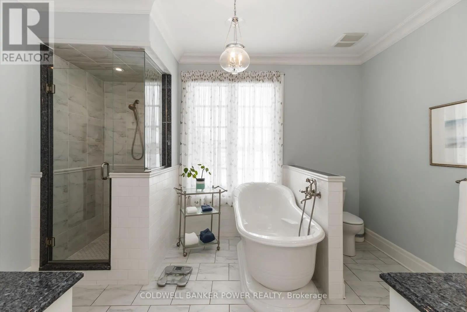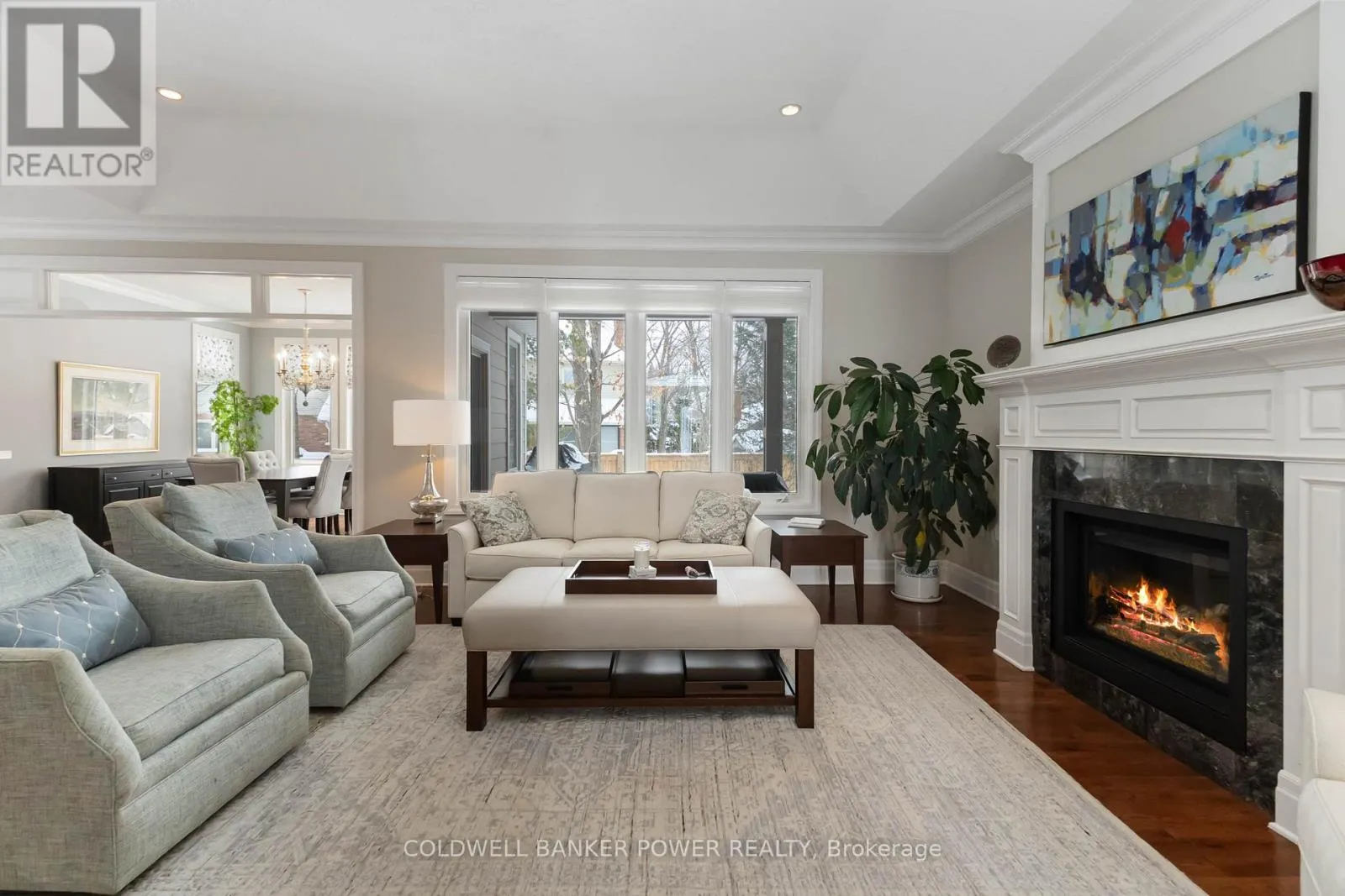 Cross Streets: Wonderland Rd & Whiteacres Dr. ** Directions: North on Wonderland Rd, East onto Whiteacres Dr and onto Woodholme Place. Exquisitely appointed executive one floor home in the much sought after Woodholme Park Enclave in North London. Situated on a premium and very private pie shaped lot at the end of a quiet cul de sac with a striking stone facade and Hardie board exterior siding. This home features 2 large bedrooms on main plus main floor den with over 3000 square feet of luxurious living. Desirable open concept plan featuring high ceilings including tray ceilings in great room and primary bedroom. Large great room with marble surround and gas fireplace, formal dining room, gourmet updated kitchen with professional series appliances including slide out microwave under the counter, porcelain counter tops, large island and separate dinette area featuring custom made glass cabinet. Primary bedroom features separate seating area, his and hers walk-in closets, luxurious 5-piece ensuite with heated floors, separate shower, slipper tub and remote privacy blinds. Lower-level features huge renovated open concept family room, 2 bedrooms with full egress windows and full 4-piece bath. Extensive use of crown molding and hardwood flooring throughout. You will love the natural light as this home is loaded with windows in every room overlooking the beautiful landscape. Huge rear partially covered patio (with natural gas hook up)overlooking extensively landscaped lot and fully fenced yard. Other features include alarm system, oversized garage, security film on all windows, upgraded Hunter and Douglas power blinds, 4 newer toilets, upgraded Lennox furnace and central air, and full lawn sprinkler system. Fantastic secluded location but just minutes to all shopping and extensive restaurants as well as Medway Valley's extensive trail system just steps away for easy access...Don't miss out on this rare opportunity! Impeccably appointed! (id:27476)