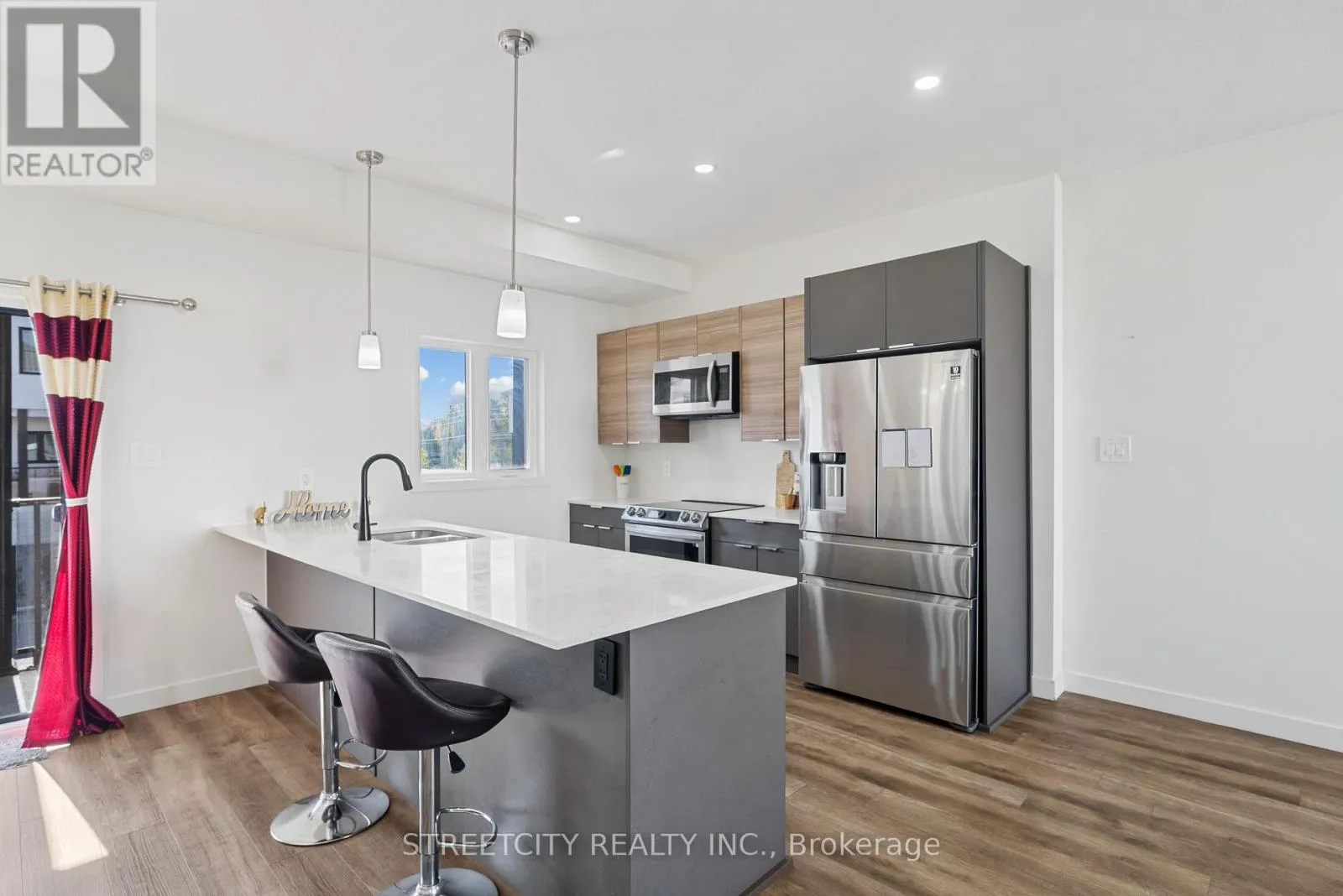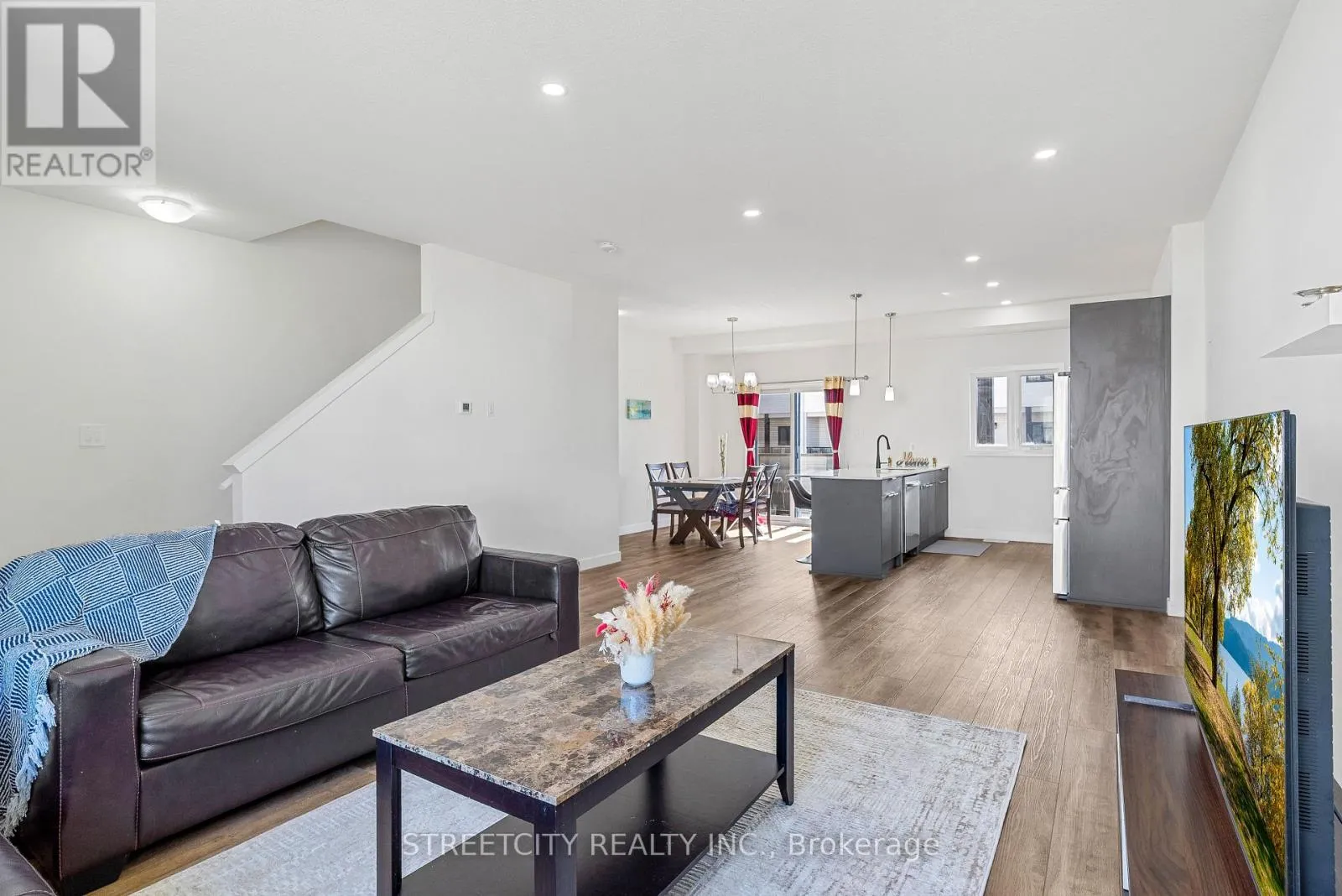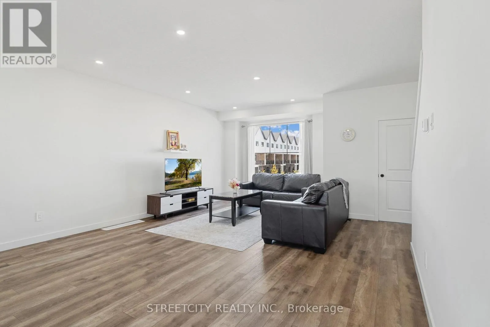 Cross Streets: Tokala Tr. & Henrica Ave. ** Directions: Intersection of Henrica Ave and Tokala Trail. Welcome to this well maintained corner townhouse perfectly situated near the Smart Centres mega shopping district in North London! Offering 2055 sqft. of modern living space, this home features 4 bedrooms and 3.5 bathrooms. The main floor offers a versatile space ideal for an in-law suite or private home office, complete with a full 4-piece bathroom. On the second level, you'll fall in love with the sleek kitchen boasting stainless steel appliances, a large island, and open-concept dining and living areas filled with natural light. Step out onto your spacious glass-railed balcony - perfect for morning coffee or evening BBQs. Upstairs, the third level hosts 3 generous bedrooms, a convenient laundry area, and 2 full bathrooms, including a primary suite with a private ensuite. Families will appreciate the top-rated school zoning, including St. Gabriel Catholic Elementary (opened Jan 2025) and Northwest Public School (opened Sep 2025), along with excellent secondary options and proximity to Western University. Enjoy easy access to Walmart (with Planet Fitness), Canadian Tire, Marshalls/HomeSense, and countless dining options. Outdoor lovers will appreciate nearby scenic trails and the Sunningdale Golf &Country Club. This home offers the perfect blend of modern design, an unbeatable location, and low-maintenance living, making it ideal for families or young professionals seeking an upscale lifestyle in North London. (id:27476)