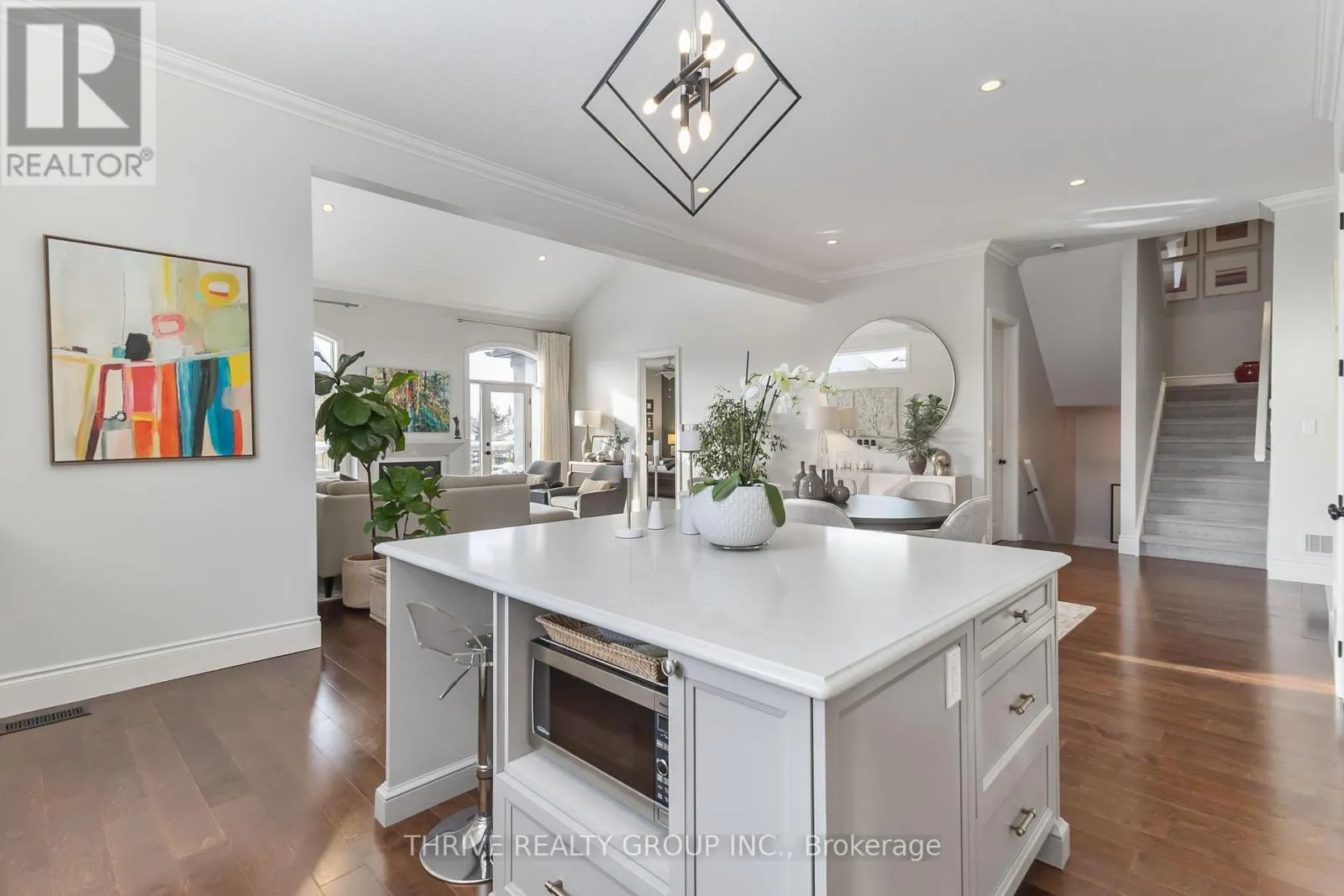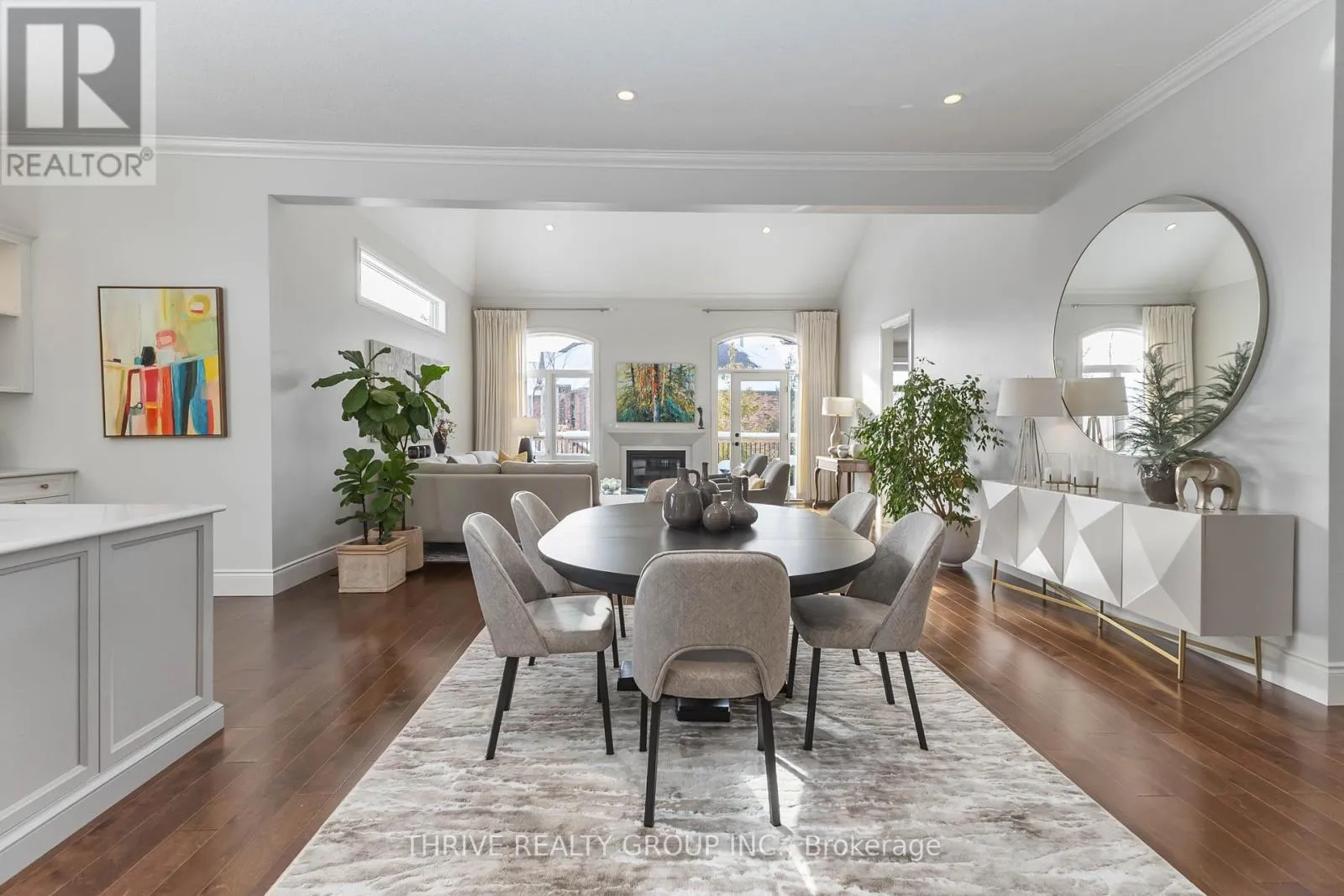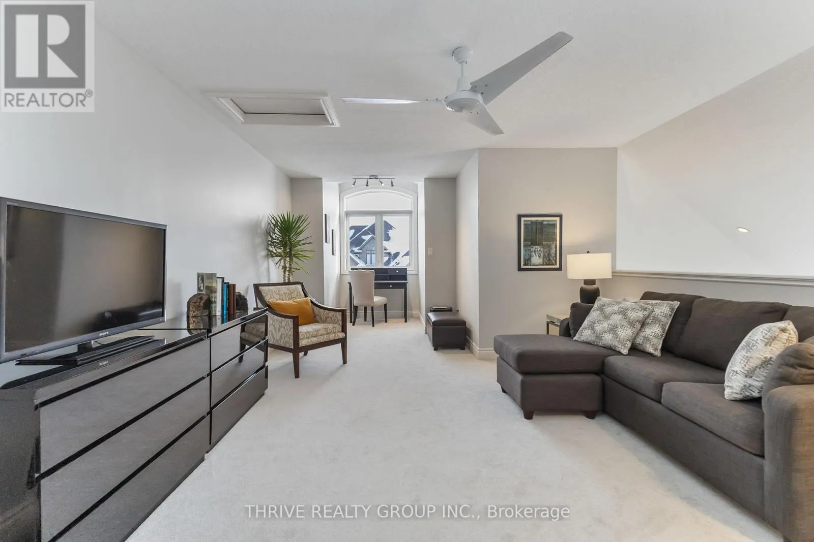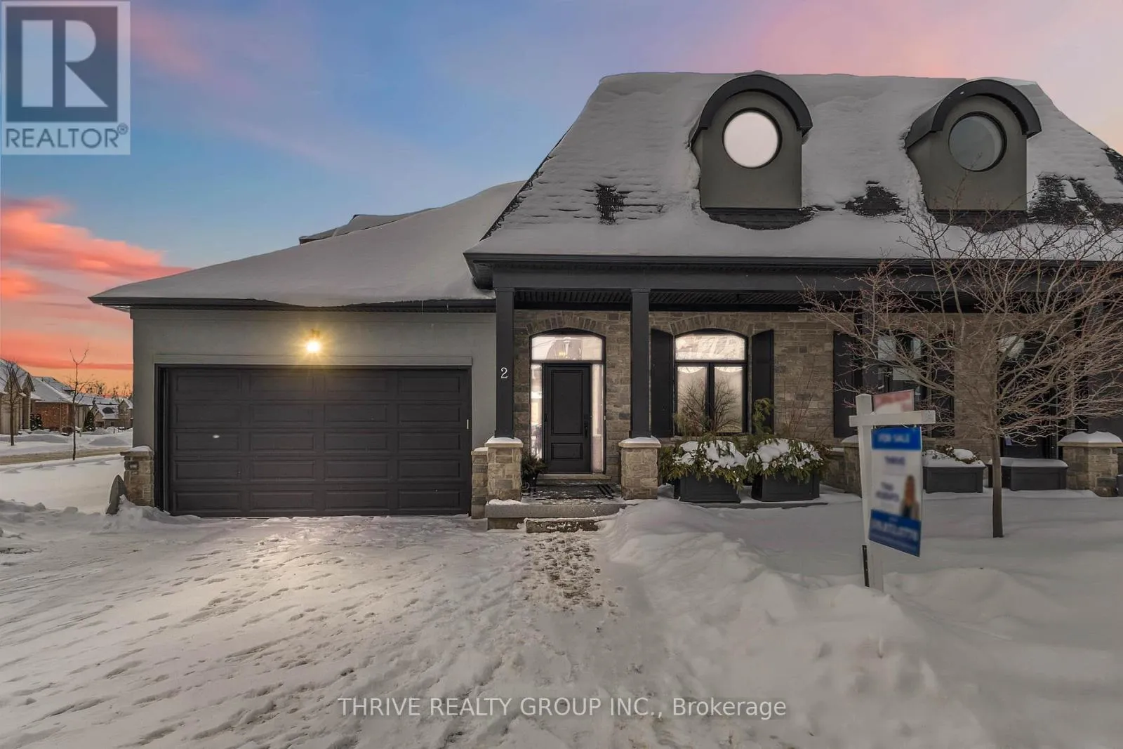 Cross Streets: Callingham Dr & Meadowlands Way. ** Directions: From Sunningdale Rd, turn onto Meadowlands Way, then turn onto Callingham Dr and follow to 2215. #2 will be the first home on your left. Rarely offered end-unit condo near Sunningdale Golf Course, offering exceptional space, privacy, and a truly pristine presentation, with a quiet outlook over mature greenery and a natural water feature, the perfect backdrop for watching evening sunsets. This impeccably maintained residence offers a rare sense of space and calm within the community. The main floor is thoughtfully designed for effortless living, featuring a primary bedroom with ensuite, main-floor laundry, and a flexible den or home office. Soaring ceilings - 10 feet on the main level and an impressive 18 feet in the great room, create a bright, elegant atmosphere, complemented by a beautifully designed kitchen that anchors the home with both style and function, ideal for everyday living and entertaining. The upper level includes a spacious loft area, perfect for additional lounge space, a home office, or a quiet retreat along with a bedroom and additional bathroom. The fully finished lower level adds incredible versatility with a bedroom, kitchenette, family room, sauna, bathroom, and bonus space, perfect for guests, extended family, or hobbies. With 3 bedrooms and 4 bathrooms, double car garage, and no rental items, this home delivers comfort, quality, and ease. Ideally located close to golf, trails, shopping, and everyday amenities, and within excellent school catchments including Masonville PS, A.B. Lucas SS, Louise Arbour FI, Sir Frederick Banting SS, as well as Catholic options St. Catherine of Siena and St. Andre Bessette. A rare opportunity to enjoy spacious, refined, low-maintenance living in one of North London's most desirable communities. (id:27476)
