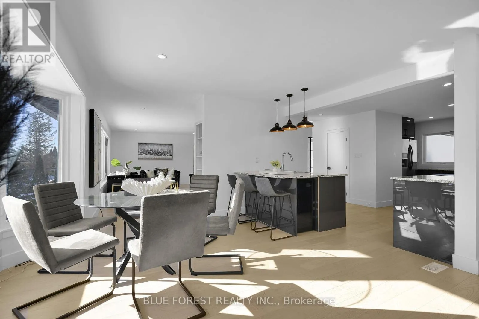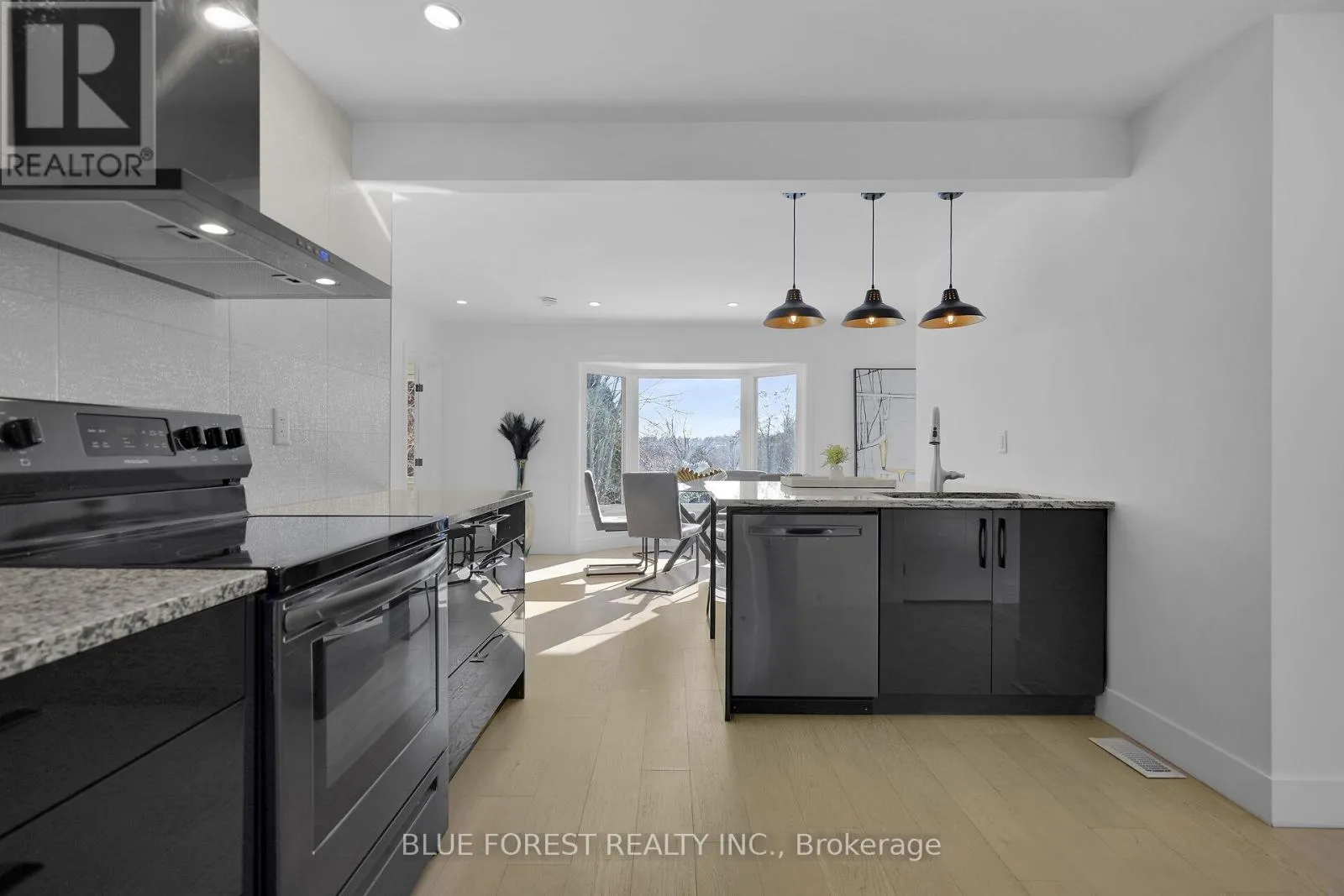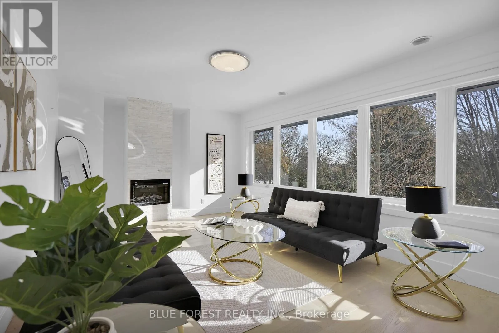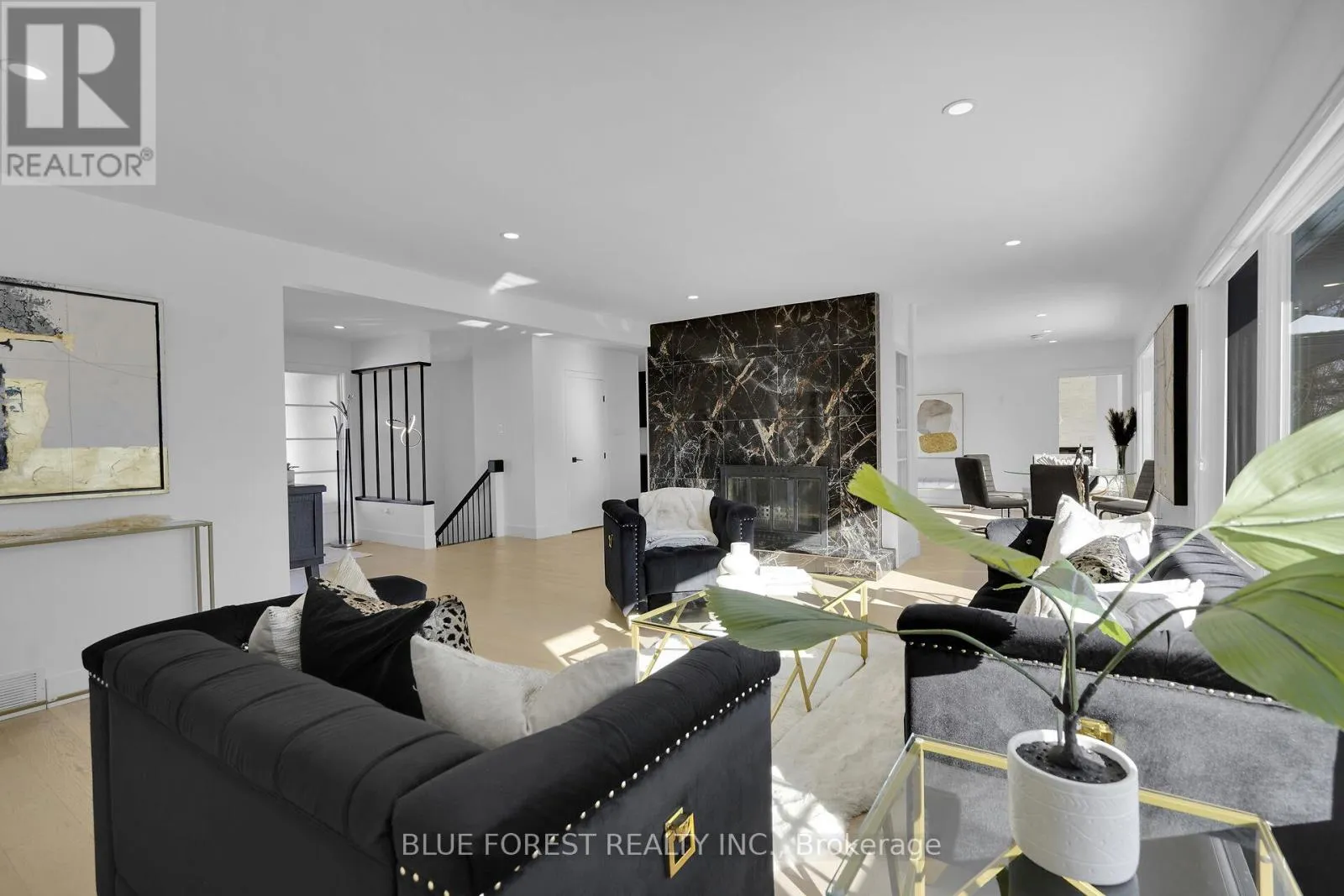 Cross Streets: Between Hyde Park and Wonderland. ** Directions: Westbound on Riverside. Property will be on the south side of Riverside. A rare opportunity on prestigious Riverside-this fully remodelled home offers over 3,500 sq. ft. of upgraded living space and features the highest-earning Airbnb in London for 2025. The standout feature is the completely finished walk-out basement with a private entrance, designed as a fully self-contained suite. It includes two spacious bedrooms, a full modern kitchen, its own laundry, a cozy living area with a statement fireplace wall, heated ceramic floors with individual controls, and even an INDOOR SAUNA. All appliances are included. This lower level operates as a top-performing short-term rental, making it an exceptional income-generating opportunity or mortgage helper. The main floor is equally impressive, offering a bright, open living room with hardwood floors and a striking fireplace feature wall, a sleek gourmet kitchen with modern cabinetry, two bedrooms, a full bathroom, a powder room, laundry, and a versatile additional room that can function as a family room, dining space, or extra bedroom. Set on an incredible private lot, the backyard is built for entertaining, featuring a heated saltwater pool, hot tub, new pool fence, and plenty of space to enjoy summer gatherings. Parking is abundant with a six-car driveway and a two-car garage. Additional upgrades include soundproofing between levels, heated floors, and two electrical panels. Live upstairs while generating substantial income below. This is a truly exceptional, must-see property. (id:27476)
