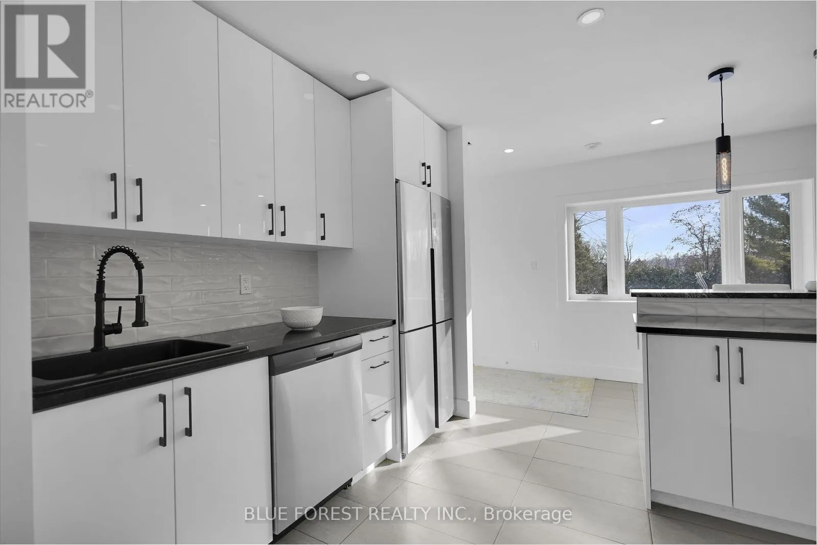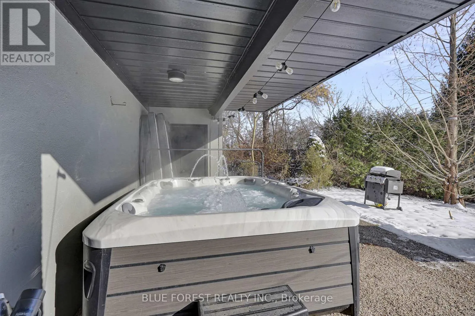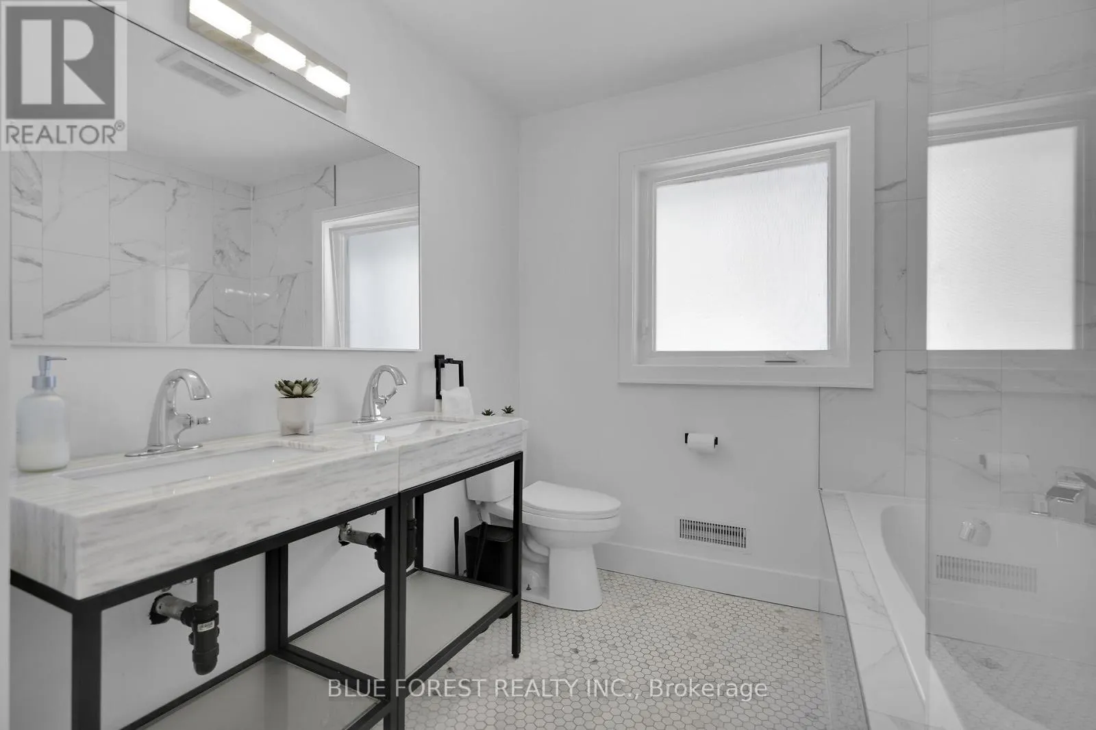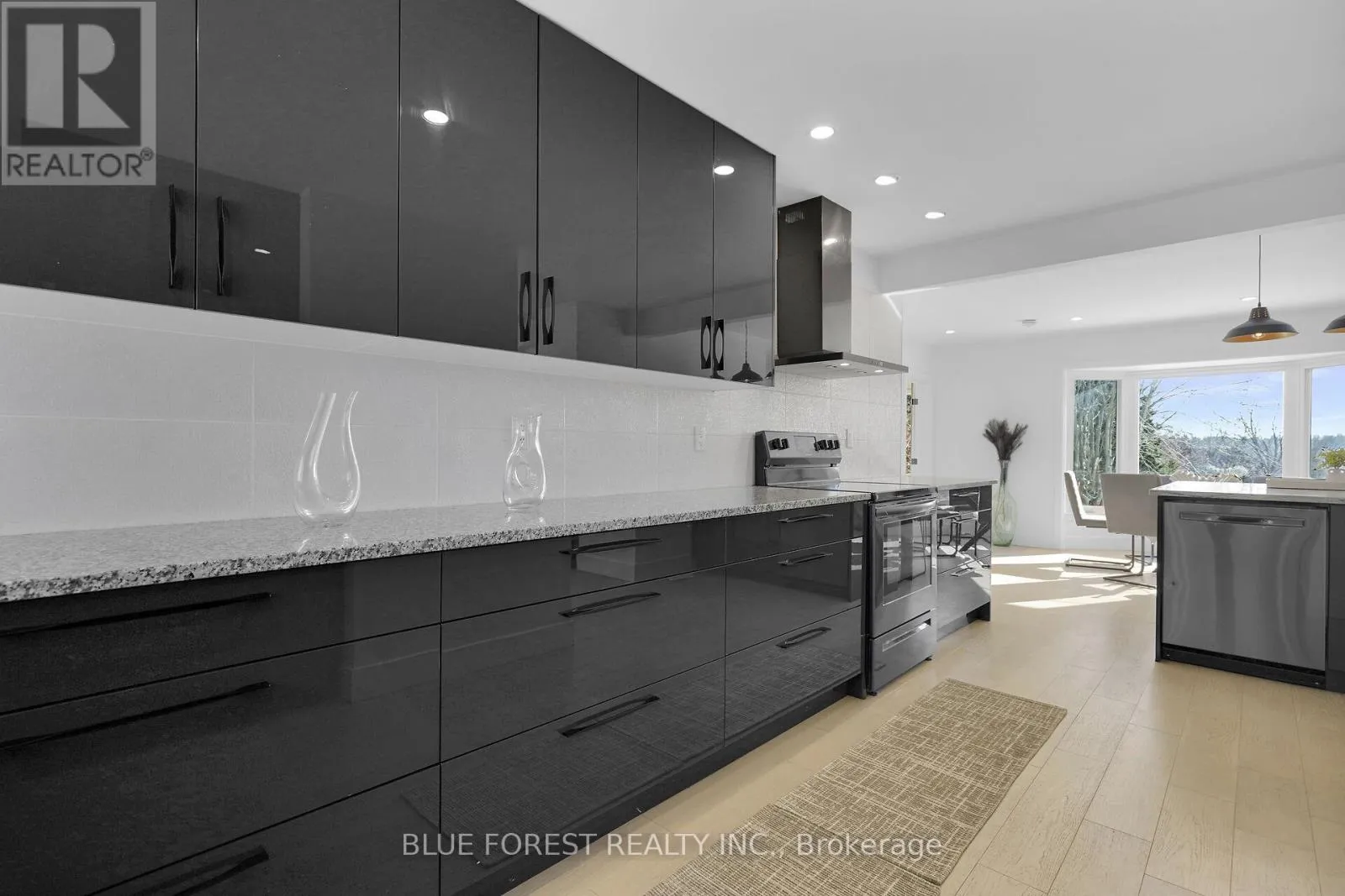 Cross Streets: Between Hyde Park and Wonderland. ** Directions: Westbound on Riverside. Property will be on the south side of Riverside. A rare opportunity on prestigious Riverside-this fully remodelled home offers over 3,500 sq. ft. of upgraded living space and features the highest-earning Airbnb in London for 2025. The standout feature is the completely finished walk-out basement with a private entrance, designed as a fully self-contained suite. It includes two spacious bedrooms, a full modern kitchen, its own laundry, a cozy living area with a statement fireplace wall, heated ceramic floors with individual controls, and even an INDOOR SAUNA. All appliances are included. This lower level operates as a top-performing short-term rental, making it an exceptional income-generating opportunity or mortgage helper. The main floor is equally impressive, offering a bright, open living room with hardwood floors and a striking fireplace feature wall, a sleek gourmet kitchen with modern cabinetry, two bedrooms, a full bathroom, a powder room, laundry, and a versatile additional room that can function as a family room, dining space, or extra bedroom. Set on an incredible private lot, the backyard is built for entertaining, featuring a heated saltwater pool, hot tub, new pool fence, and plenty of space to enjoy summer gatherings. Parking is abundant with a six-car driveway and a two-car garage. Additional upgrades include soundproofing between levels, heated floors, and two electrical panels. Live upstairs while generating substantial income below. This is a truly exceptional, must-see property. (id:27476)