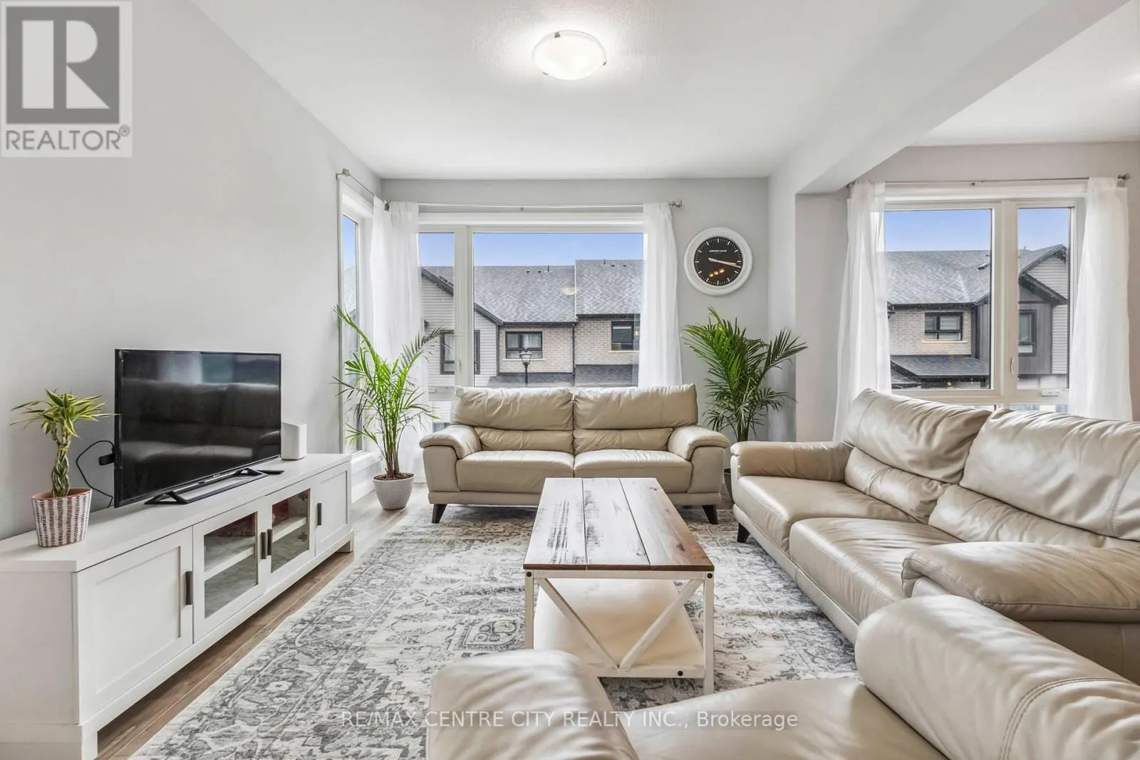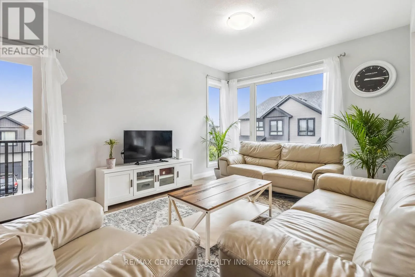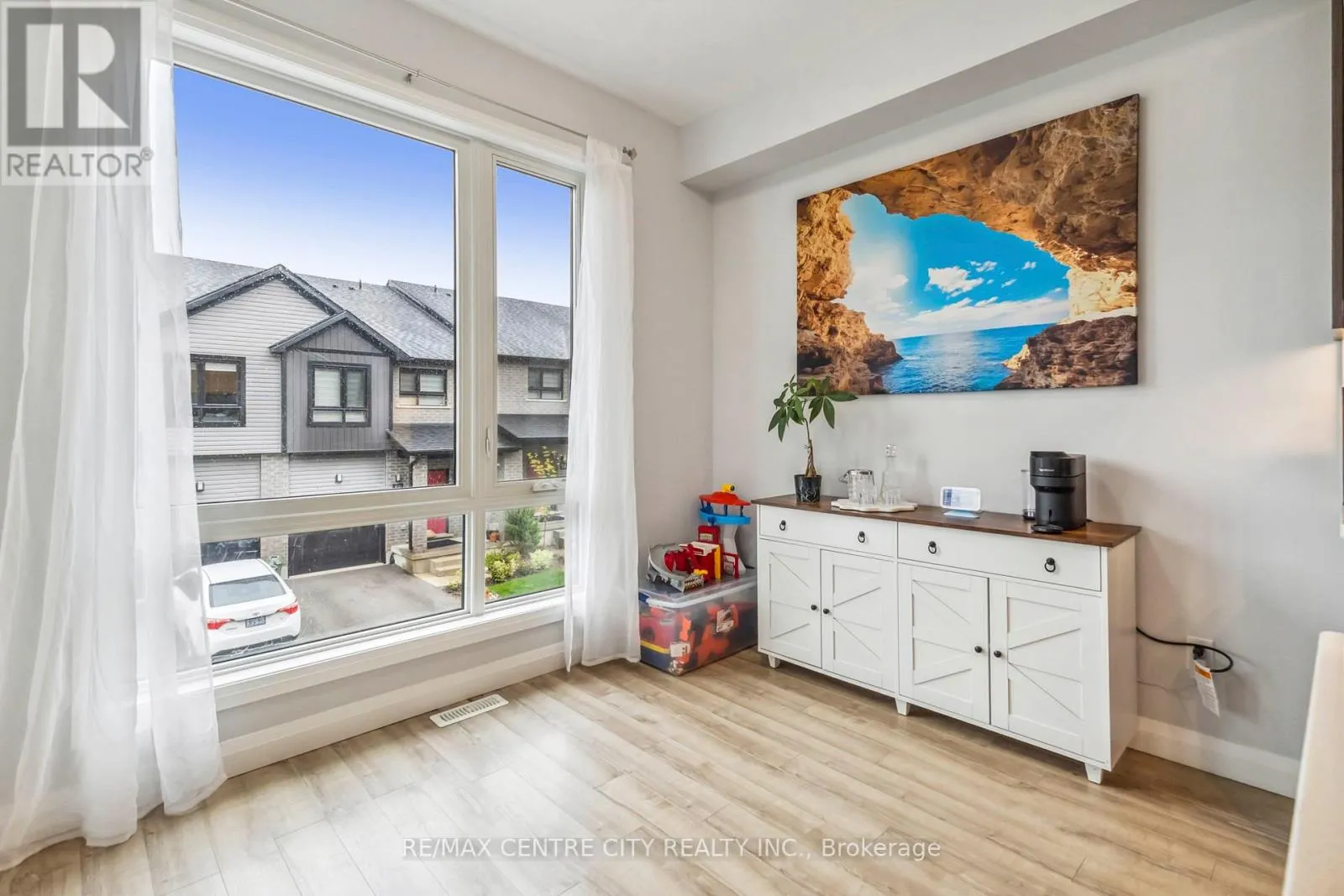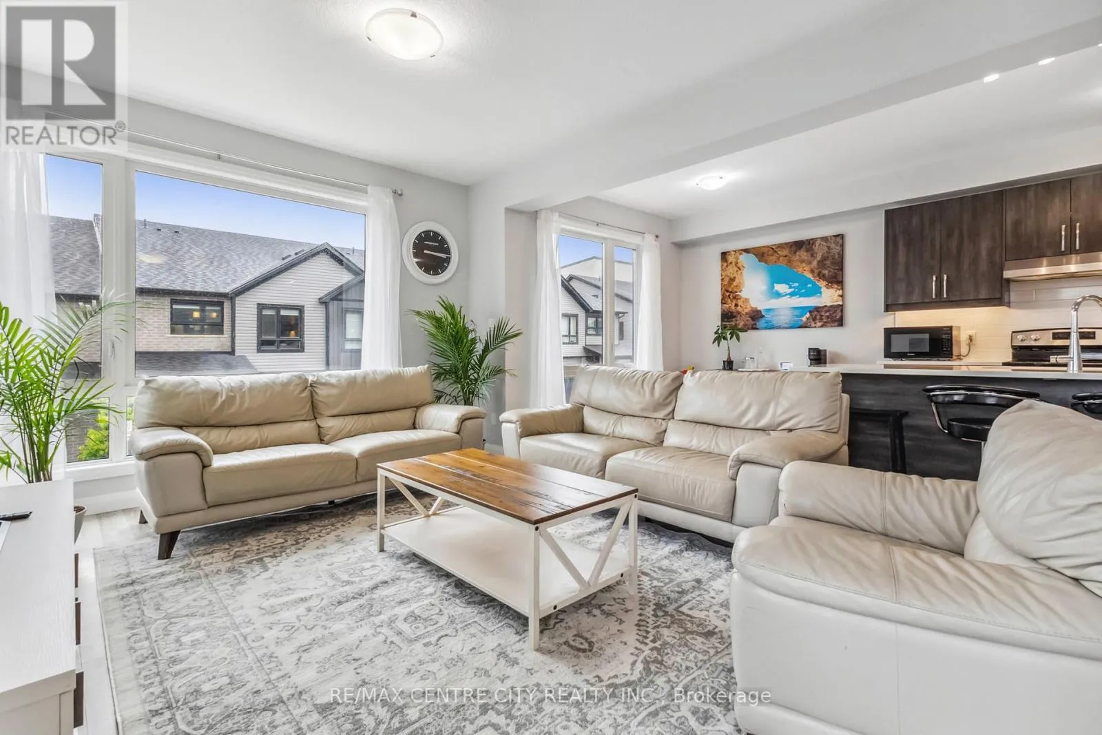 Cross Streets: Kleinburg and Canvas Way. ** Directions: From Sunningdale and Adelaide, go west on Sunningdale, north on Canvas Way, and east on Kleinburg. The property is on the South side of Kleinburg. OPENHOUSE SATURDAY FEB 21 2-4 PM. Bright Corner Executive Townhome in Prime North London. Opportunities like this do not come around often. This is one of only four true corner executive units in the entire complex, offering more space, more windows, and noticeably more natural light than the standard interior layouts. From the moment you step inside, the difference is obvious. The home feels open, bright, and private. With east and north exposures, the living spaces are filled with beautiful morning sunlight and enjoy consistent natural daylight throughout the day. The additional windows create an airy atmosphere that buyers immediately notice. It simply feels larger and more comfortable. Offering approximately 1,818 square feet above grade plus a full unfinished basement, this three-storey layout provides flexibility that most townhomes cannot match. The ground-level bonus room is ideal for a home office, gym, guest space, or fourth bedroom. In today's market, that extra functional space matters. The main living area is open concept and designed for real life. Whether you are hosting friends or enjoying a quiet evening at home, the flow between the living room, dining area, and kitchen makes everyday living easy. The kitchen features modern finishes, ample cabinetry, and generous counter space. Upstairs, you will find three well-sized bedrooms and four bathrooms throughout the home, giving everyone space and privacy. The built-in garage, private terrace, and low monthly maintenance fees add convenience and long-term value. Located in one of North London's most desirable communities, you are minutes from trails, parks, YMCA facilities, shopping, public transit, and Western University. The area is known for its strong schools and quiet residential feel. Corner units of this size, with this exposure and layout, are rarely offered. If you have been waiting for a townhome that feels more like a freehold than a typical condo, this is the one worth seeing in person. (id:27476)
