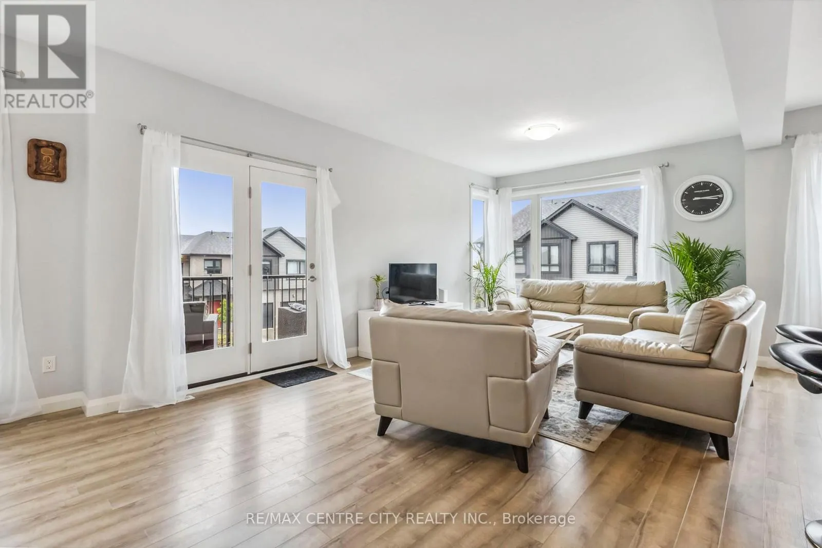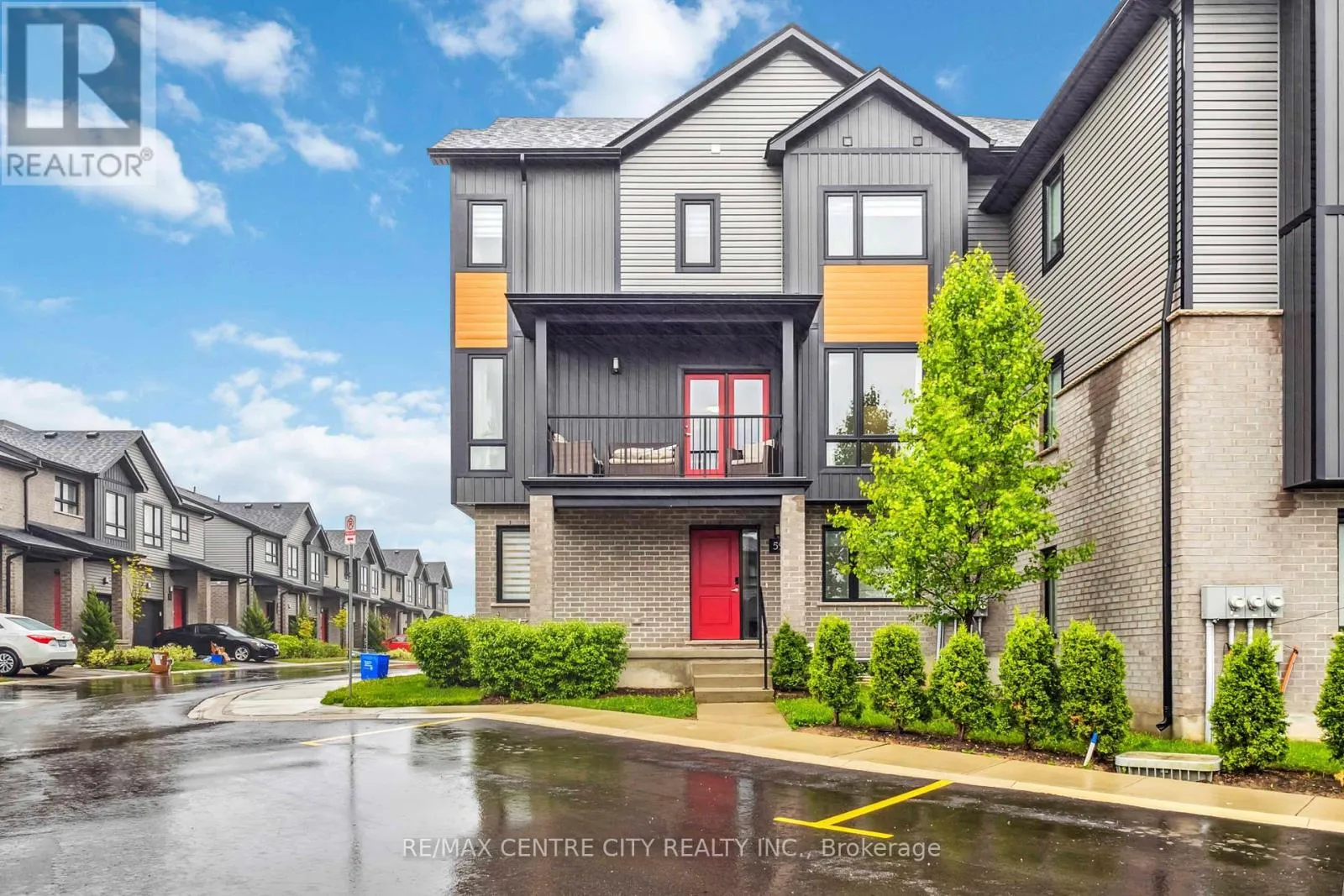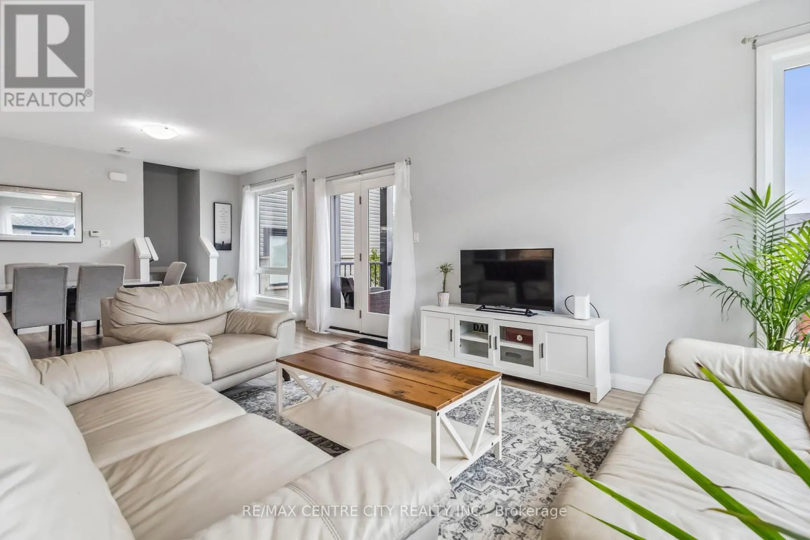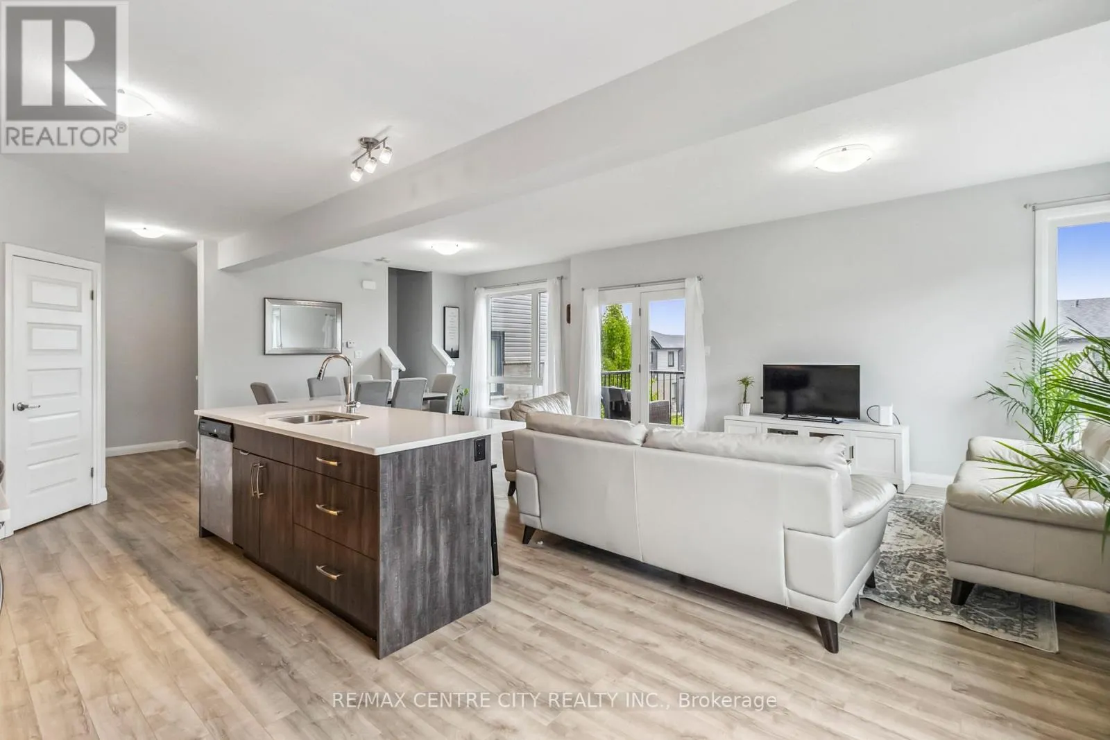 Cross Streets: Kleinburg and Canvas Way. ** Directions: From Sunningdale and Adelaide, go west on Sunningdale, north on Canvas Way, and east on Kleinburg. The property is on the South side of Kleinburg. OPENHOUSE SATURDAY FEB 21 2-4 PM. Bright Corner Executive Townhome in Prime North London. Opportunities like this do not come around often. This is one of only four true corner executive units in the entire complex, offering more space, more windows, and noticeably more natural light than the standard interior layouts. From the moment you step inside, the difference is obvious. The home feels open, bright, and private. With east and north exposures, the living spaces are filled with beautiful morning sunlight and enjoy consistent natural daylight throughout the day. The additional windows create an airy atmosphere that buyers immediately notice. It simply feels larger and more comfortable. Offering approximately 1,818 square feet above grade plus a full unfinished basement, this three-storey layout provides flexibility that most townhomes cannot match. The ground-level bonus room is ideal for a home office, gym, guest space, or fourth bedroom. In today's market, that extra functional space matters. The main living area is open concept and designed for real life. Whether you are hosting friends or enjoying a quiet evening at home, the flow between the living room, dining area, and kitchen makes everyday living easy. The kitchen features modern finishes, ample cabinetry, and generous counter space. Upstairs, you will find three well-sized bedrooms and four bathrooms throughout the home, giving everyone space and privacy. The built-in garage, private terrace, and low monthly maintenance fees add convenience and long-term value. Located in one of North London's most desirable communities, you are minutes from trails, parks, YMCA facilities, shopping, public transit, and Western University. The area is known for its strong schools and quiet residential feel. Corner units of this size, with this exposure and layout, are rarely offered. If you have been waiting for a townhome that feels more like a freehold than a typical condo, this is the one worth seeing in person. (id:27476)
