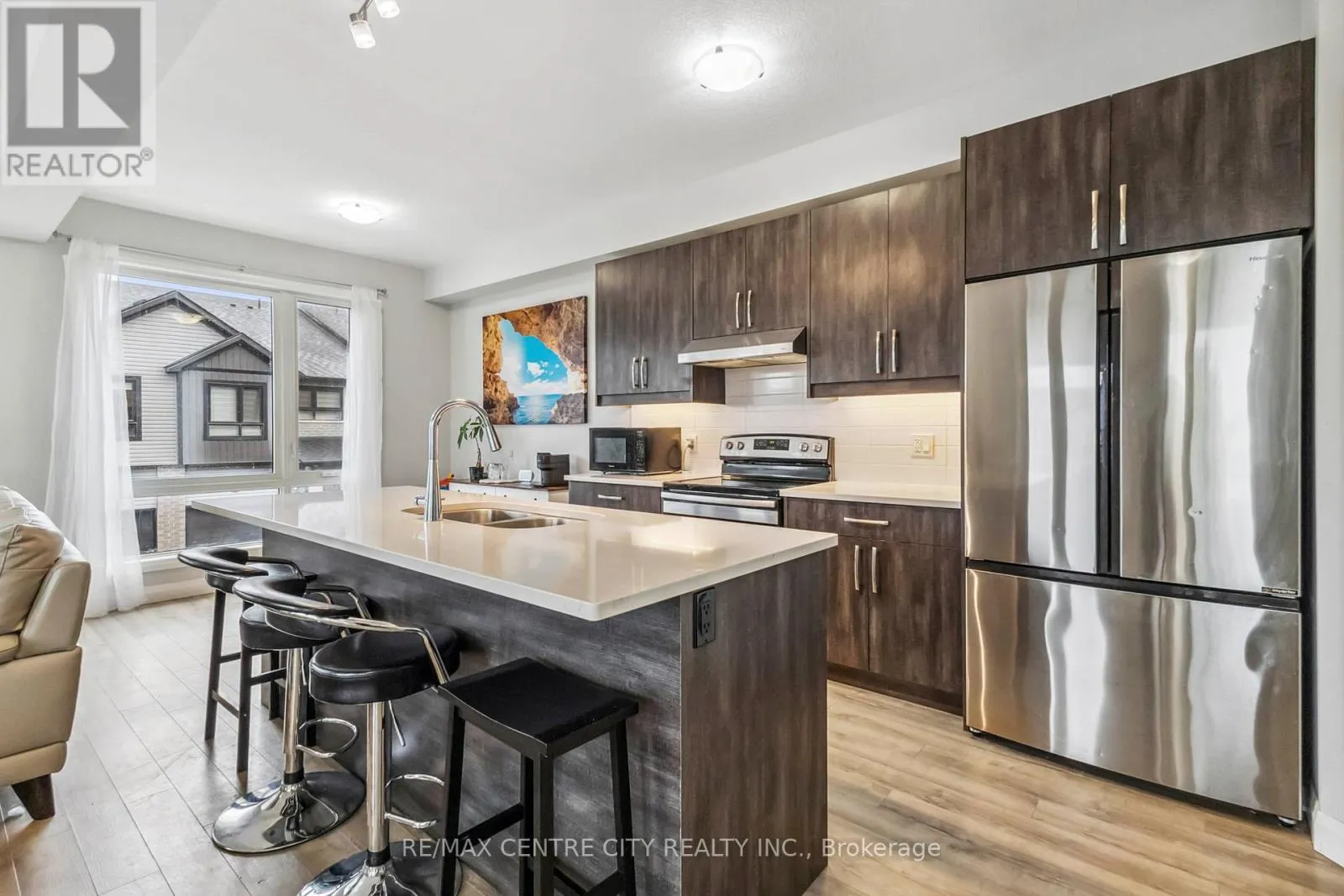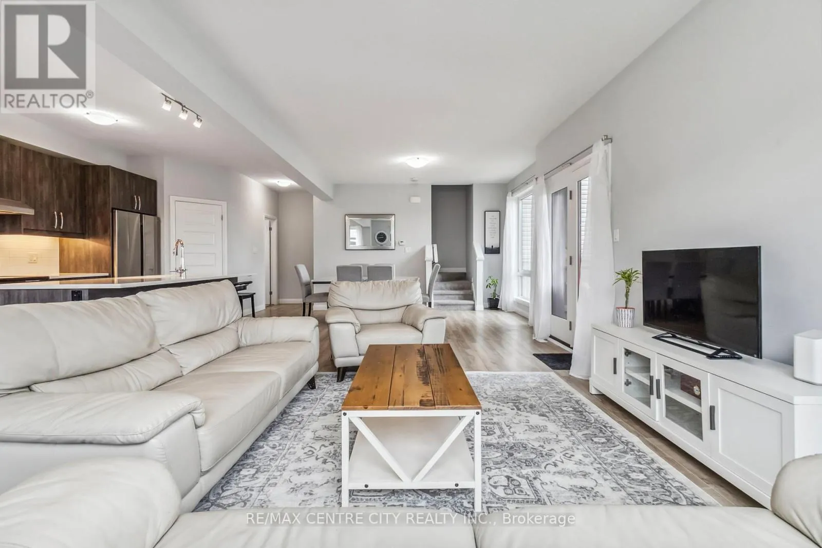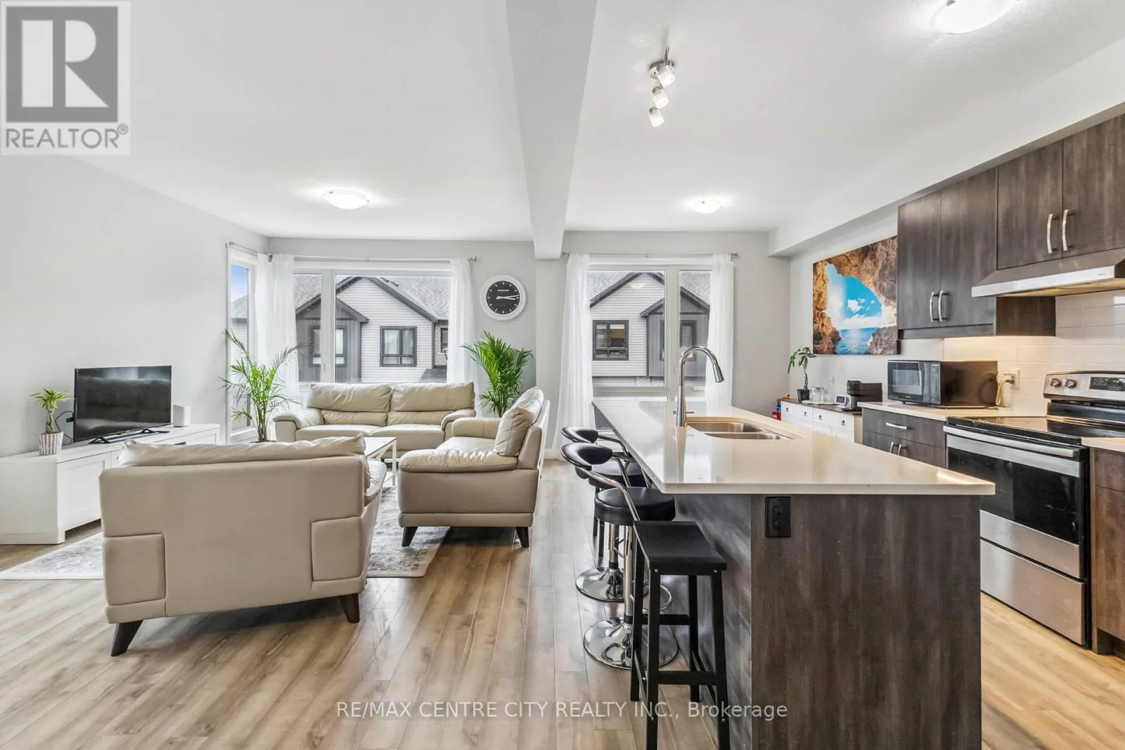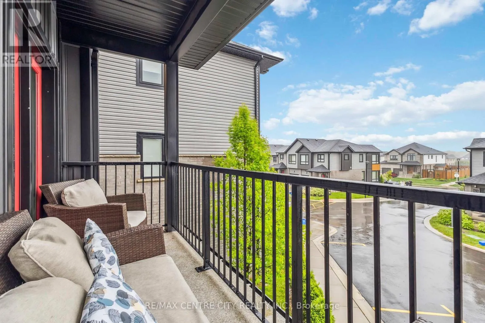 Cross Streets: Kleinburg and Canvas Way. ** Directions: From Sunningdale and Adelaide, go west on Sunningdale, north on Canvas Way, and east on Kleinburg. The property is on the South side of Kleinburg. OPENHOUSE SATURDAY FEB 21 2-4 PM. Bright Corner Executive Townhome in Prime North London. Opportunities like this do not come around often. This is one of only four true corner executive units in the entire complex, offering more space, more windows, and noticeably more natural light than the standard interior layouts. From the moment you step inside, the difference is obvious. The home feels open, bright, and private. With east and north exposures, the living spaces are filled with beautiful morning sunlight and enjoy consistent natural daylight throughout the day. The additional windows create an airy atmosphere that buyers immediately notice. It simply feels larger and more comfortable. Offering approximately 1,818 square feet above grade plus a full unfinished basement, this three-storey layout provides flexibility that most townhomes cannot match. The ground-level bonus room is ideal for a home office, gym, guest space, or fourth bedroom. In today's market, that extra functional space matters. The main living area is open concept and designed for real life. Whether you are hosting friends or enjoying a quiet evening at home, the flow between the living room, dining area, and kitchen makes everyday living easy. The kitchen features modern finishes, ample cabinetry, and generous counter space. Upstairs, you will find three well-sized bedrooms and four bathrooms throughout the home, giving everyone space and privacy. The built-in garage, private terrace, and low monthly maintenance fees add convenience and long-term value. Located in one of North London's most desirable communities, you are minutes from trails, parks, YMCA facilities, shopping, public transit, and Western University. The area is known for its strong schools and quiet residential feel. Corner units of this size, with this exposure and layout, are rarely offered. If you have been waiting for a townhome that feels more like a freehold than a typical condo, this is the one worth seeing in person. (id:27476)