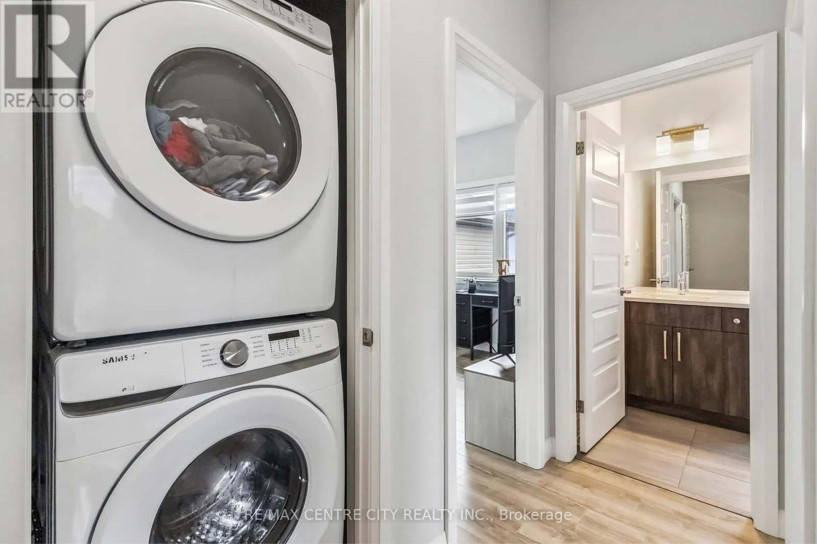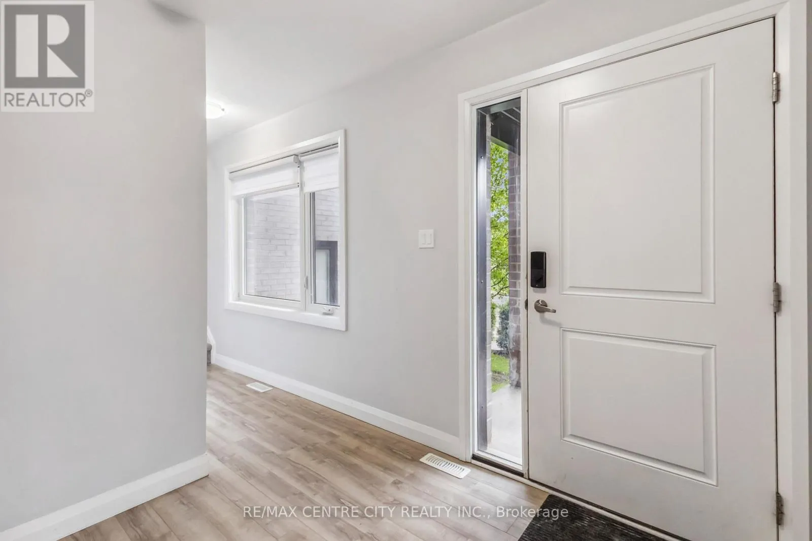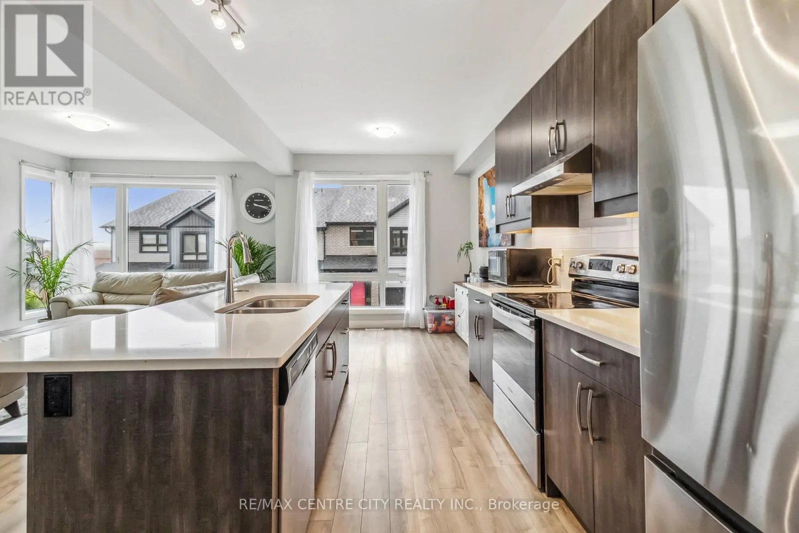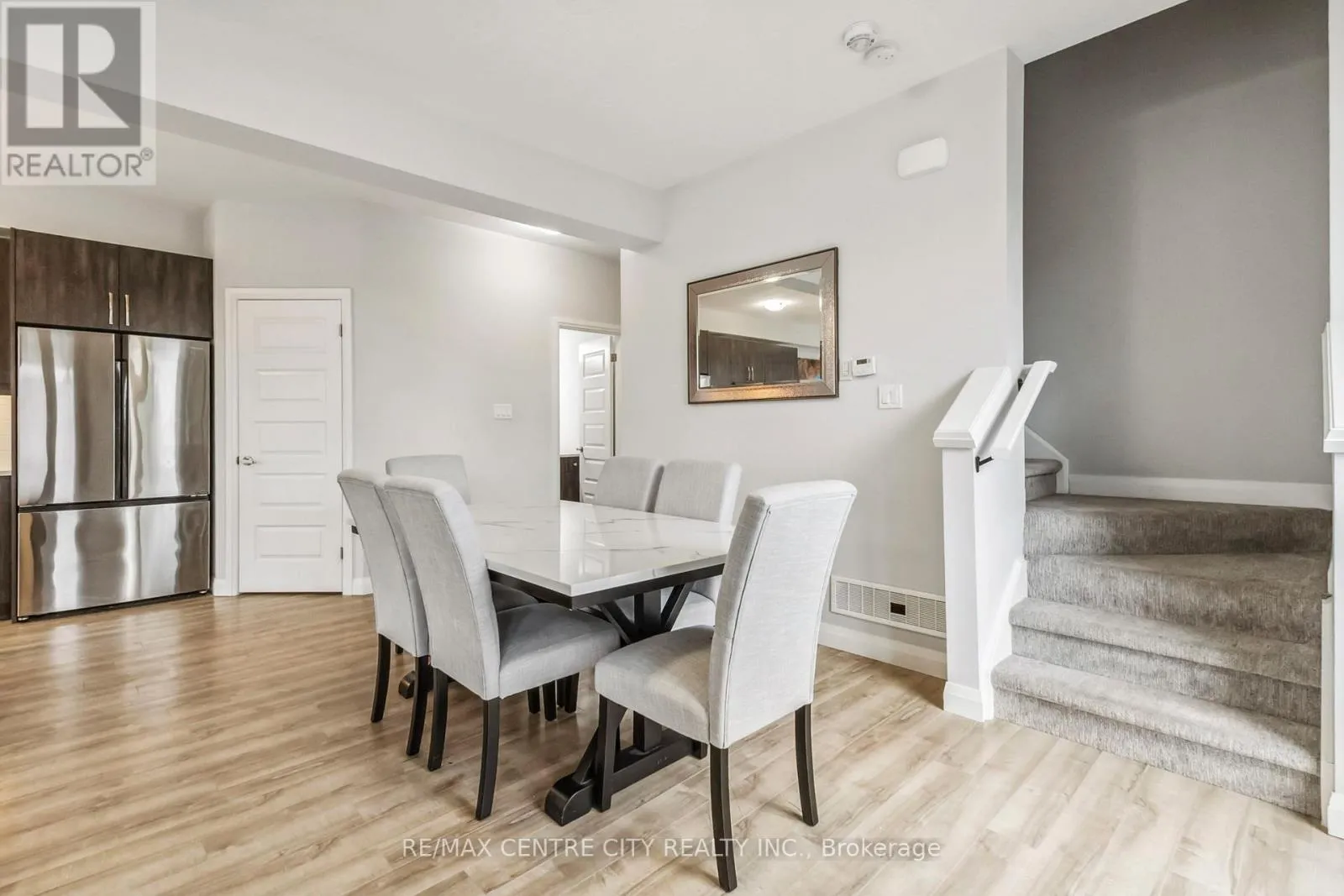 Cross Streets: Kleinburg and Canvas Way. ** Directions: From Sunningdale and Adelaide, go west on Sunningdale, north on Canvas Way, and east on Kleinburg. The property is on the South side of Kleinburg. OPENHOUSE SATURDAY FEB 21 2-4 PM. Bright Corner Executive Townhome in Prime North London. Opportunities like this do not come around often. This is one of only four true corner executive units in the entire complex, offering more space, more windows, and noticeably more natural light than the standard interior layouts. From the moment you step inside, the difference is obvious. The home feels open, bright, and private. With east and north exposures, the living spaces are filled with beautiful morning sunlight and enjoy consistent natural daylight throughout the day. The additional windows create an airy atmosphere that buyers immediately notice. It simply feels larger and more comfortable. Offering approximately 1,818 square feet above grade plus a full unfinished basement, this three-storey layout provides flexibility that most townhomes cannot match. The ground-level bonus room is ideal for a home office, gym, guest space, or fourth bedroom. In today's market, that extra functional space matters. The main living area is open concept and designed for real life. Whether you are hosting friends or enjoying a quiet evening at home, the flow between the living room, dining area, and kitchen makes everyday living easy. The kitchen features modern finishes, ample cabinetry, and generous counter space. Upstairs, you will find three well-sized bedrooms and four bathrooms throughout the home, giving everyone space and privacy. The built-in garage, private terrace, and low monthly maintenance fees add convenience and long-term value. Located in one of North London's most desirable communities, you are minutes from trails, parks, YMCA facilities, shopping, public transit, and Western University. The area is known for its strong schools and quiet residential feel. Corner units of this size, with this exposure and layout, are rarely offered. If you have been waiting for a townhome that feels more like a freehold than a typical condo, this is the one worth seeing in person. (id:27476)