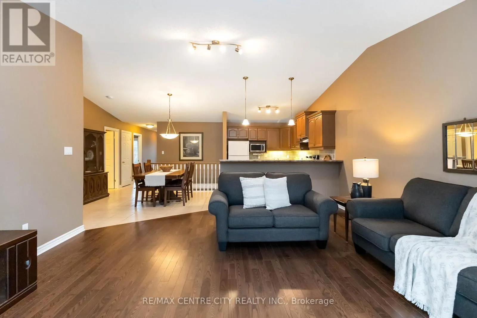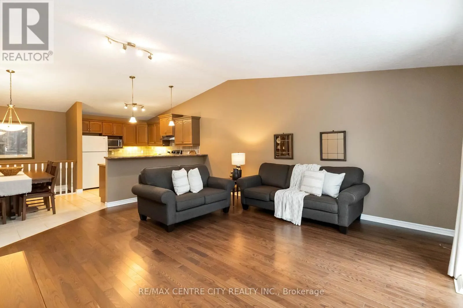 Cross Streets: Blackwater Rd. ** Directions: Adelaide St., to Blackwater Rd. Left on Thistlewood. Second Driveway on left is 620 - Stoney Creek Grove. This impeccably maintained townhouse offers a wonderful option for a first time buyer, small family or downsizer. Nestled in the popular community of Stoney Creek, this location showcases convenient access to many popular amenities including the YMCA, Sunripe Market, Masonville shopping district, and many other well-loved businesses. A sunny courtyard offers an inviting place to enjoy a cup of coffee or some neighbourly conversation. The comfortable foyer allows guests to be welcomed with ease, alongside inside entry from the double car garage. A front bedroom overlooks the well maintained condo grounds, with plenty of natural light pouring in from the large window. Discover a full bathroom and connected main floor laundry room just steps away. An open concept floorplan allows ease of access without compromising on space to host loved ones for Sunday dinners and holiday gatherings. Appreciate a spacious dining area with room to seat a crowd, adjacent to a functional kitchen that includes plenty of warm cabinetry, ample counter space, and raised breakfast bar overlooking the great room. The living space features vaulted ceilings, newer hardwood flooring, and an oversized patio slider providing access to the deck with natural gas BBQ line and retractable awning, overlooking mature trees. A generous primary bedroom includes serene views of the grounds, double closets, and a tasteful 3PC ensuite with shower. The finished lower level sprawls with plenty of additional living space. A third full bathroom, spacious family room with gas fireplace, and third bedroom ensures there is plenty of room for everyone to remain comfortable. Plenty of space for tinkering, hobbies, or simply storage exists in the partially finished utility room. All this in a well run condo corporation, with nothing to do but unpack your boxes and enjoy the convenient living that Stoney Creek Grove offers. (id:27476)